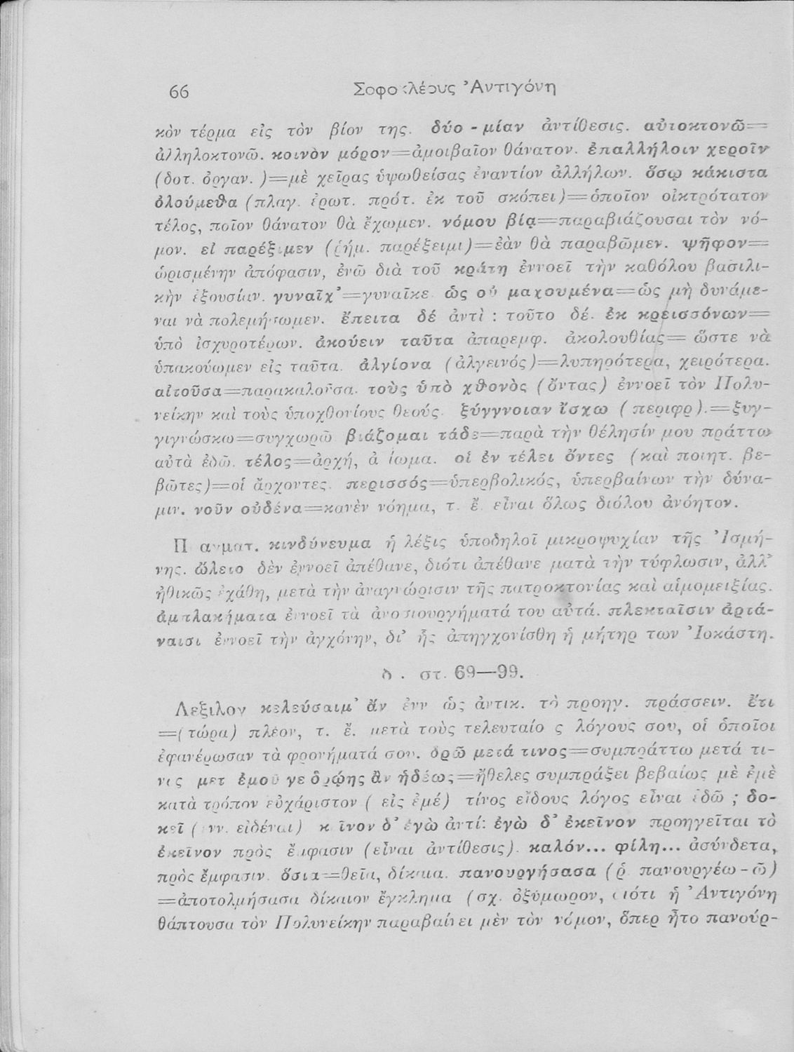 Σοφοκλέους Αντιγόνη προς χρήσιν των μαθητών της ΣΤ΄ τάξεως των Εξαταξίων Γυμνασίων (παλαιού τύπου)