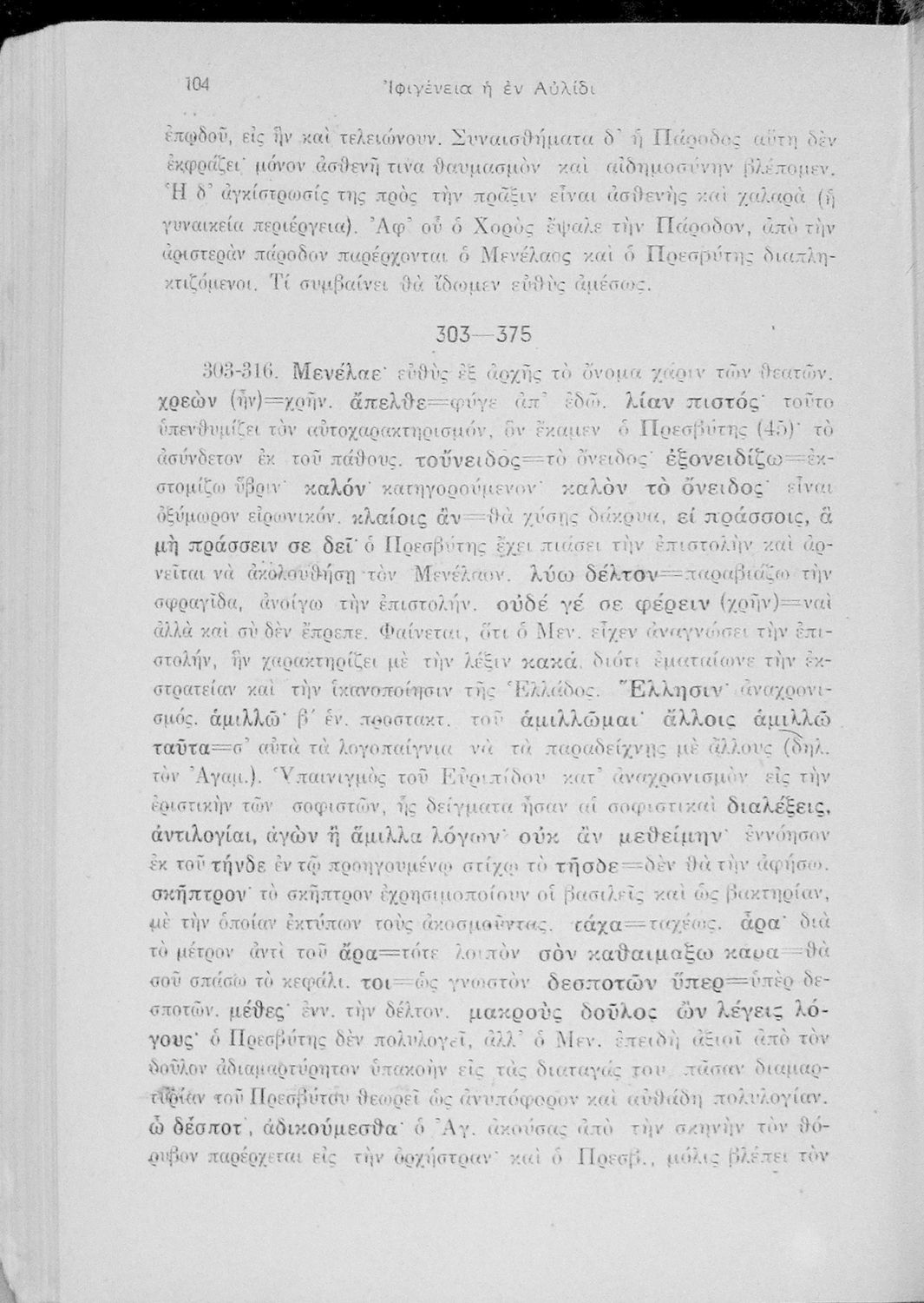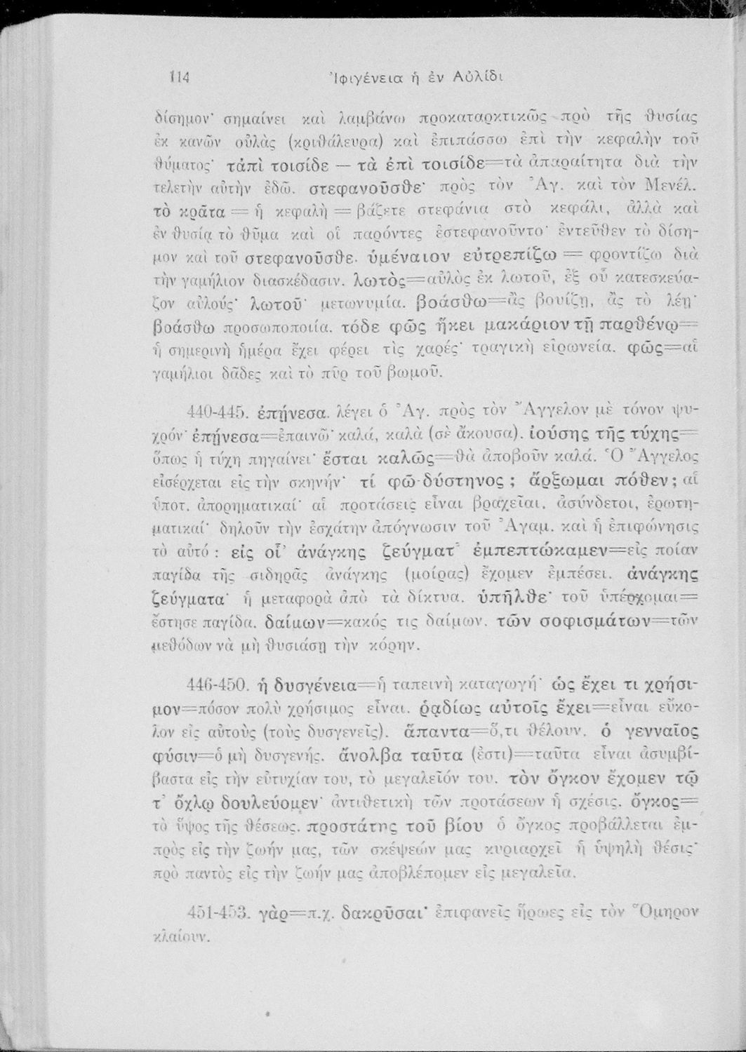 Μαθητικό βοήθημα Αρχαίων Ελληνικών για την Ε' Γυμνασίου που περιλαμβάνει μετάφραση, ερμηνευτικά, γραμματικά και συντακτικά σχόλια στην Ιφιγένεια η εν Αυλίδι.