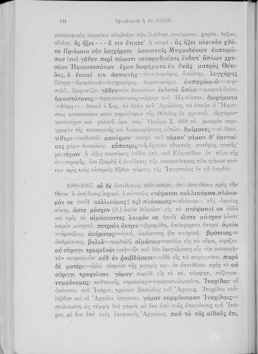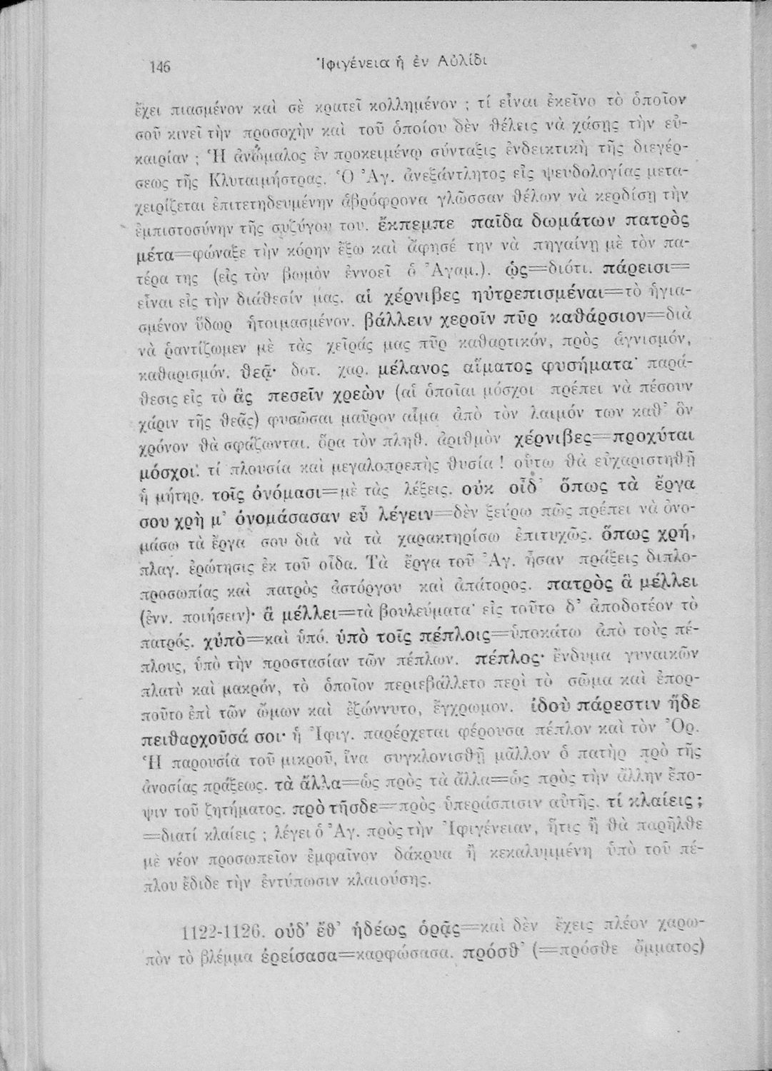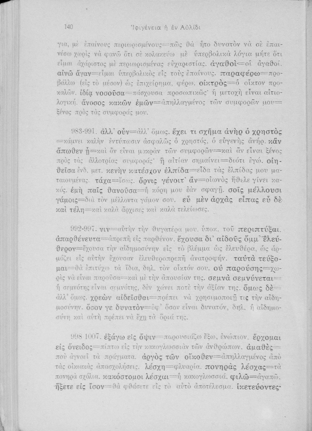 Μαθητικό βοήθημα Αρχαίων Ελληνικών για την Ε' Γυμνασίου που περιλαμβάνει μετάφραση, ερμηνευτικά, γραμματικά και συντακτικά σχόλια στην Ιφιγένεια η εν Αυλίδι.