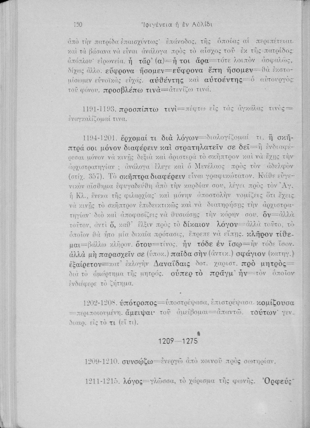 Σχολικό εγχειρίδιο Αρχαίων Ελληνικών Ε΄ Γυμνασίου που περιέχει αποσπάσματα από την τραγωδία του Ευριπίδη Ιφιγένεια η εν Ταύροις, ερμηνευτικά και πραγματολογικά σχόλια και λεξιλογικές παρατηρήσεις.