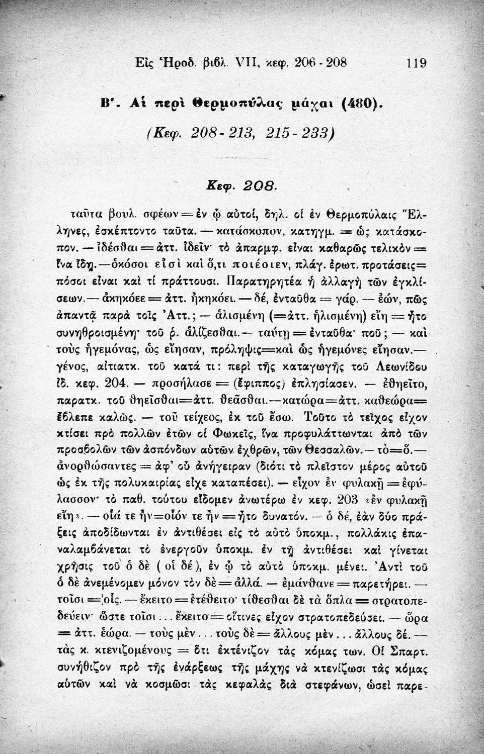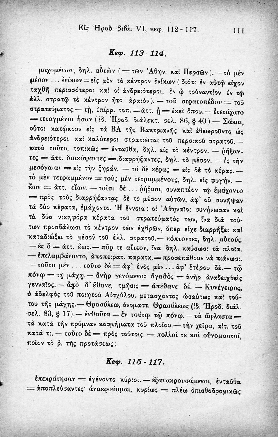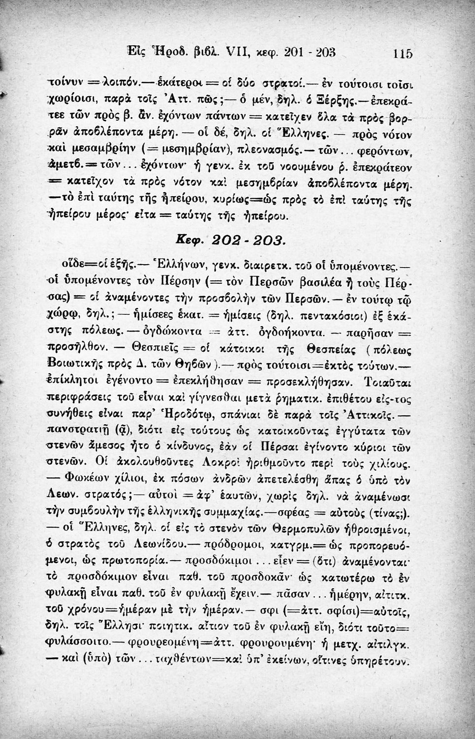Σχολικό εγχειρίδιο Αρχαίων Ελληνικών Α΄ Γυμνασίου και Α' Διδασκαλείου που περιλαμβάνει αποσπάσματα από το έργο του Ηρόδοτου, ερμηνευτικές σημειώσεις, πραγματολογικά, λεξικολογικά και γραμματικά σχόλια.