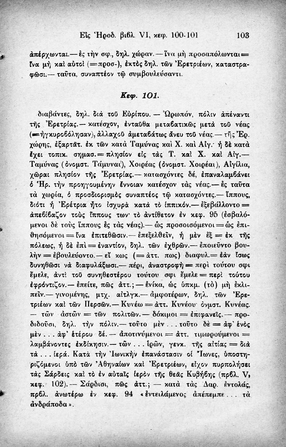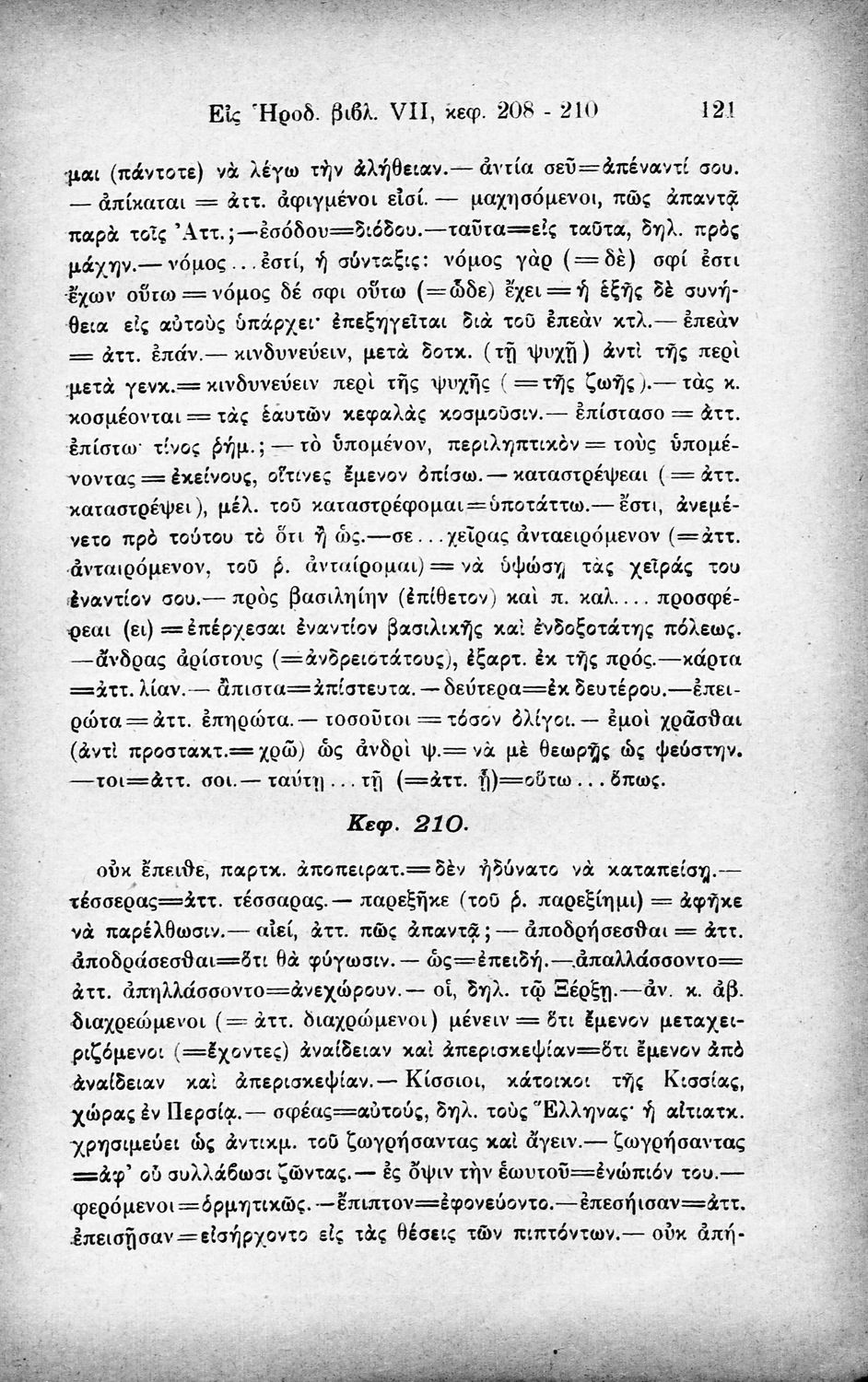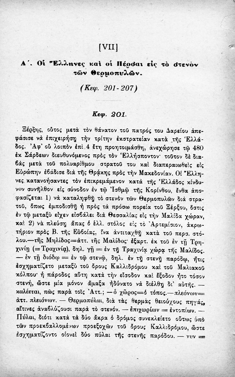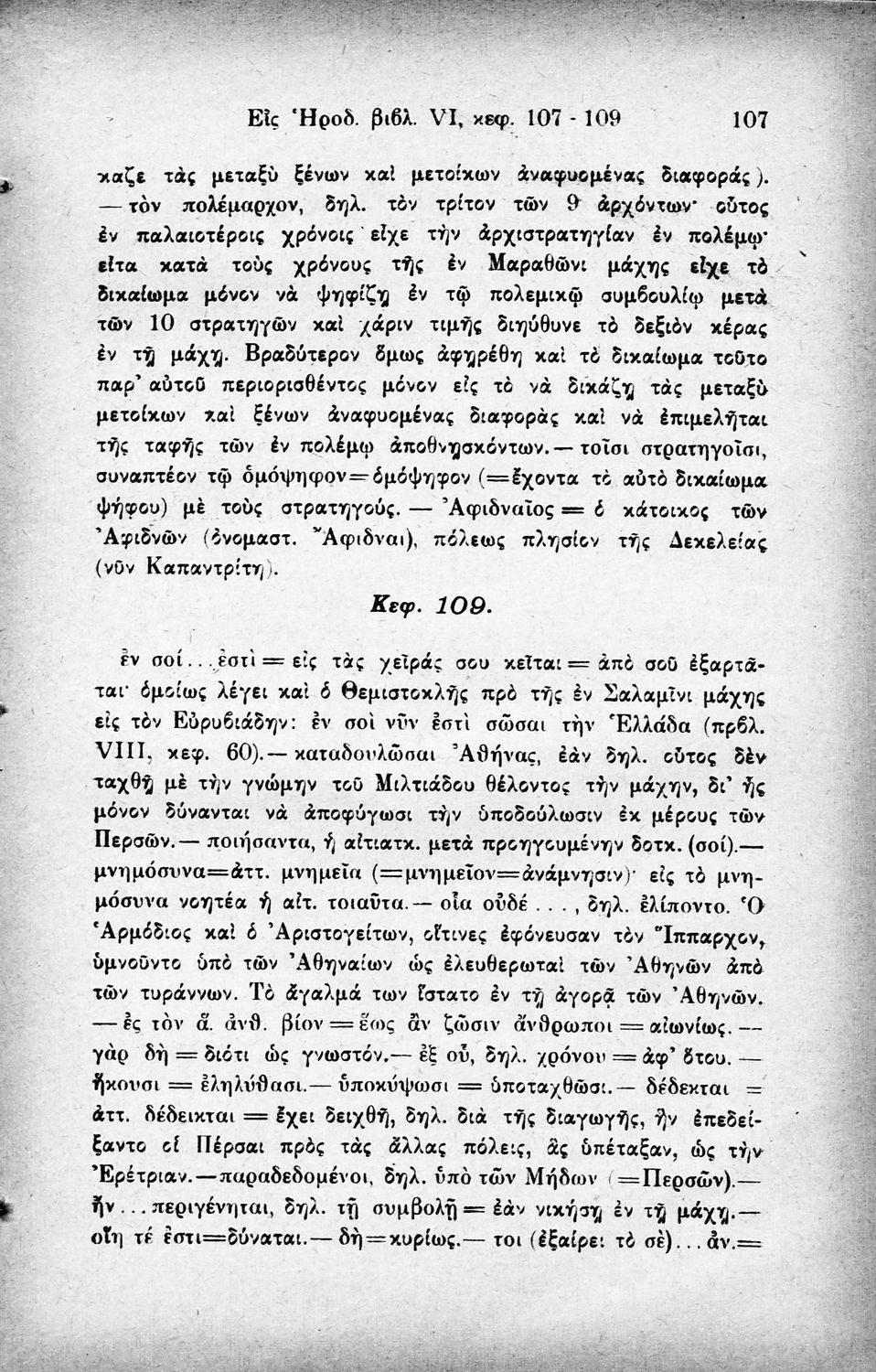 Σχολικό εγχειρίδιο Αρχαίων Ελληνικών Α΄ Γυμνασίου και Α' Διδασκαλείου που περιλαμβάνει αποσπάσματα από το έργο του Ηρόδοτου, ερμηνευτικές σημειώσεις, πραγματολογικά, λεξικολογικά και γραμματικά σχόλια.