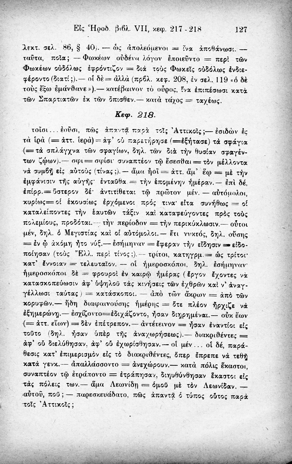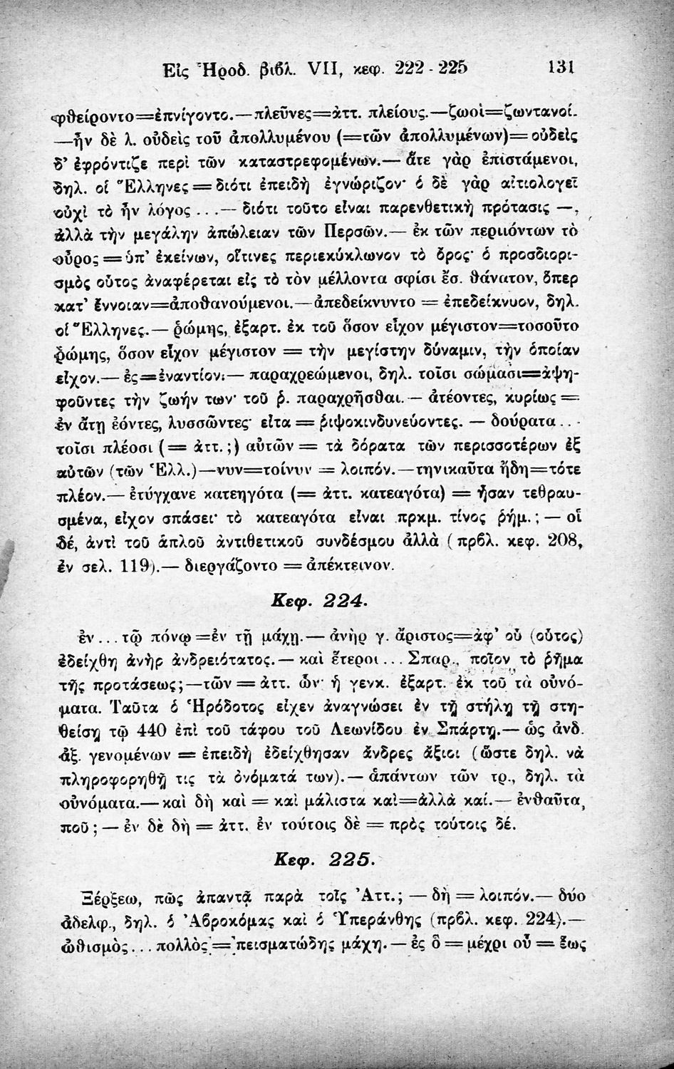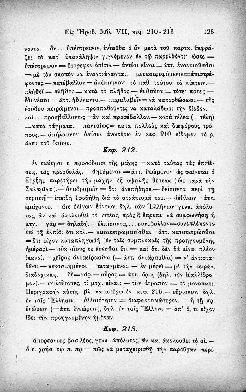 Σχολικό εγχειρίδιο Αρχαίων Ελληνικών Α΄ Γυμνασίου και Α' Διδασκαλείου που περιλαμβάνει αποσπάσματα από το έργο του Ηρόδοτου, ερμηνευτικές σημειώσεις, πραγματολογικά, λεξικολογικά και γραμματικά σχόλια.