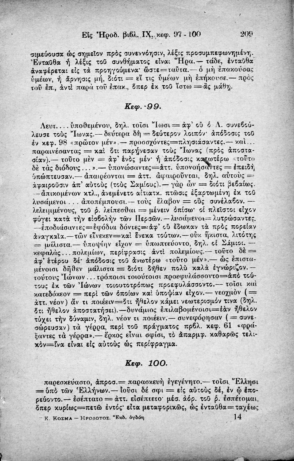 Σχολικό εγχειρίδιο Αρχαίων Ελληνικών Α΄ Γυμνασίου που περιλαμβάνει αποσπάσματα από την Ιστορία του Ηροδότου, βιογραφικά στοιχεία, εισαγωγή στο έργο και τη διάλεκτο του καθώς και ερμηνευτικά και πραγματολογικά σχόλια.
