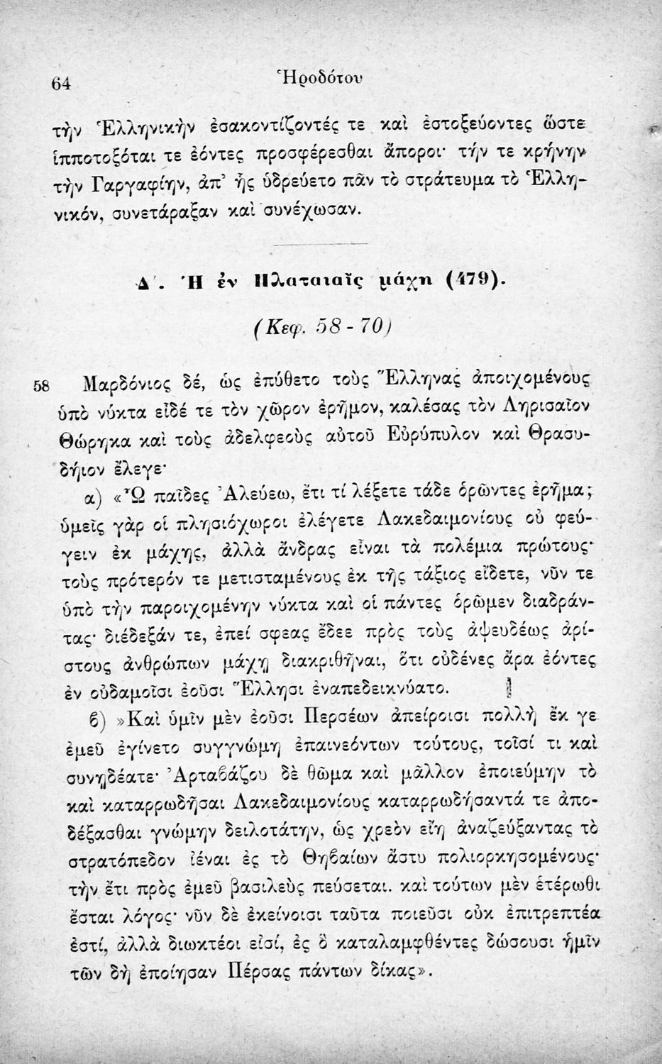 Σχολικό εγχειρίδιο Αρχαίων Ελληνικών Α΄ Γυμνασίου και Α' Διδασκαλείου που περιλαμβάνει αποσπάσματα από το έργο του Ηρόδοτου, ερμηνευτικές σημειώσεις, πραγματολογικά, λεξικολογικά και γραμματικά σχόλια.
