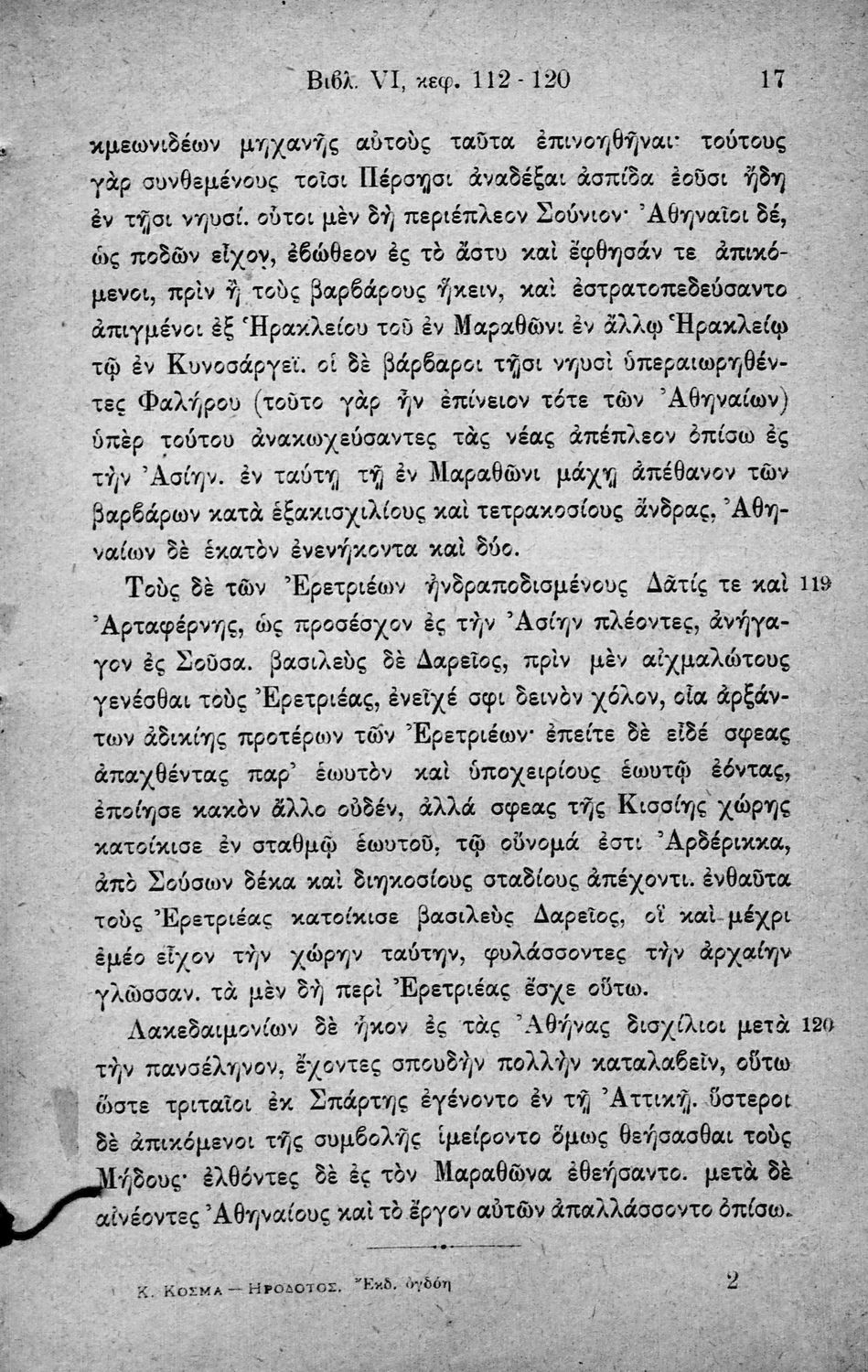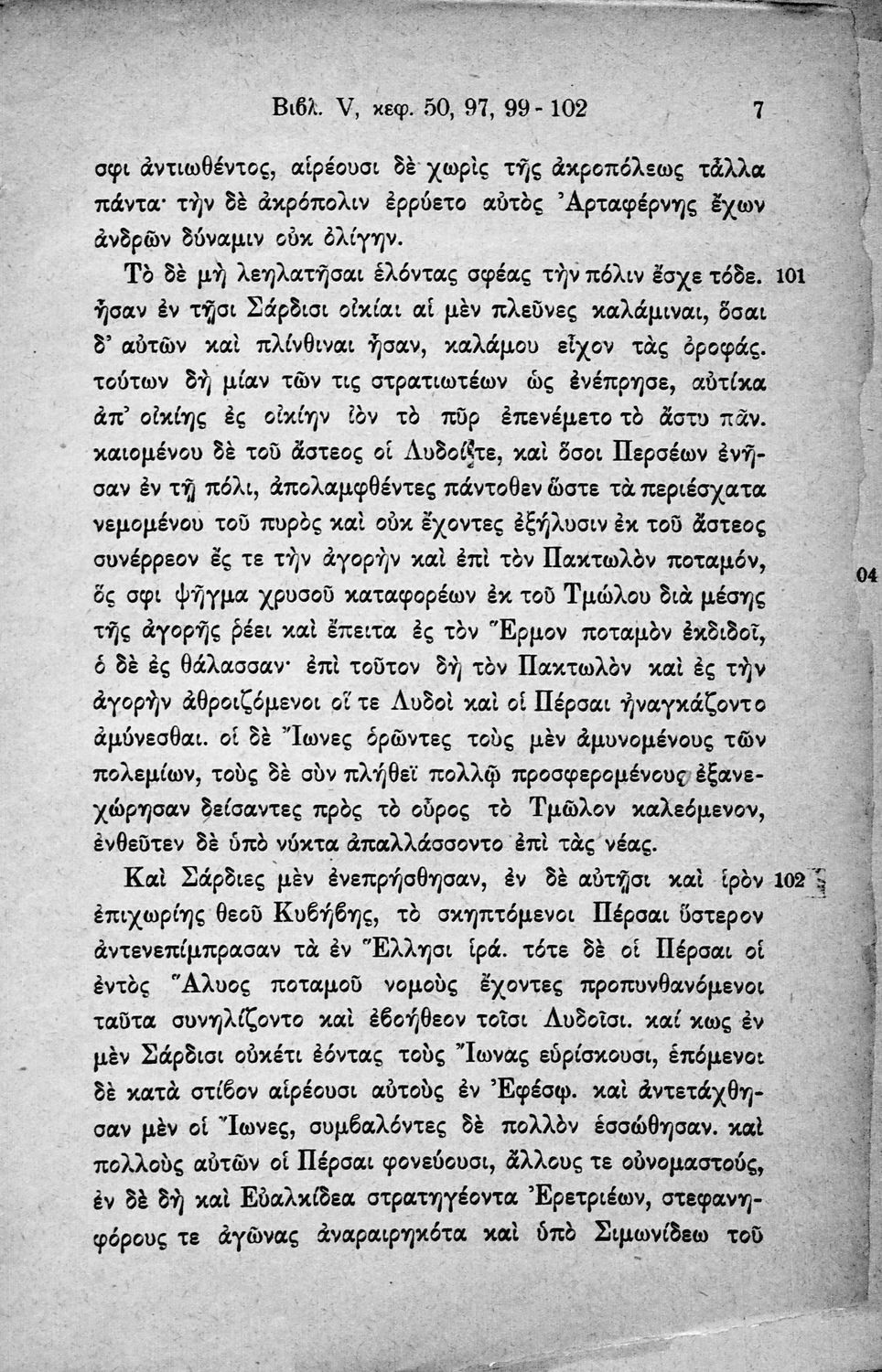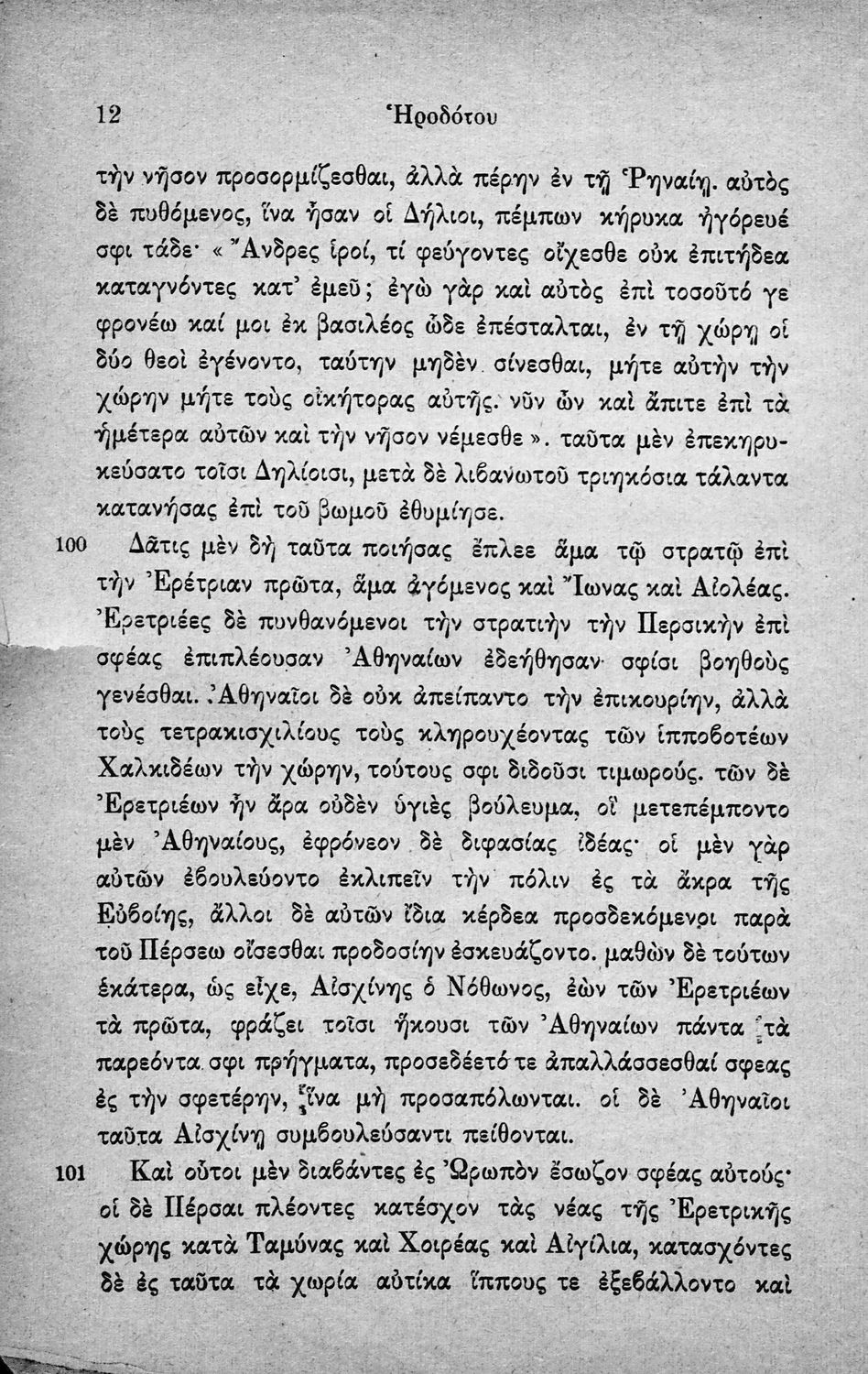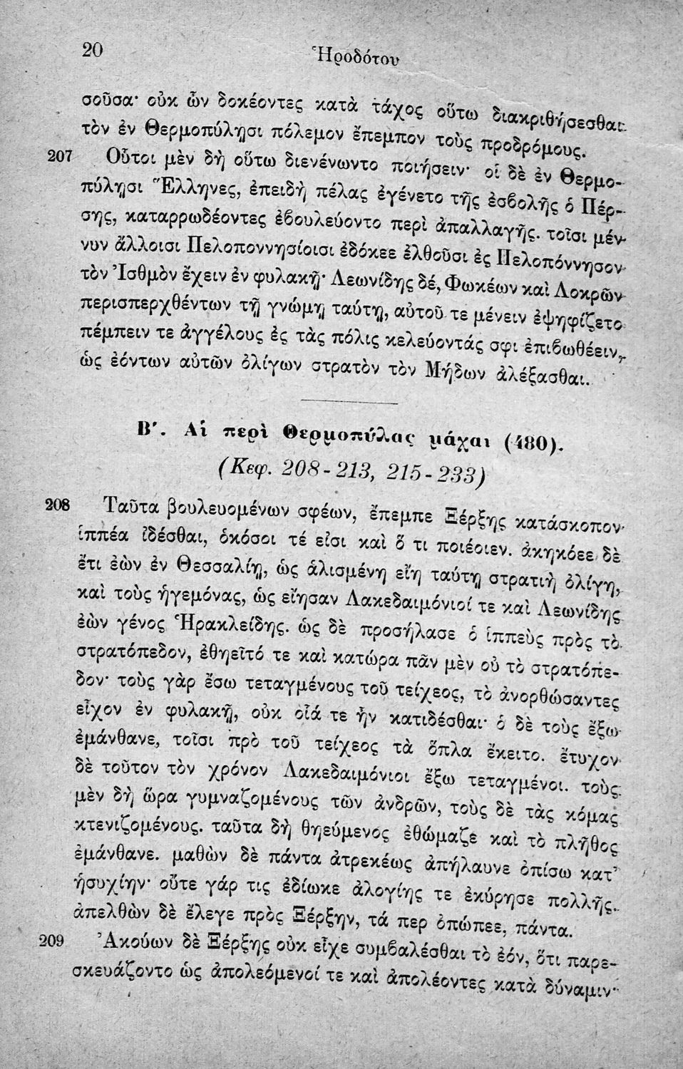 Σχολικό εγχειρίδιο Αρχαίων Ελληνικών Α΄ Γυμνασίου που περιλαμβάνει αποσπάσματα από την Ιστορία του Ηροδότου, βιογραφικά στοιχεία, εισαγωγή στο έργο και τη διάλεκτο του καθώς και ερμηνευτικά και πραγματολογικά σχόλια.