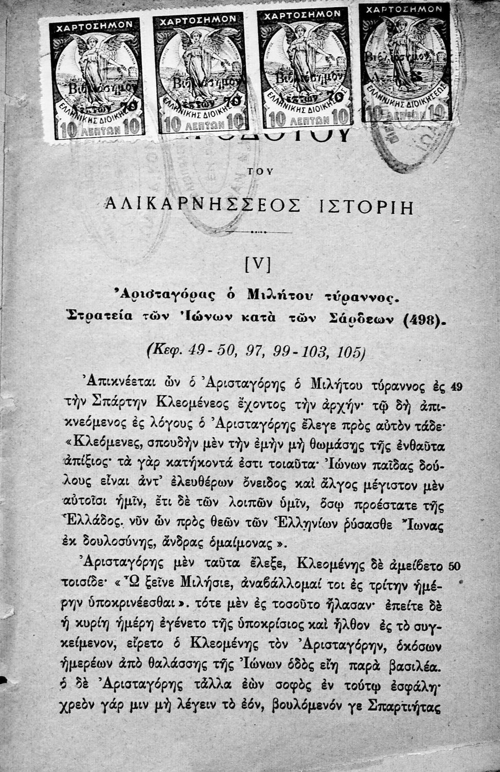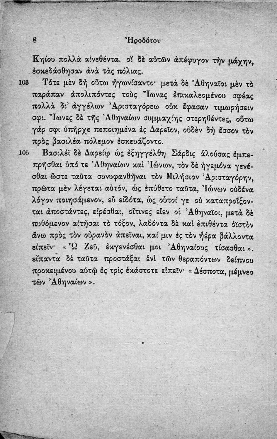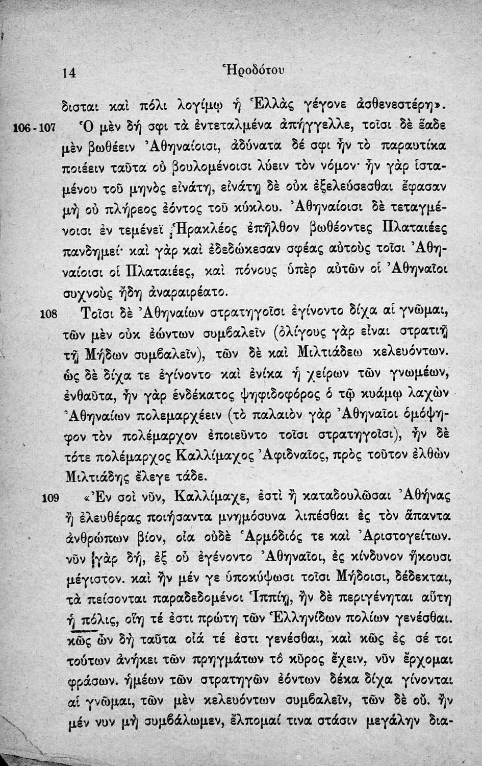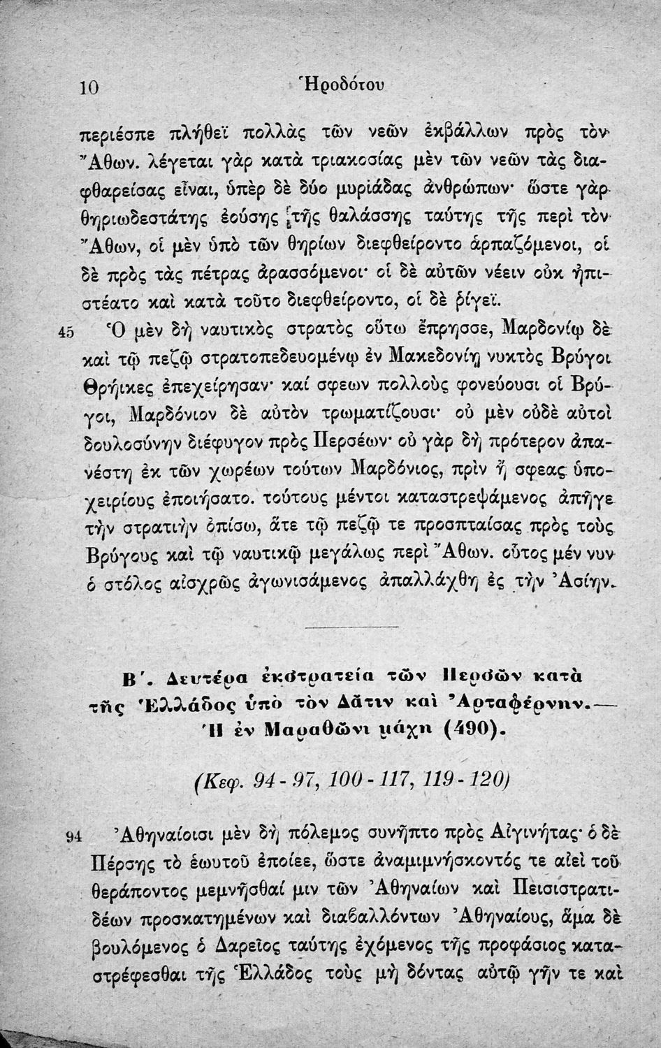 Σχολικό εγχειρίδιο Αρχαίων Ελληνικών Α΄ Γυμνασίου που περιλαμβάνει αποσπάσματα από την Ιστορία του Ηροδότου, βιογραφικά στοιχεία, εισαγωγή στο έργο και τη διάλεκτο του καθώς και ερμηνευτικά και πραγματολογικά σχόλια.