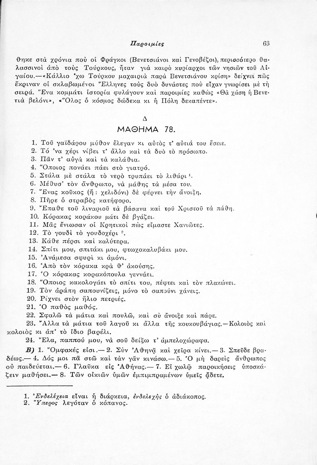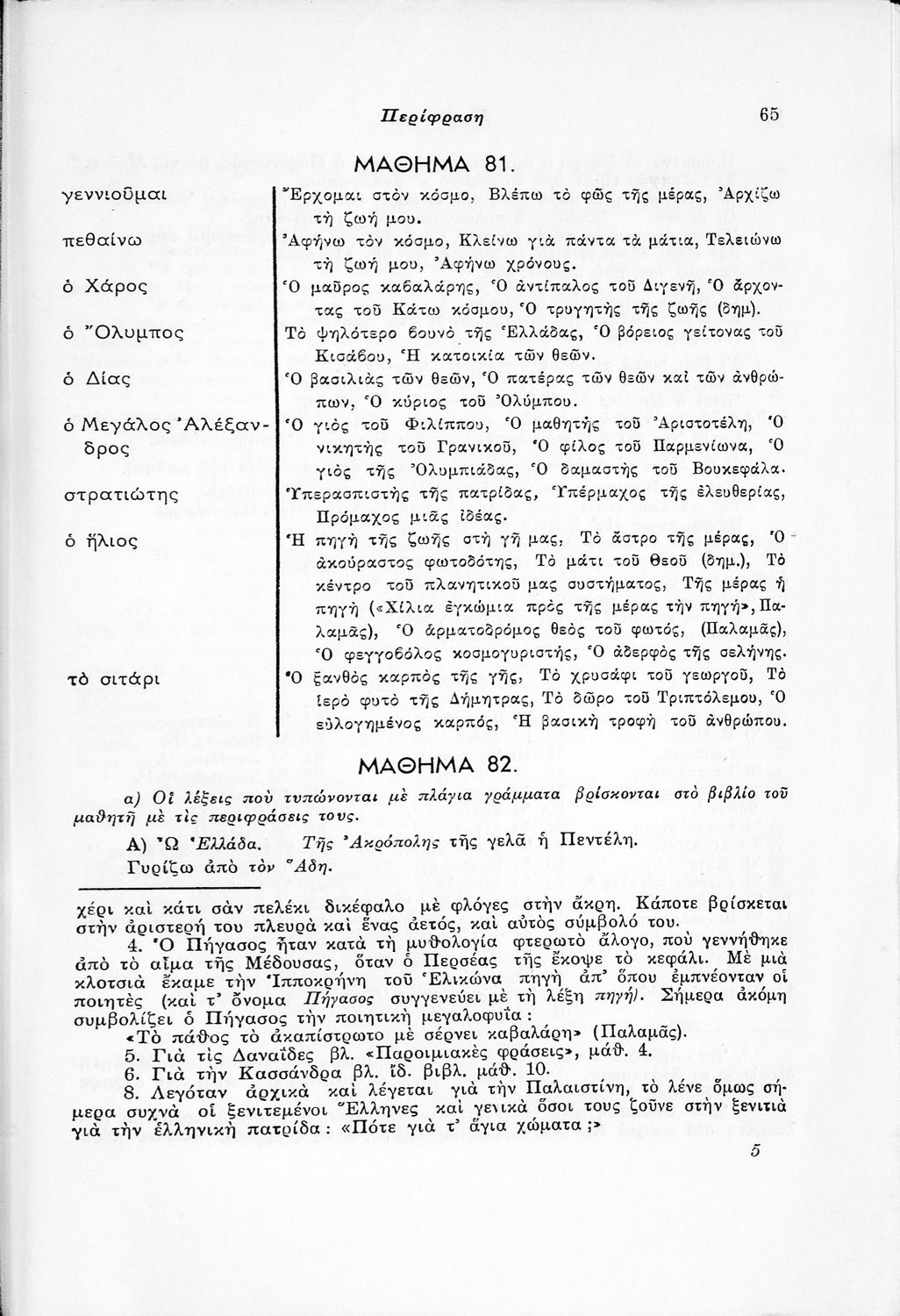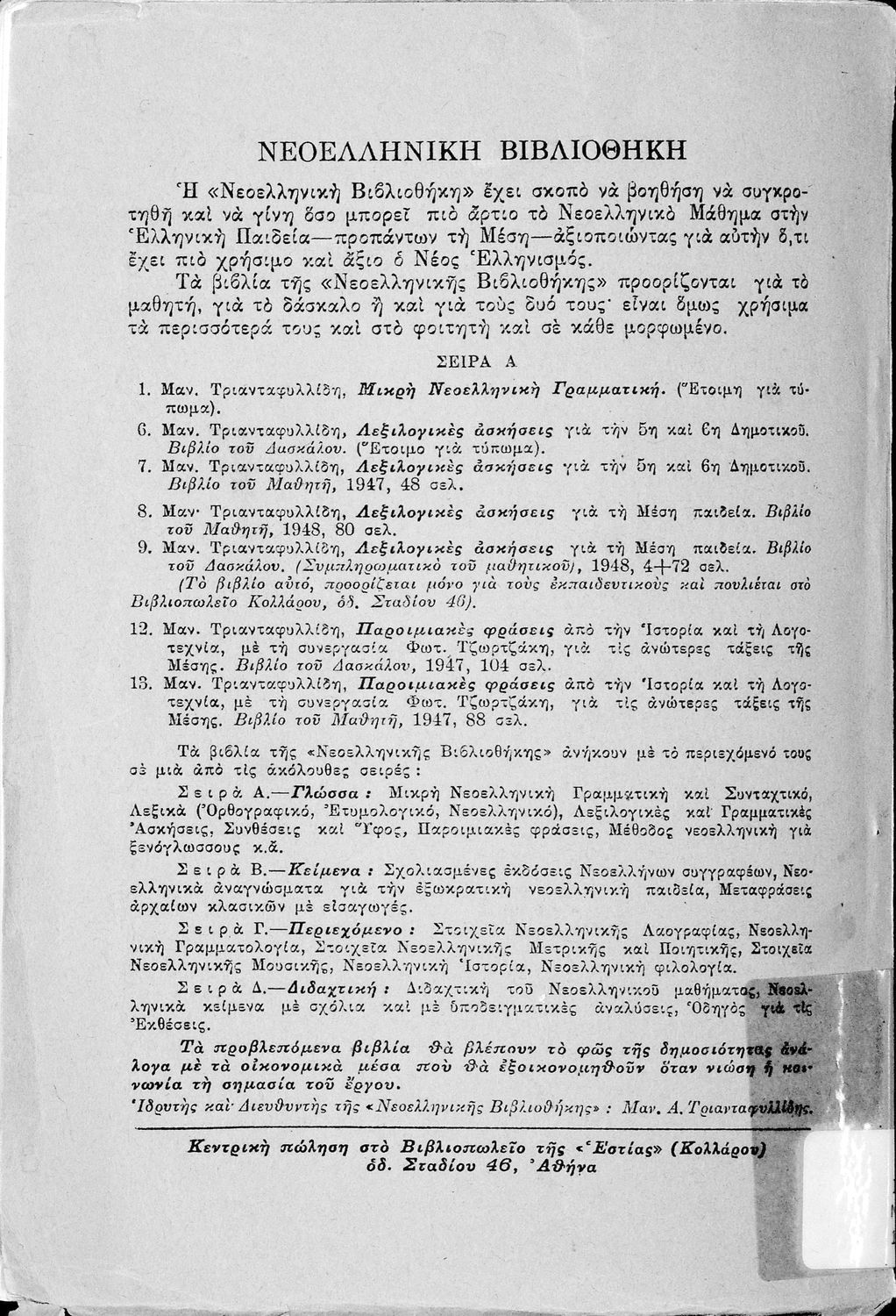 Το σύγγραμμα ήταν εκπαιδευτικό βοήθημα για το μάθημα των νέων ελληνικών. Αρχικά, έχει οδηγίες, οι οποίες απευθύνονται στους δασκάλους και τους μαθητές αντίστοιχα για την εξυπηρέτηση της διδασκαλίας. Στη ...