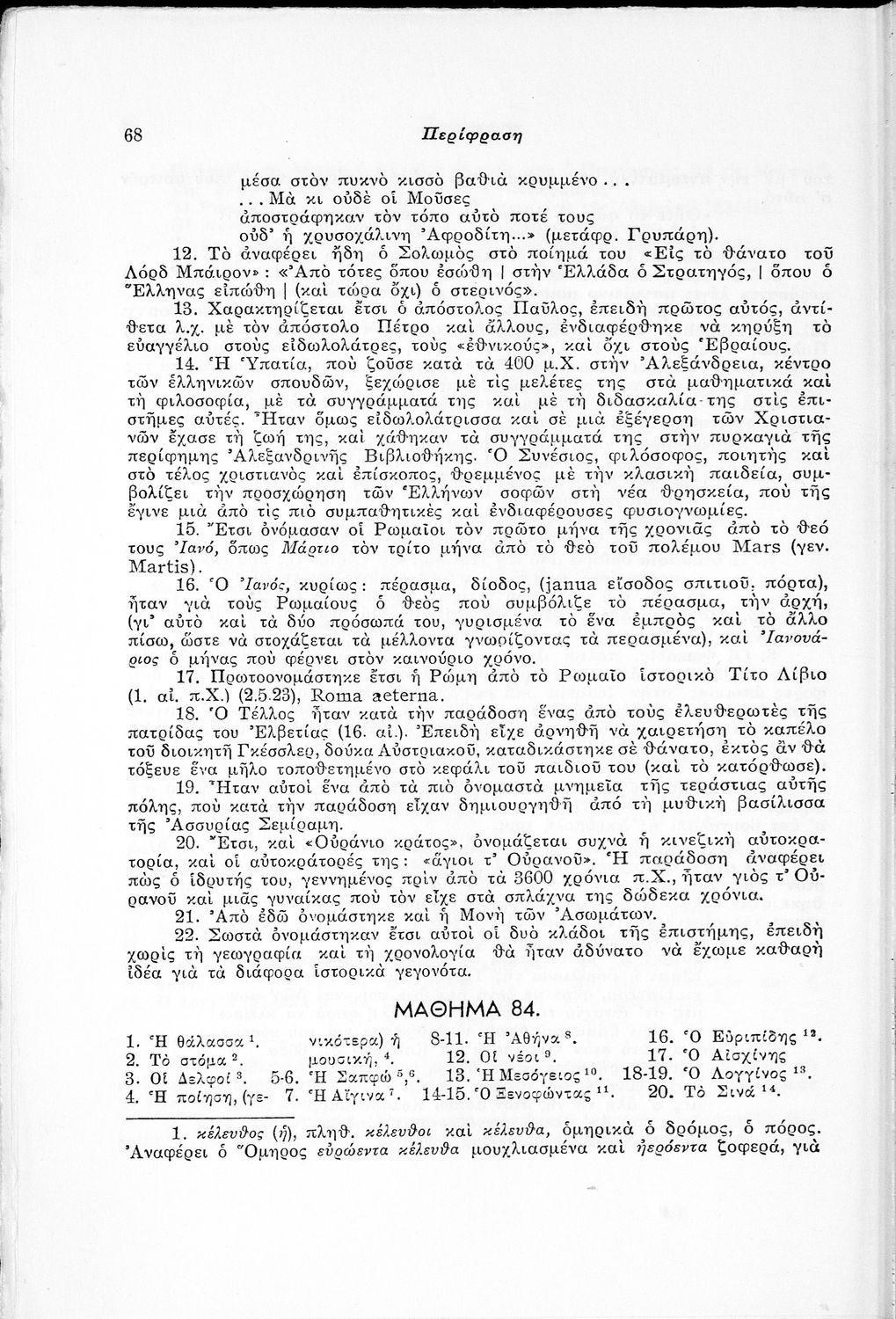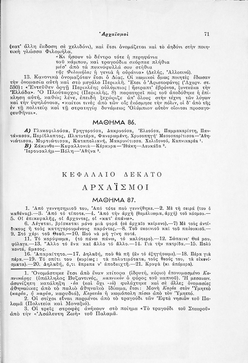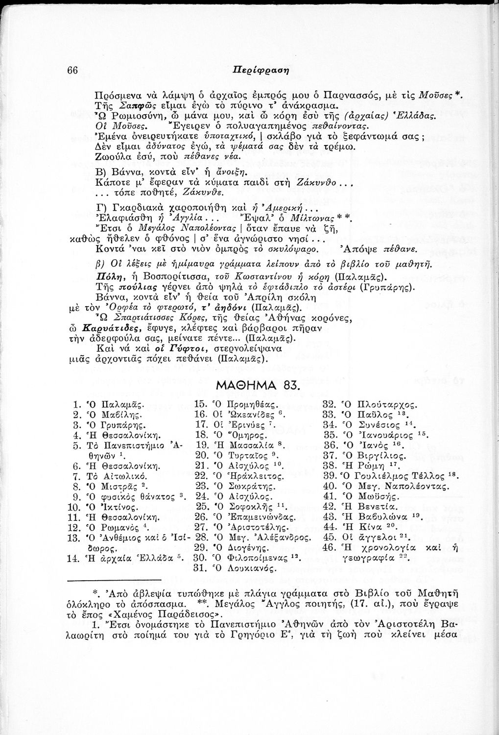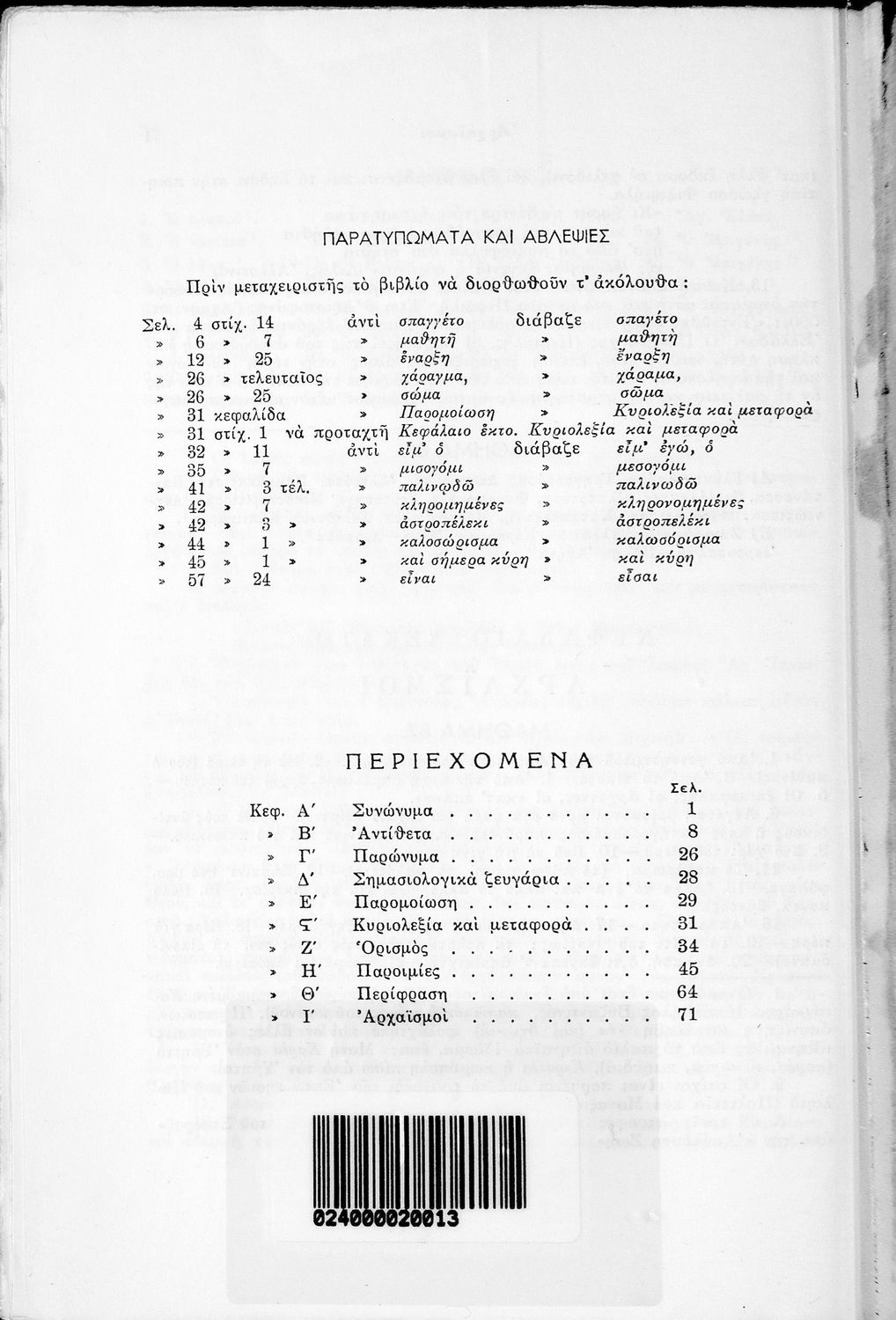 Το σύγγραμμα ήταν εκπαιδευτικό βοήθημα για το μάθημα των νέων ελληνικών. Αρχικά, έχει οδηγίες, οι οποίες απευθύνονται στους δασκάλους και τους μαθητές αντίστοιχα για την εξυπηρέτηση της διδασκαλίας. Στη ...