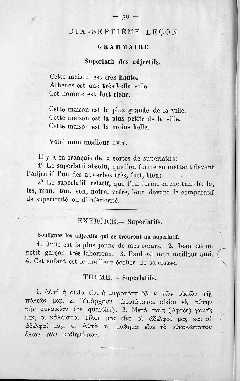 Τίτλος: Γαλλικόν βιβλίον της Β’ τάξεως εγκεκριμένον υπό του Υπουργείου της Παιδείας δια την Β΄ τάξιν των Γυμνασίων και τας αντιστοίχους τάξεις των λοιπών σχολείων της Μέσης Εκπαιδεύσεως