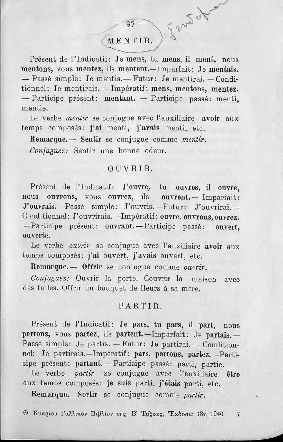 Τίτλος: Γαλλικόν βιβλίον της Β’ τάξεως εγκεκριμένον υπό του Υπουργείου της Παιδείας δια την Β΄ τάξιν των Γυμνασίων και τας αντιστοίχους τάξεις των λοιπών σχολείων της Μέσης Εκπαιδεύσεως