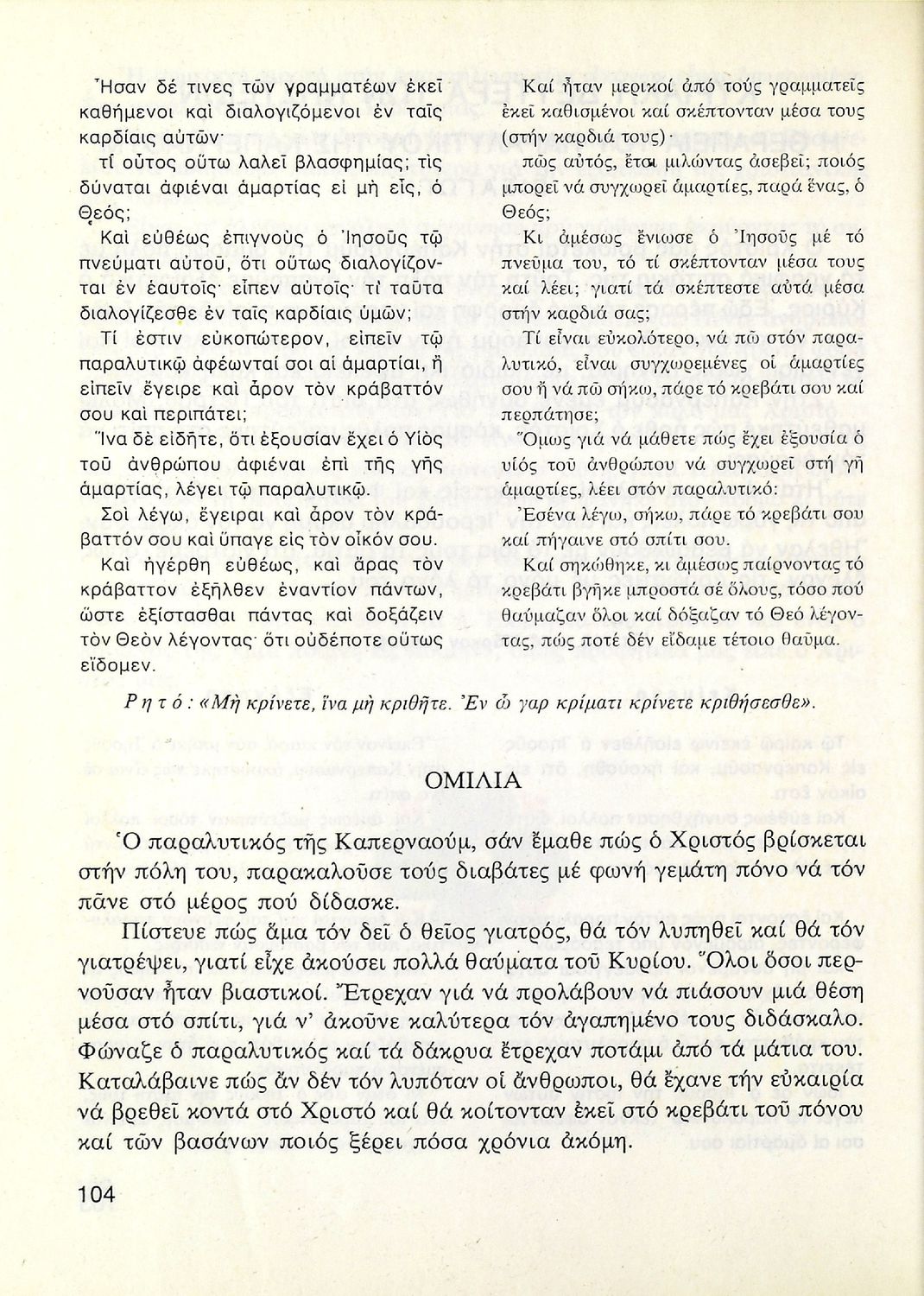 Ευαγγελικές Περικοπές Α΄ Οι περικοπές του σχολικού χρόνου. Β΄ Η επί του Όρους Ομιλία για την Ε΄ και ΣΤ΄ Δημοτικού