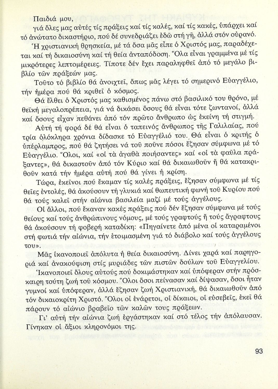 Βαθμίδα εκπαίδευσης: Πρωτοβάθμια Τάξη: Ε' Δημοτικού / ΣΤ' Δημοτικού Μάθημα: Θρησκευτικά Γλώσσα: Δημοτική Παρουσίαση περιεχομένου: Σχολικό εγχειρίδιο Θρησκευτικών για τις Ε΄ και ΣΤ΄ Δημοτικού που περιέχει περικοπές Ευαγγελίων και ερμηνευτικές σημειώσεις. |