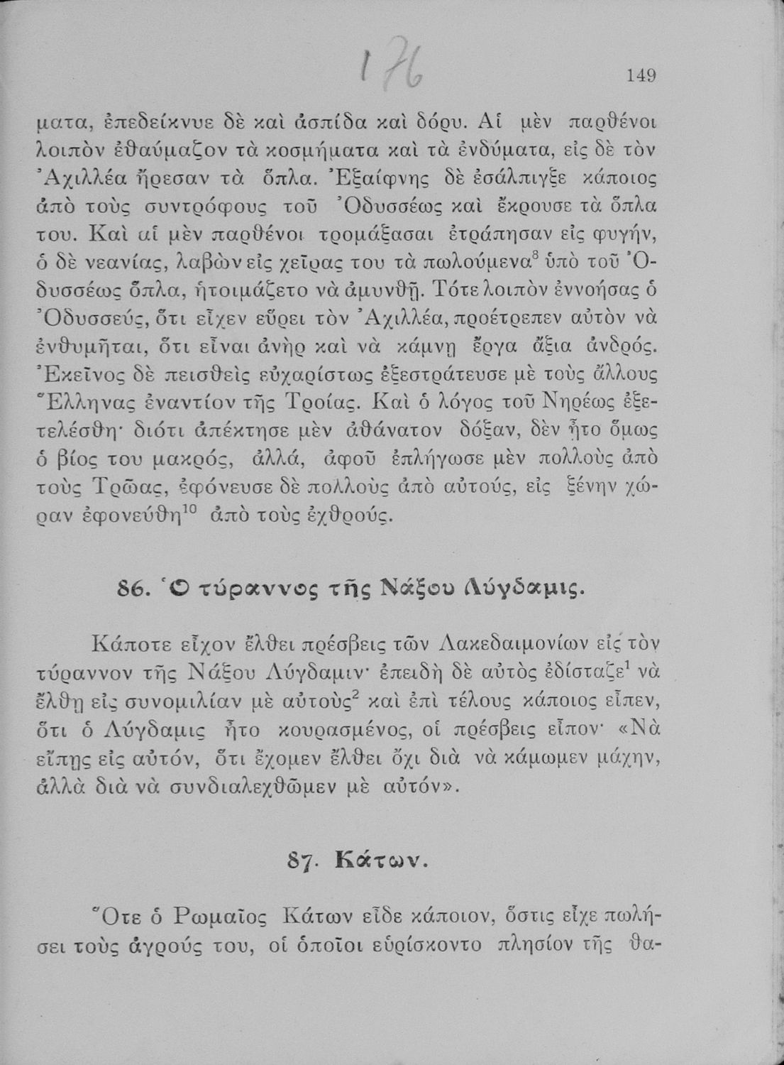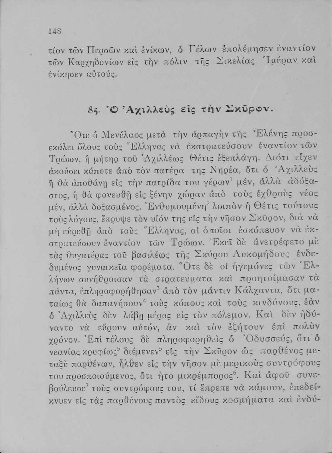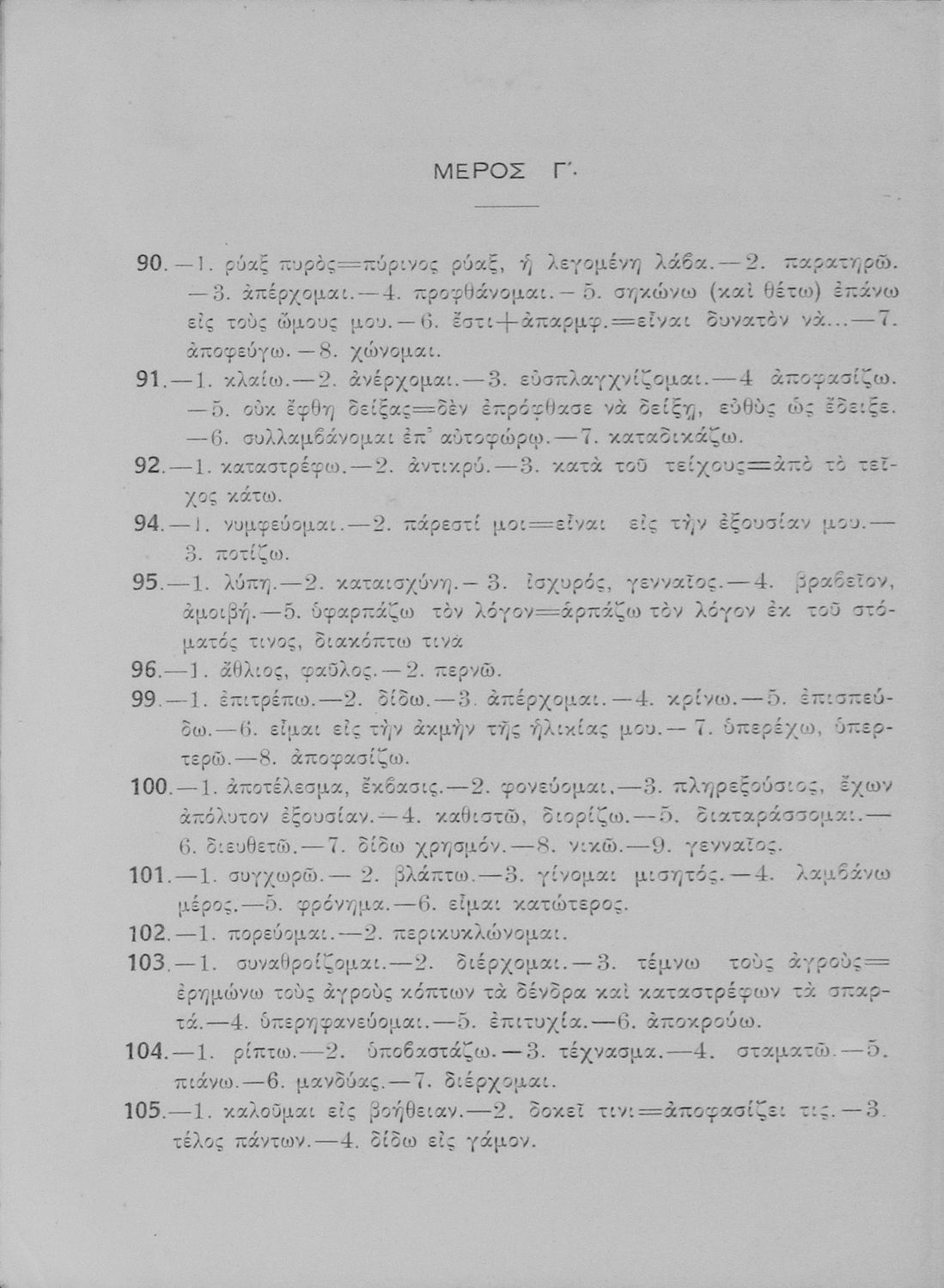 Σχολικό εγχειρίδιο Αρχαίων Ελληνικών Γυμνασίου που περιέχει κείμενα βασισμένα στην αρχαία ελληνική ιστορία και μυθολογία και γραμματικές, συντακτικές και ετυμολογικές παρατηρήσεις.