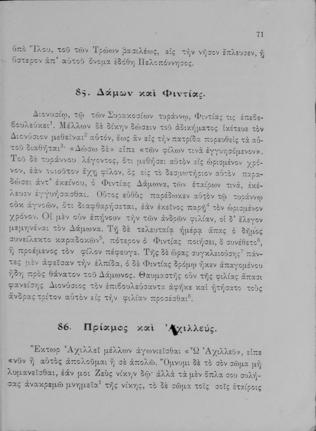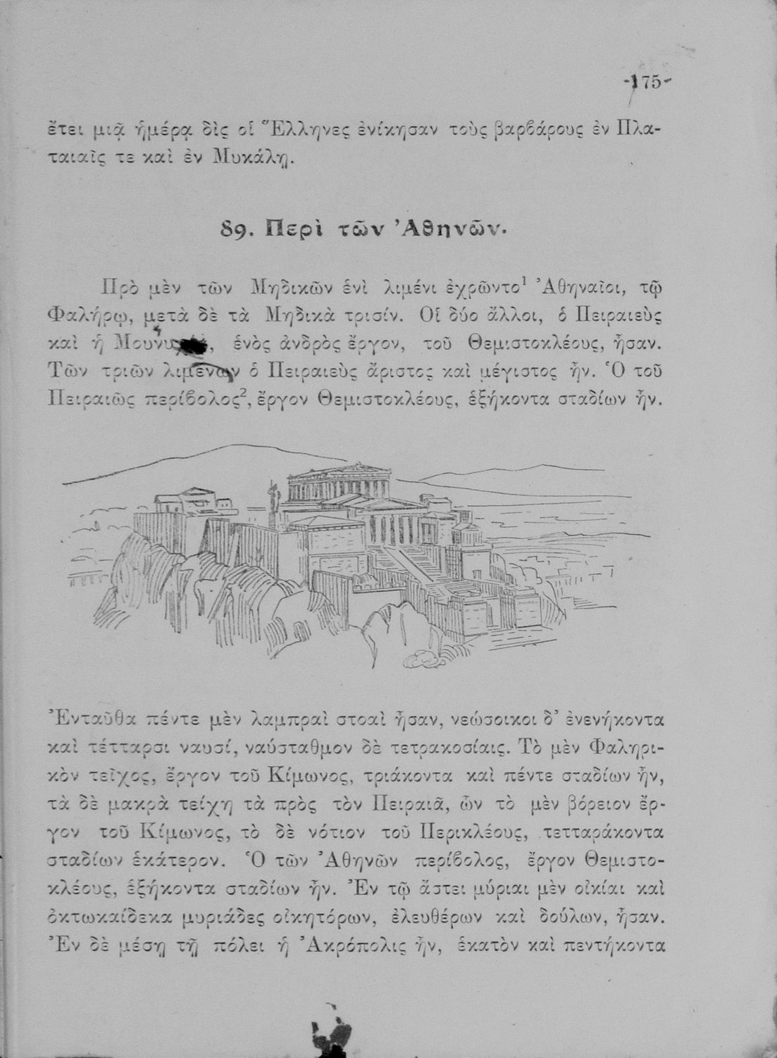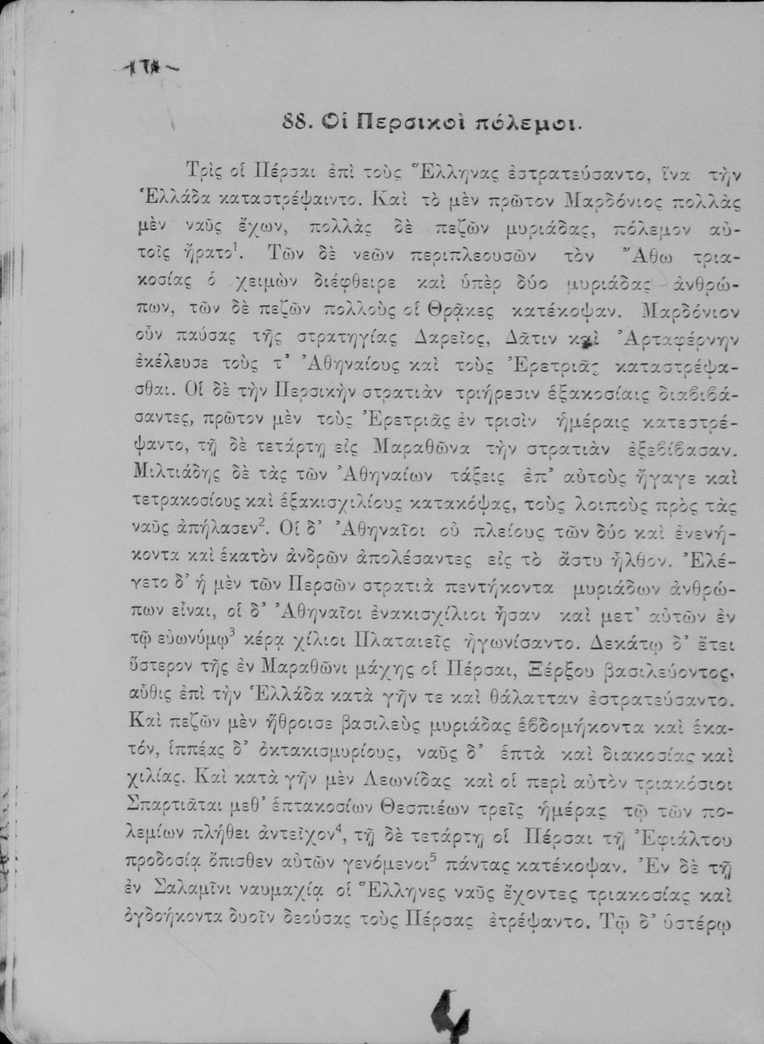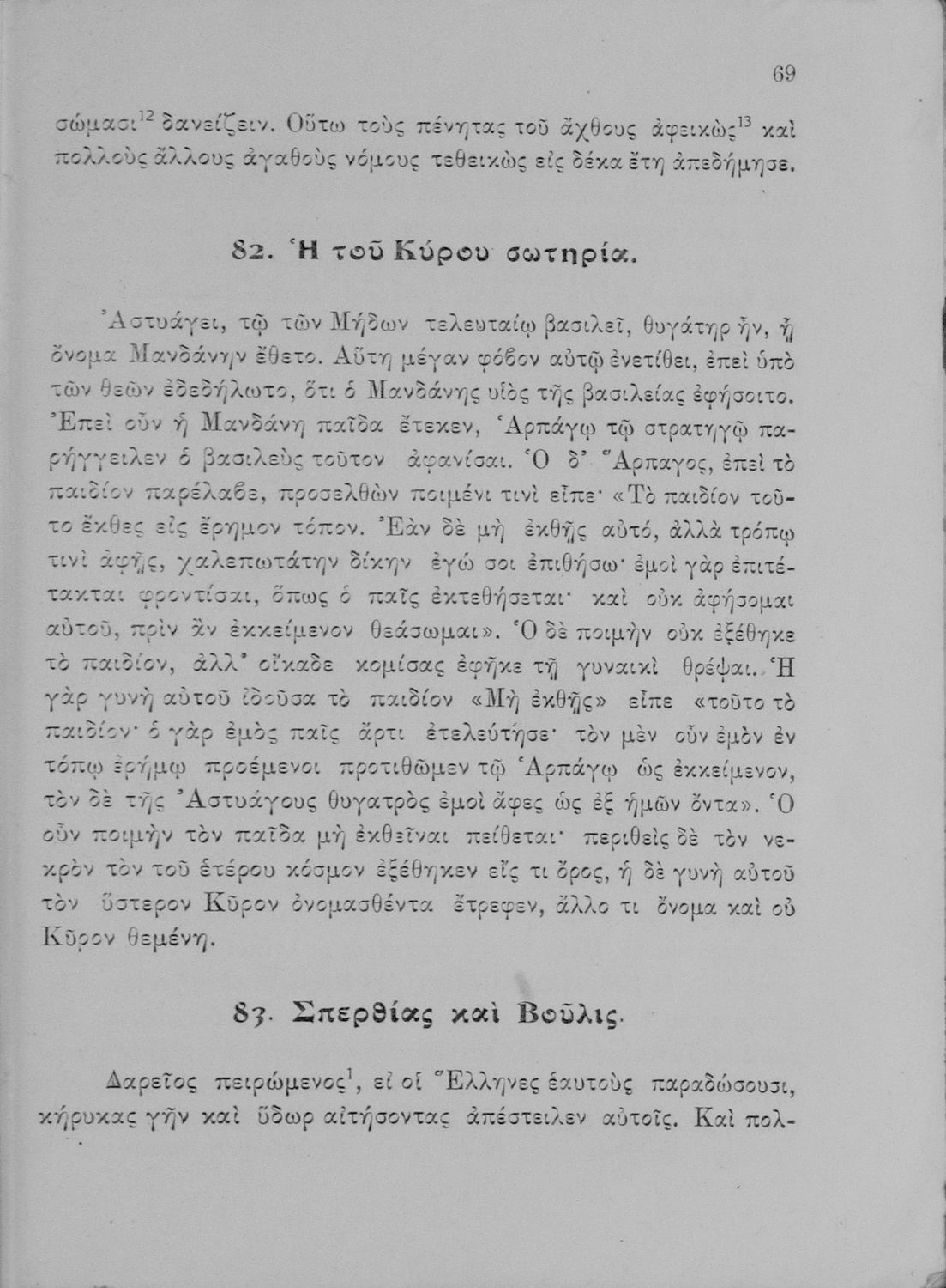 Σχολικό εγχειρίδιο Αρχαίων Ελληνικών Γυμνασίου που περιέχει κείμενα βασισμένα στην αρχαία ελληνική ιστορία και μυθολογία και γραμματικές, συντακτικές και ετυμολογικές παρατηρήσεις.