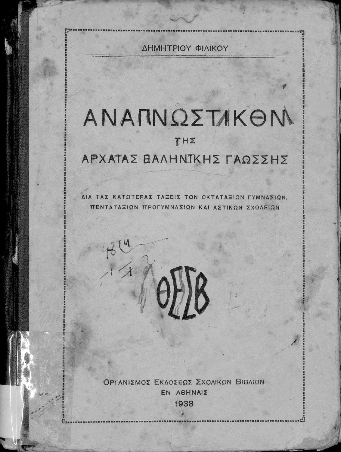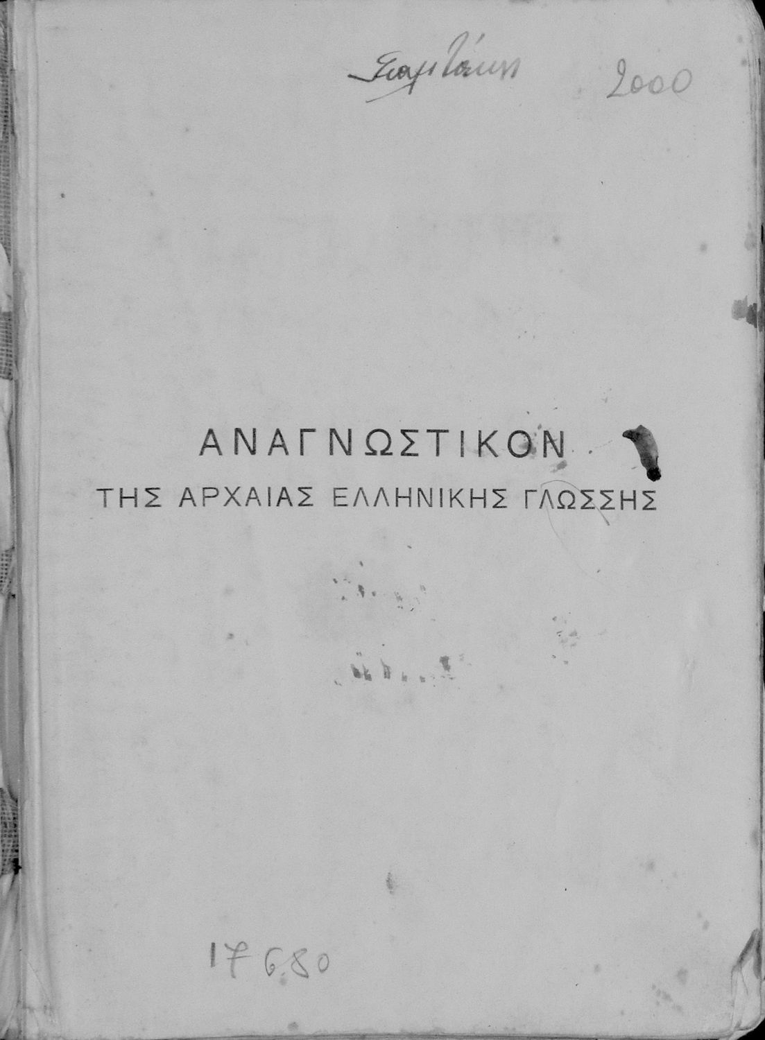 Τίτλος: Αναγνωστικόν της αρχαίας ελληνικής γλώσσης. Δια τας κατωτέρας τάξεις των Οκτατάξιων Γυμνασίων, Πεντατάξιων Προγυμνασίων και Αστικών Σχολείων