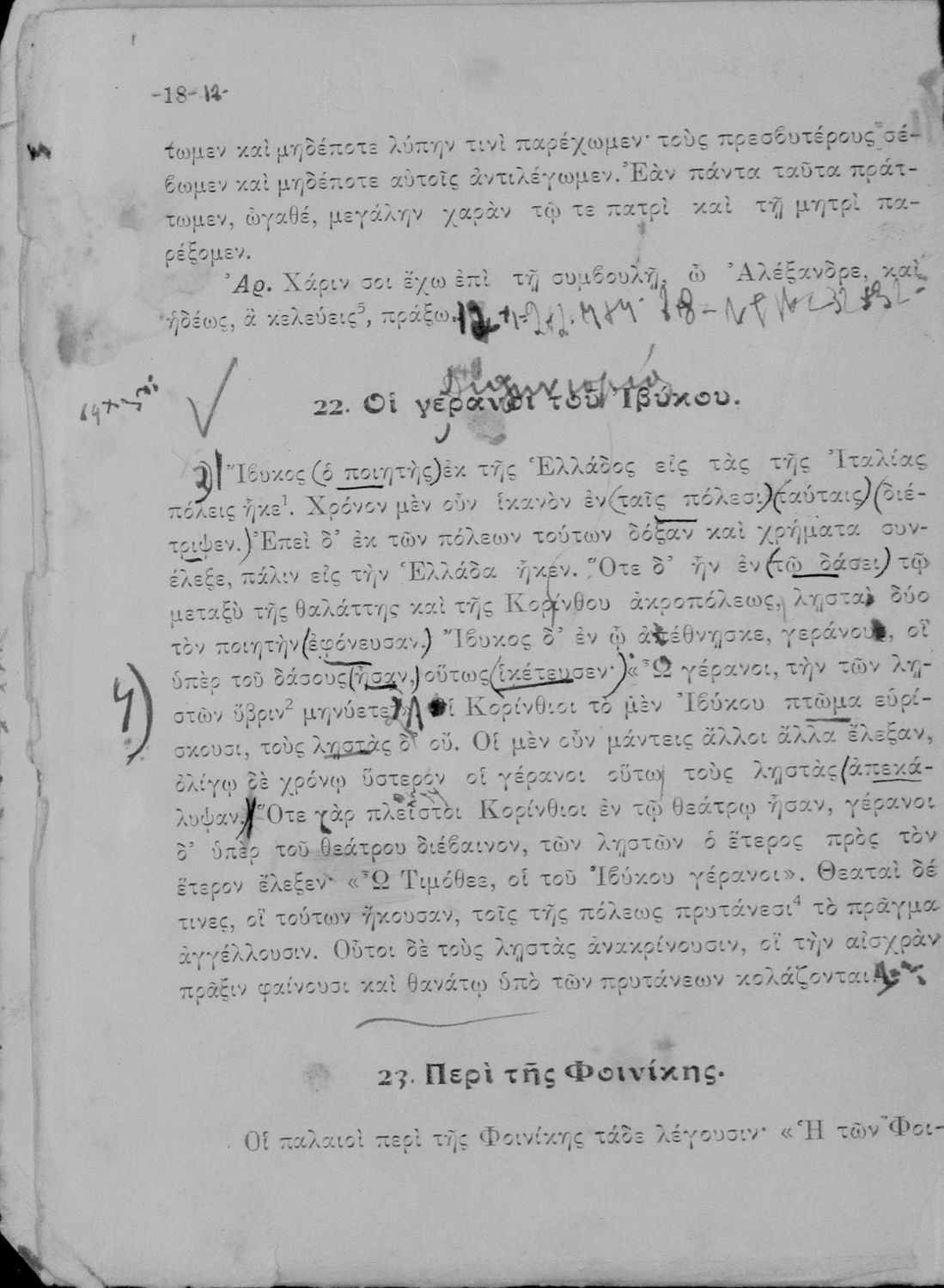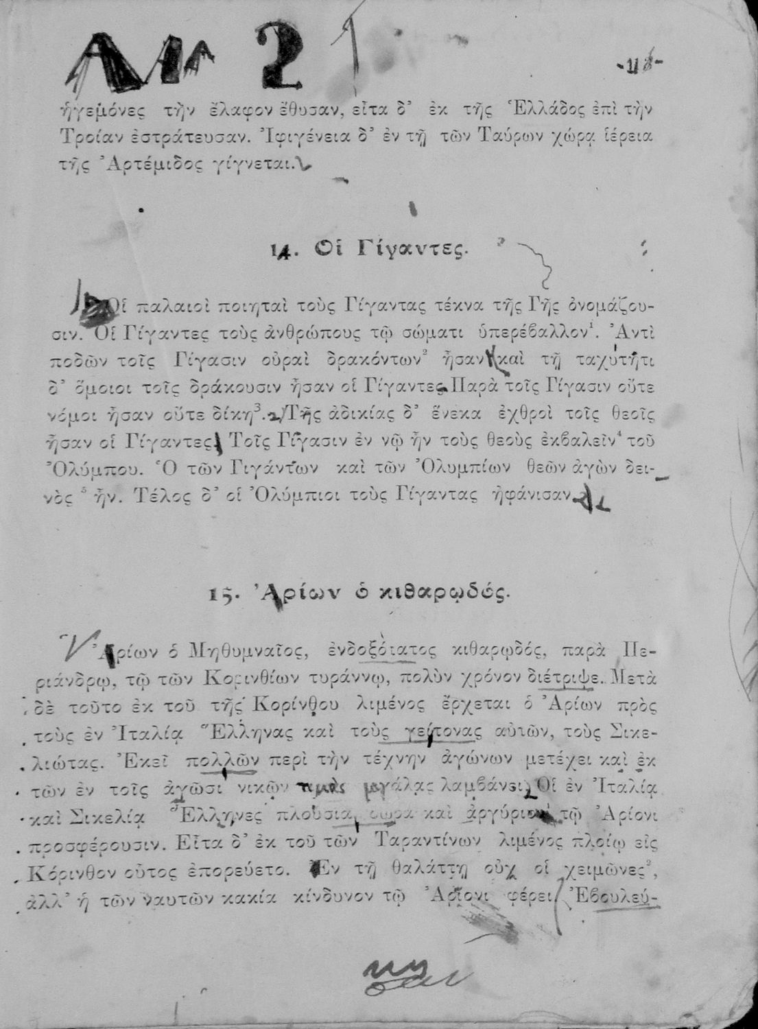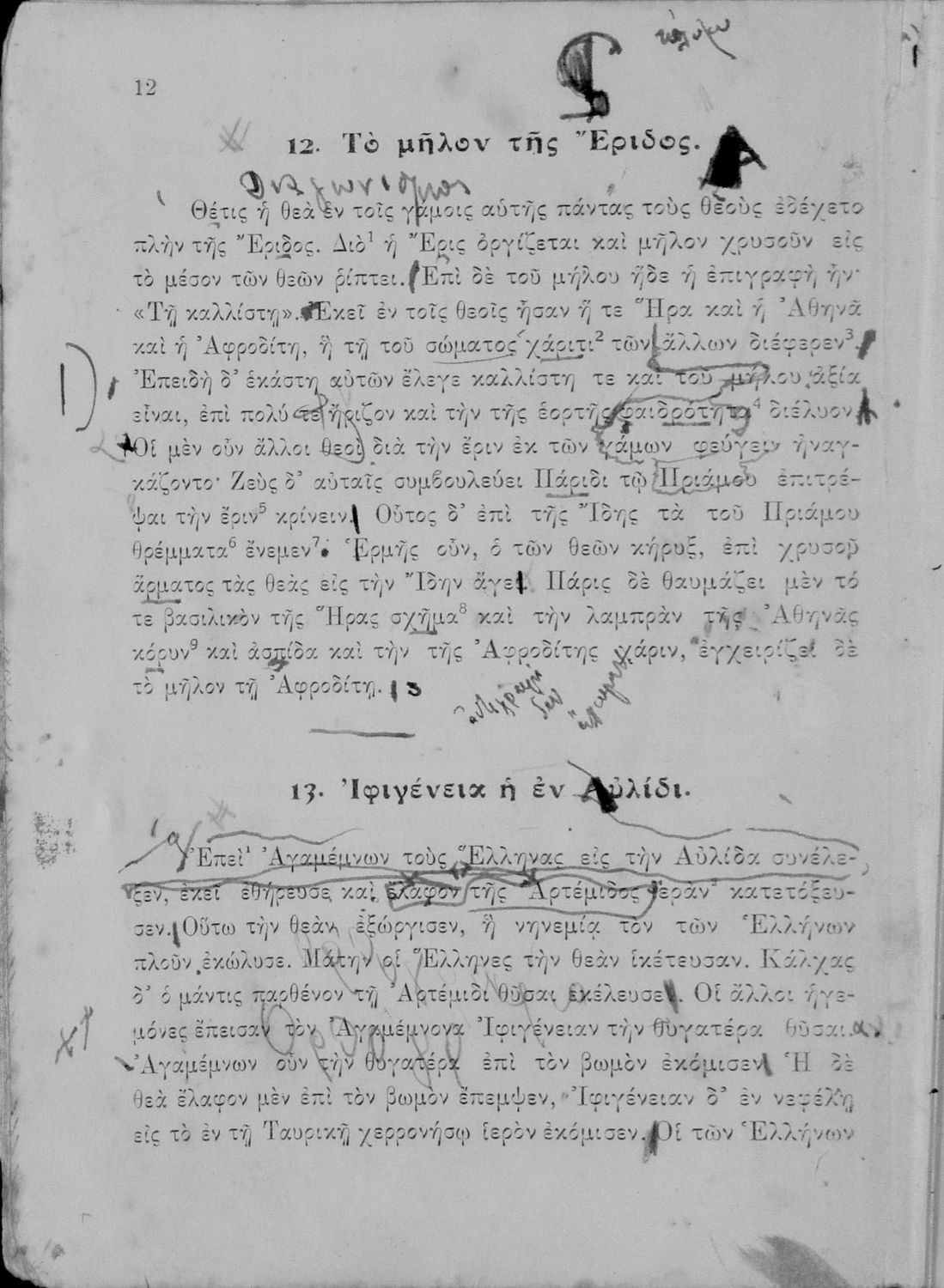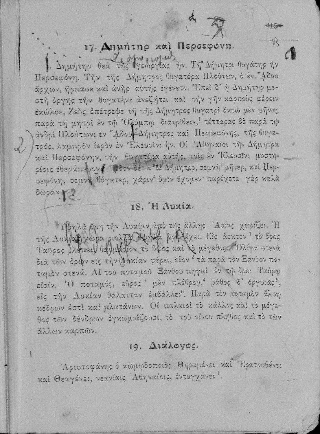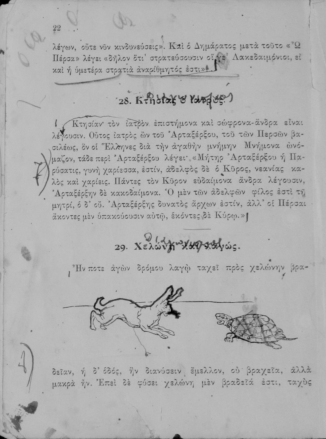 Σχολικό εγχειρίδιο Αρχαίων Ελληνικών Γυμνασίου που περιέχει κείμενα βασισμένα στην αρχαία ελληνική ιστορία και μυθολογία και γραμματικές, συντακτικές και ετυμολογικές παρατηρήσεις.