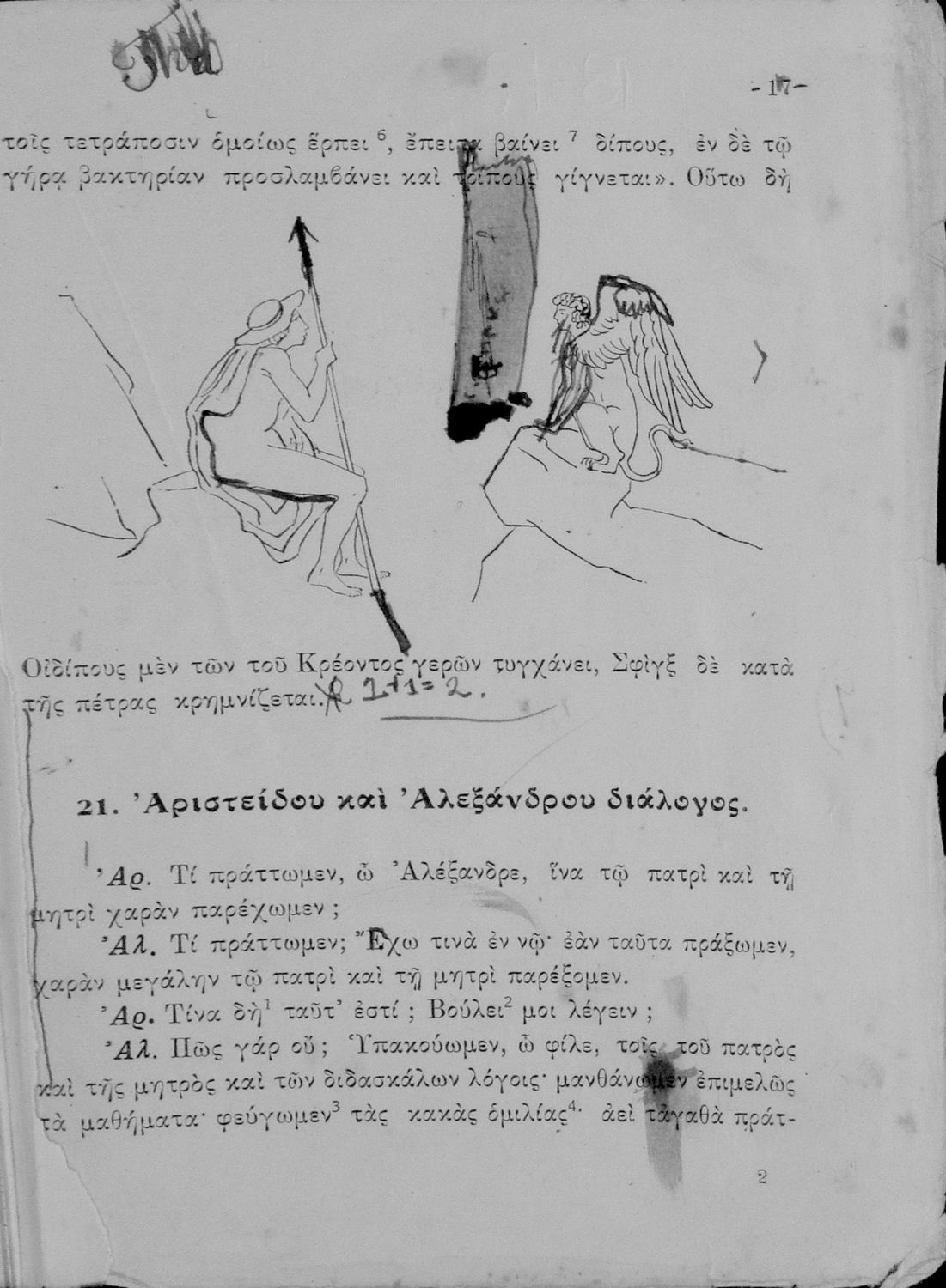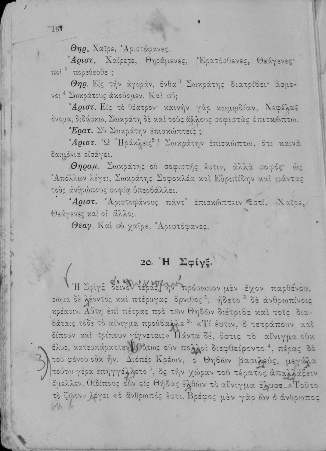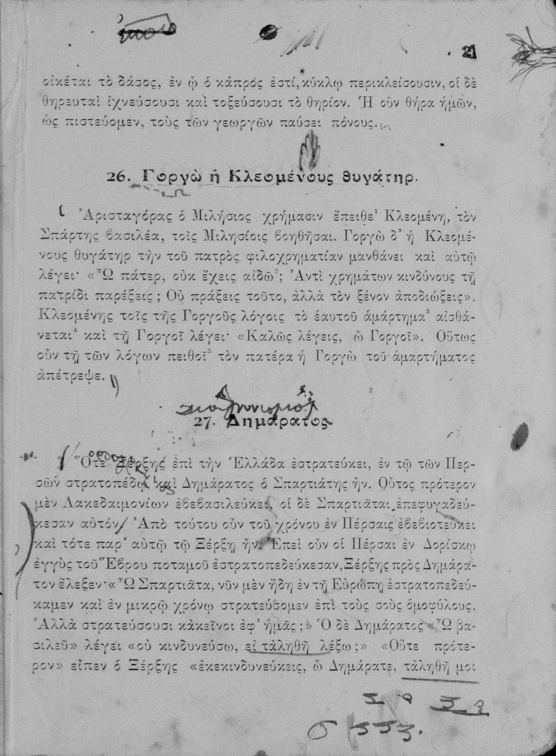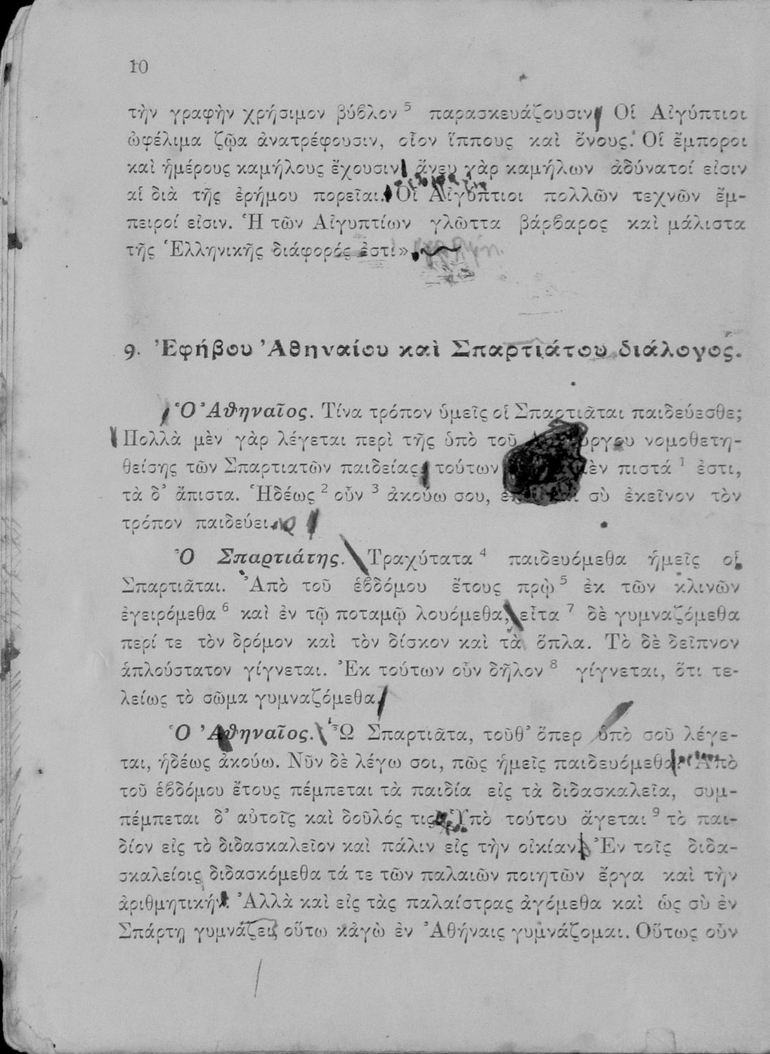 Σχολικό εγχειρίδιο Αρχαίων Ελληνικών Γυμνασίου που περιέχει κείμενα βασισμένα στην αρχαία ελληνική ιστορία και μυθολογία και γραμματικές, συντακτικές και ετυμολογικές παρατηρήσεις.