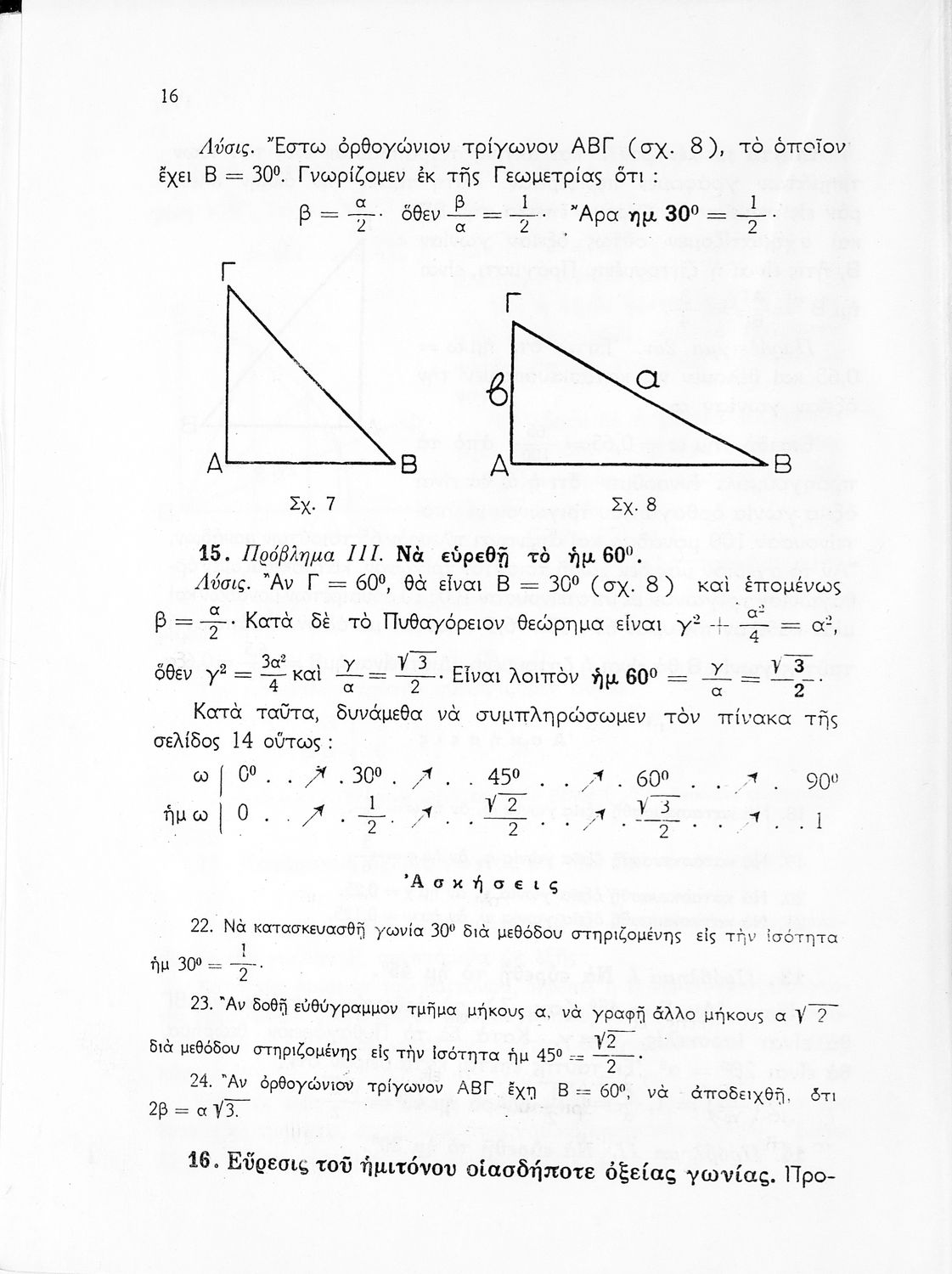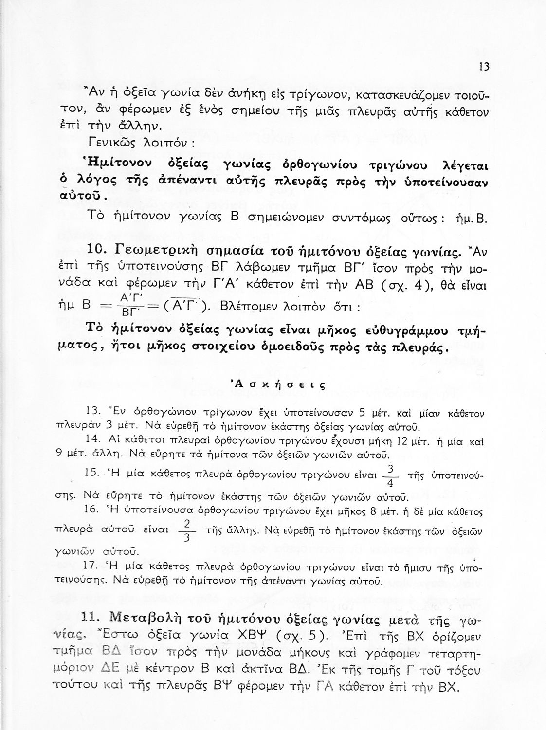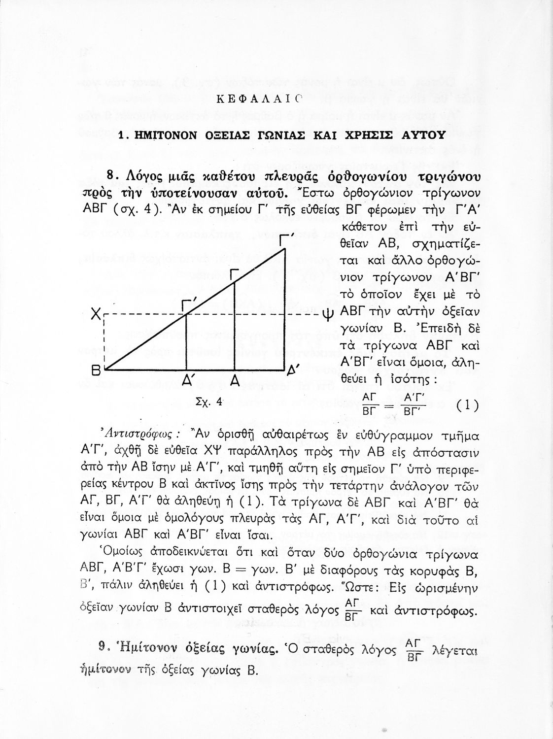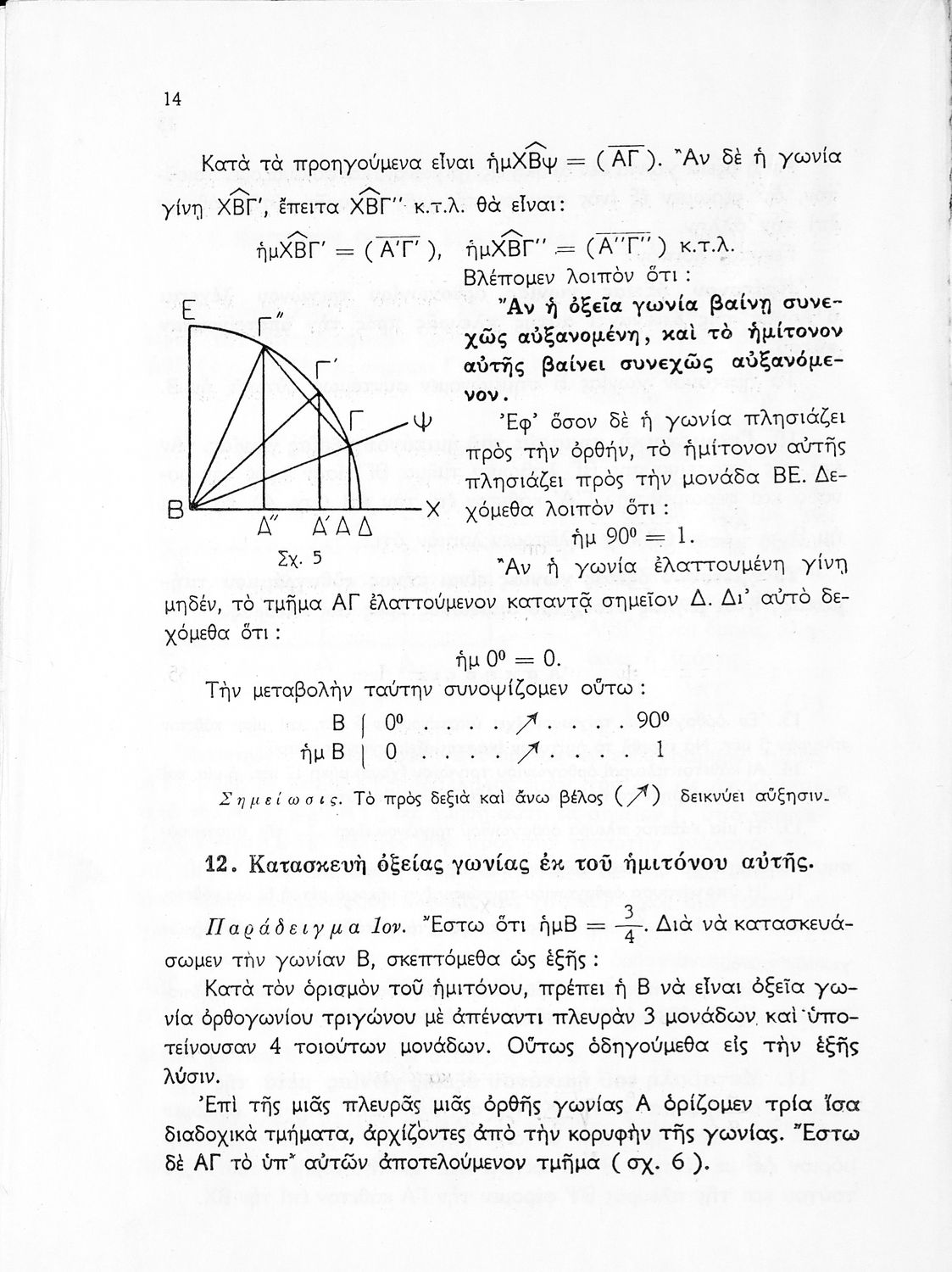 Σχολικό εγχειρίδιο Τριγωνομετρίας για την Η' Γυμνασίου που περιλαμβάνει θεωρία και ασκήσεις.