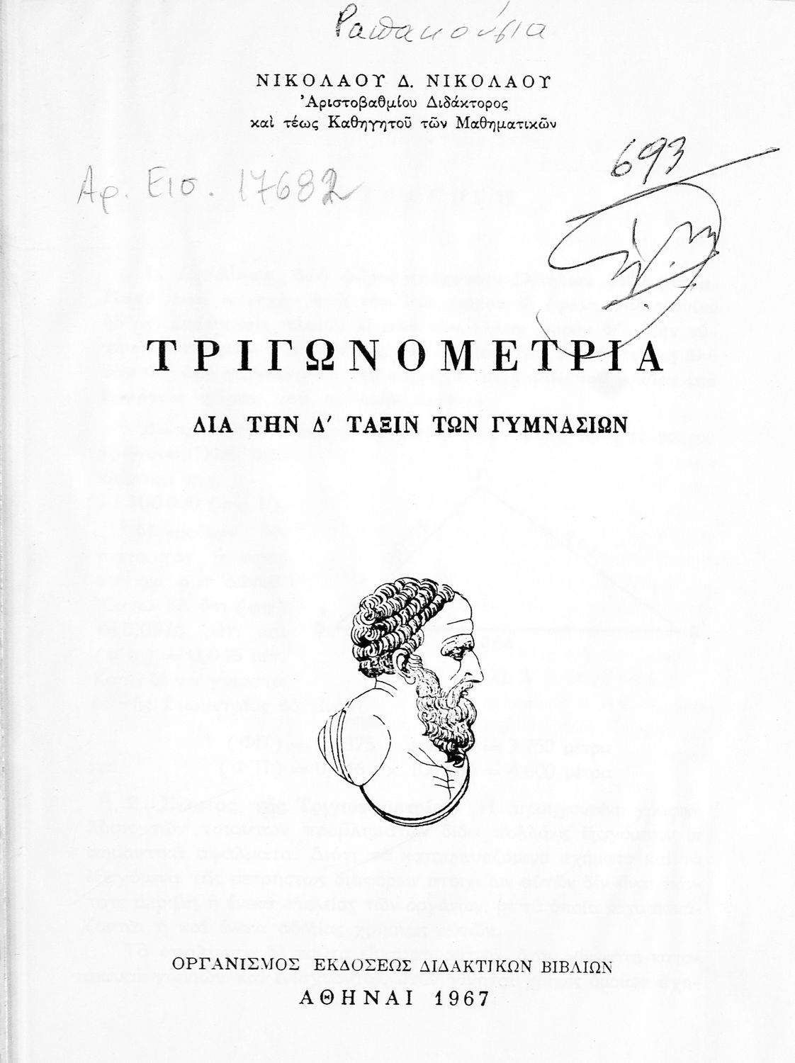 Τίτλος: Τριγωνομετρία δια την Δ΄ τάξιν των Γυμνασίων