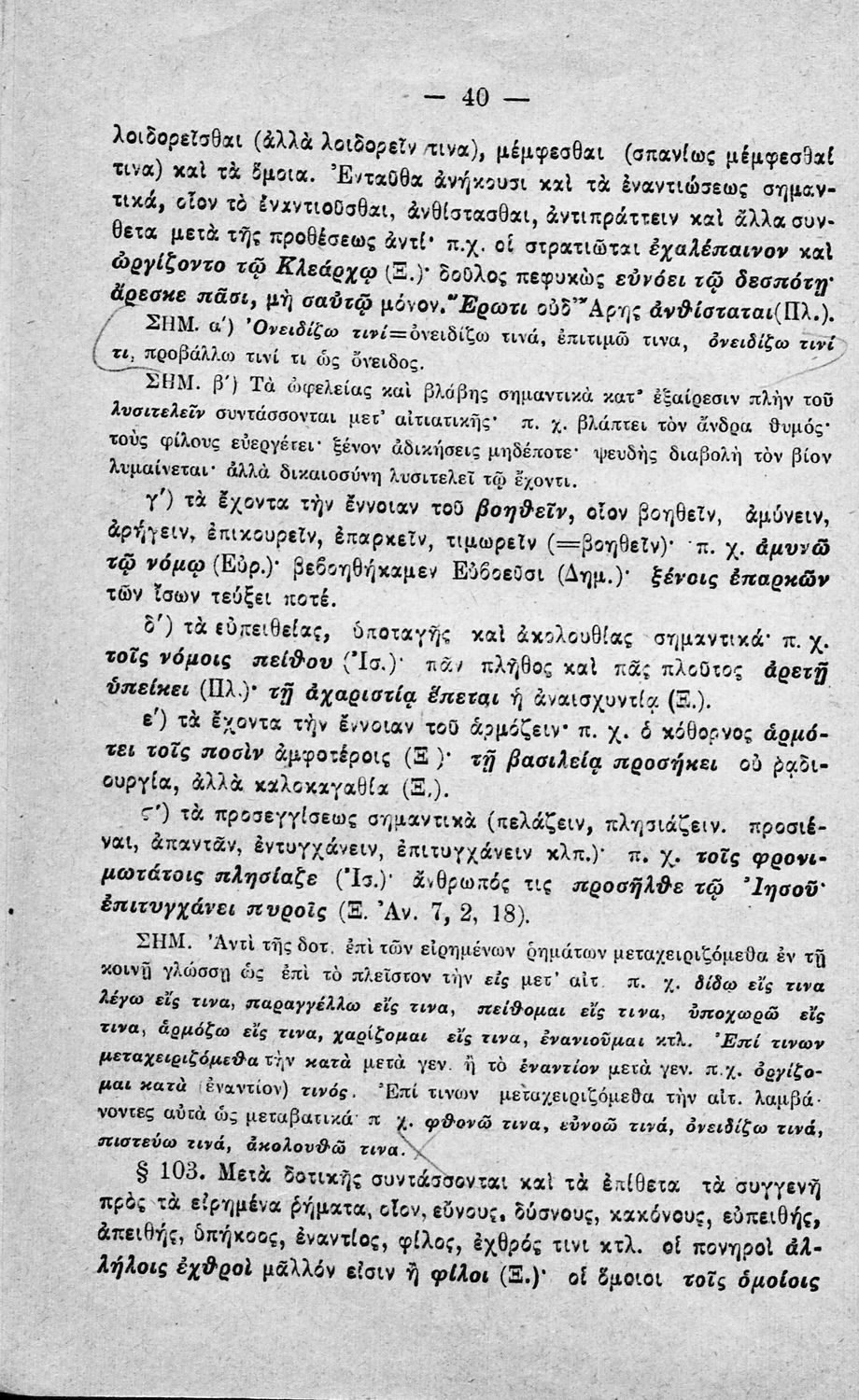 Σχολικό εγχειρίδιο Αρχαίων Ελληνικών Γυμνασίου που εξετάζει τα μέρη του λόγου και την σύνταξή τους.