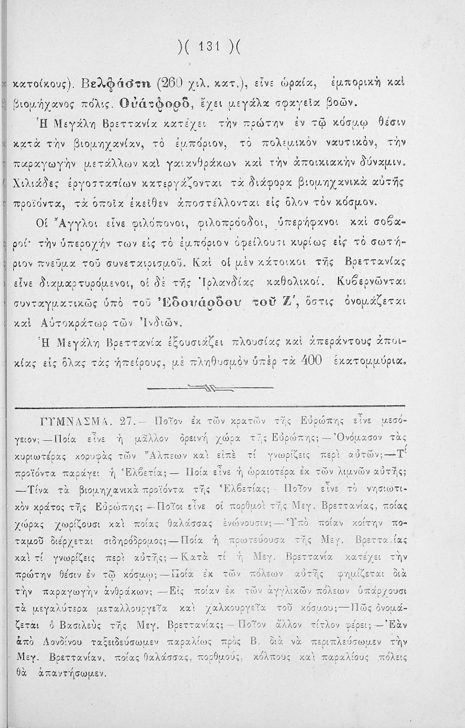 Τάξη: Δ' Αστικού Σχολείου / Ε' Αστικού Σχολείου / ΣΤ' Αστικού Σχολείου / Ζ' Αστικού Σχολείου / Παρθεναγωγείο