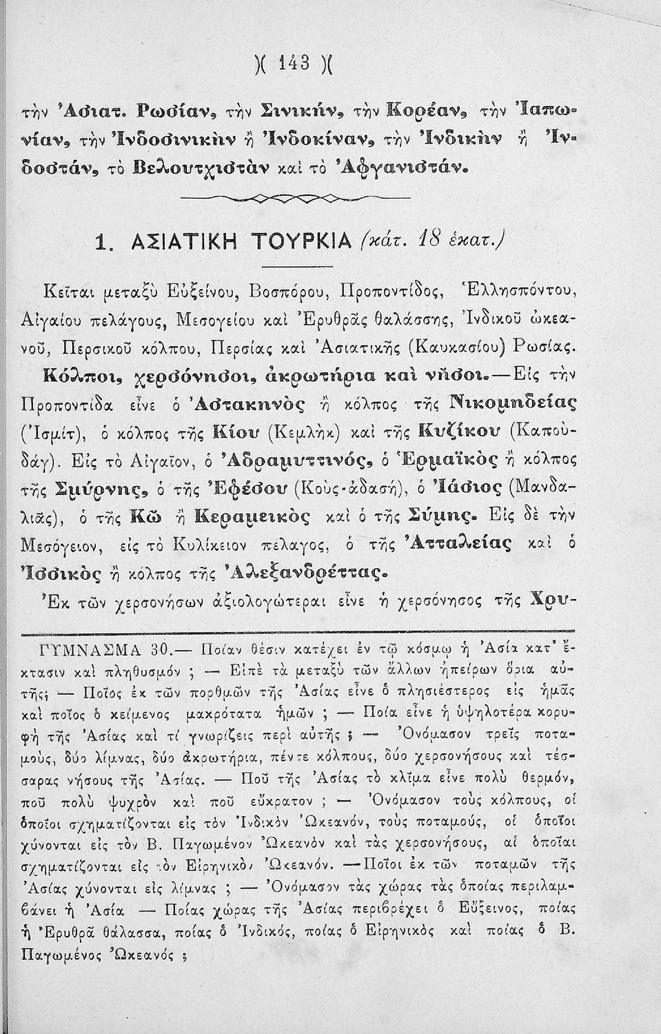 Τάξη:  Β' Ελληνικού Σχολείου / Γ' Ελληνικού Σχολείου / Αστικό Σχολείο / Παρθεναγωγείο