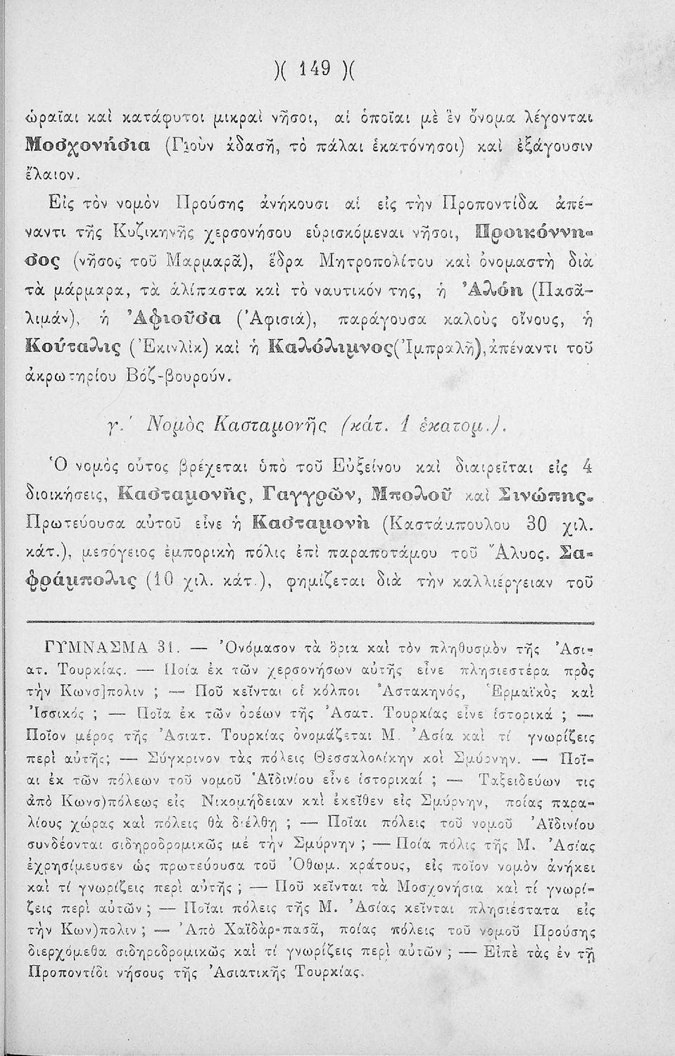Τάξη:  Β' Ελληνικού Σχολείου / Γ' Ελληνικού Σχολείου / Αστικό Σχολείο / Παρθεναγωγείο