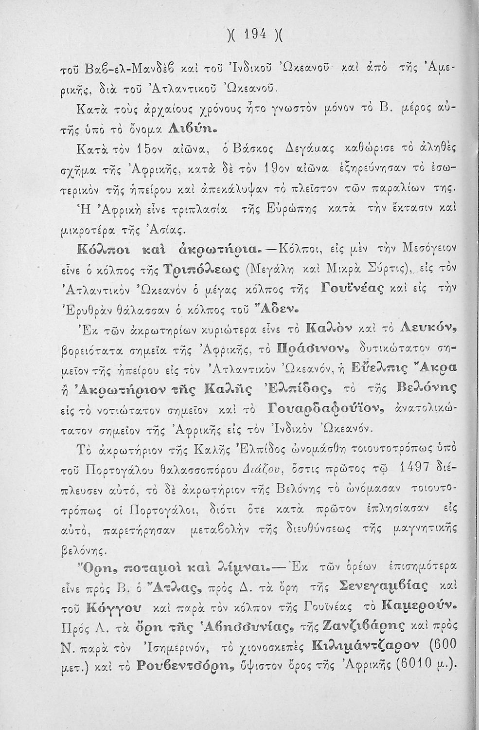 Σχολικό εγχειρίδιο Γεωγραφίας για τους μαθητές της Γ΄ τάξης των Ελληνικών Σχολείων και των Παρθεναγωγείων που περιέχει εισαγωγή στη μαθηματική, φυσική, φυσιογραφική και ανθρωπολογική γεωγραφία και παρουσιάζει ...