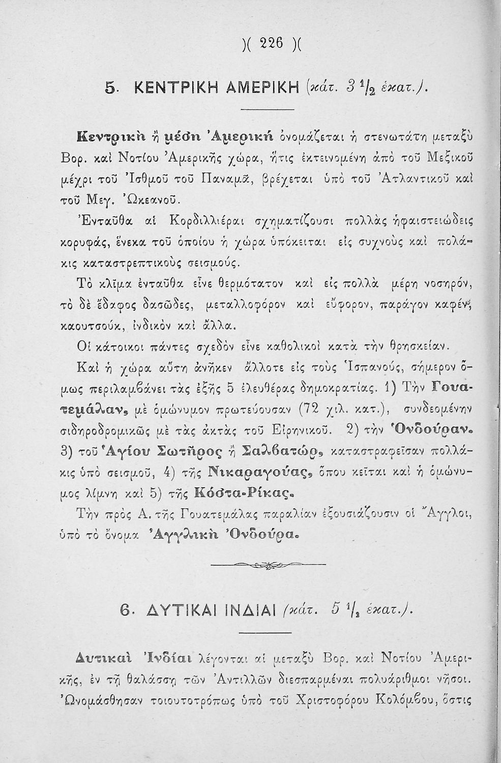 Σχολικό εγχειρίδιο Γεωγραφίας για τις Δ΄, Ε΄, ΣΤ΄ Ζ΄ Αστικών Σχολείων και Παρθεναγωγείων που περιλαμβάνει εισαγωγή στη φυσική, πολιτική και οικονομική γεωγραφία και παρουσιάζει χώρες από τις πέντε ηπείρους. Περιέχει και ασκήσεις.
