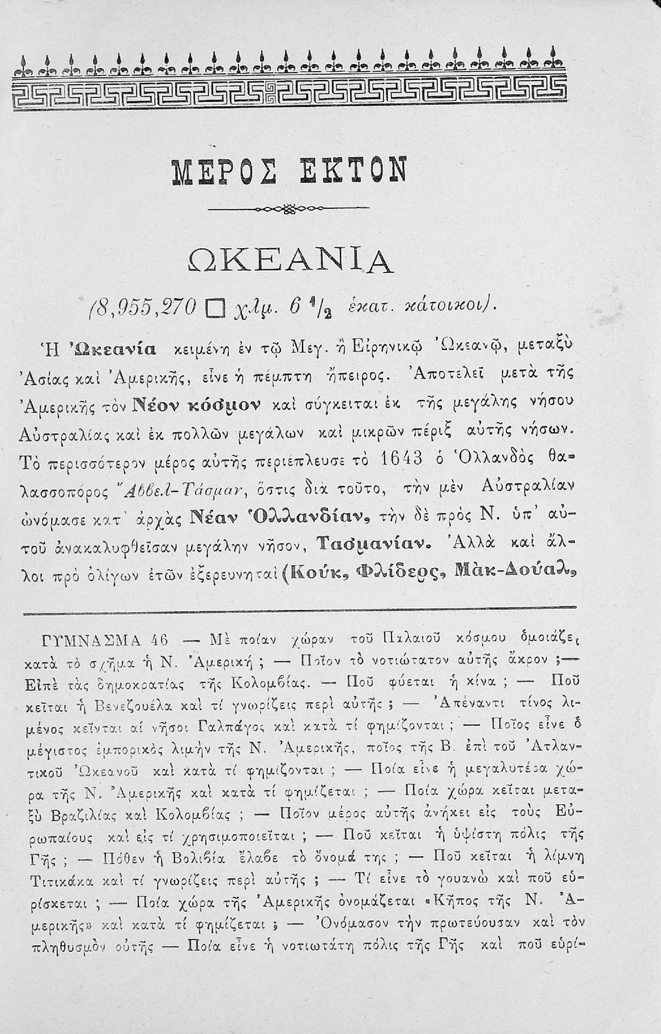Τάξη:  Δ' Δημοτικού / Ε' Δημοτικού / ΣΤ' Δημοτικού / Παρθεναγωγείο / Αστικό Σχολείο