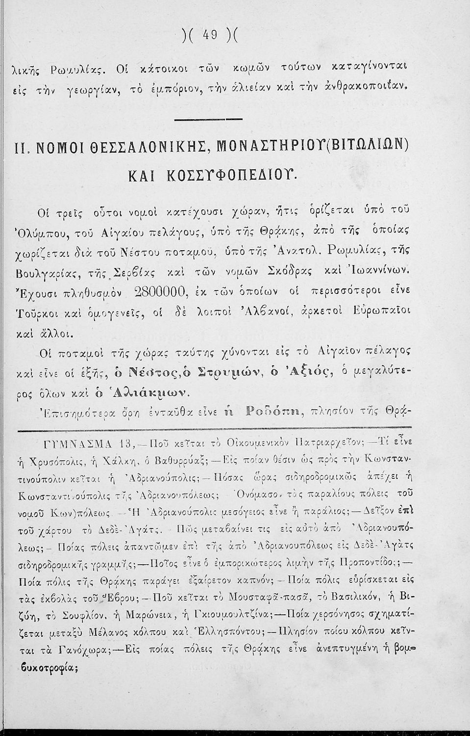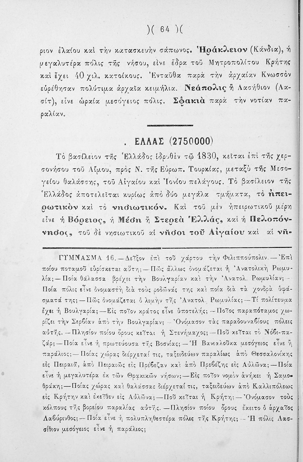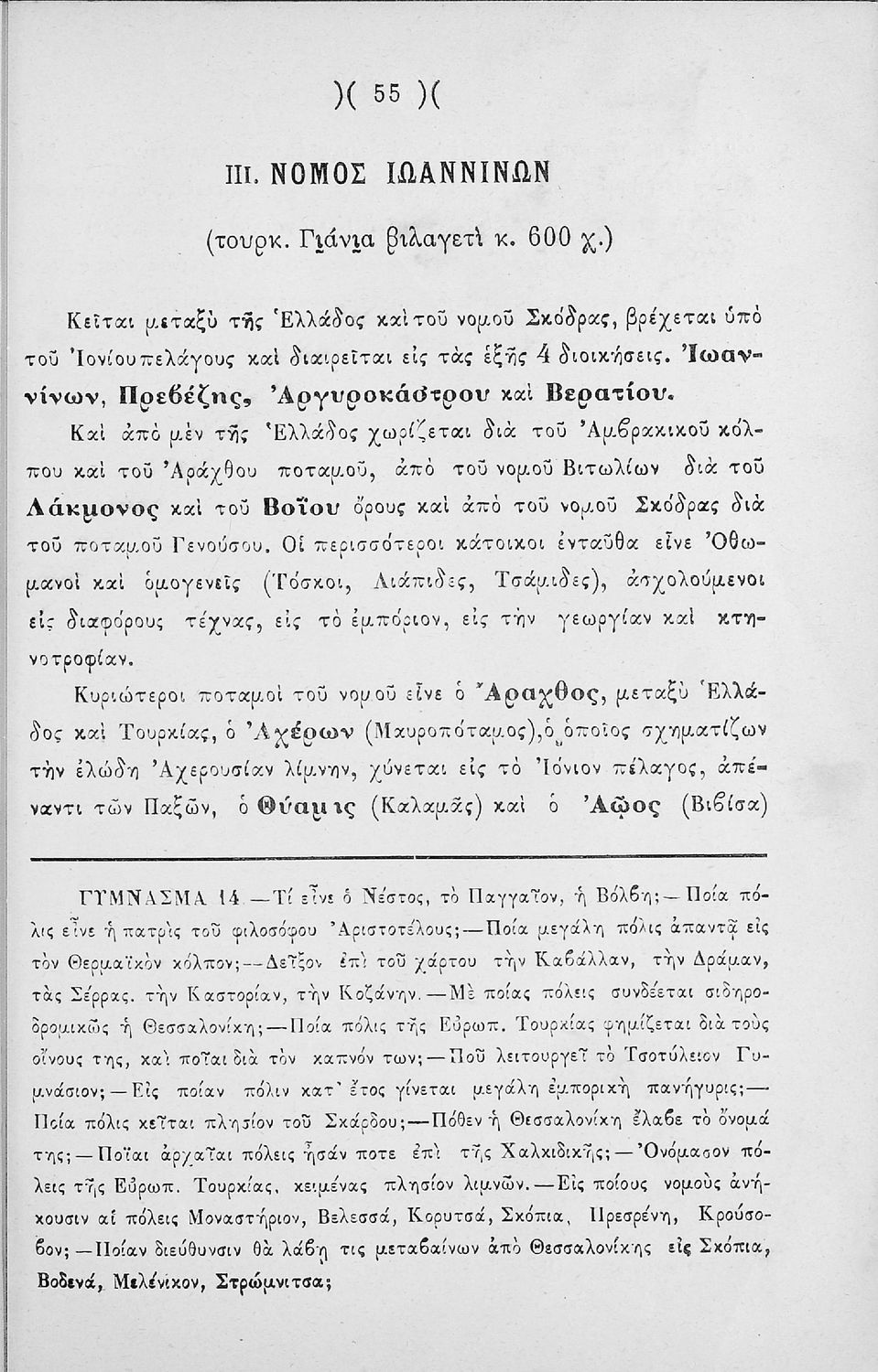 Τάξη:  Β' Ελληνικού Σχολείου / Γ' Ελληνικού Σχολείου / Αστικό Σχολείο / Παρθεναγωγείο