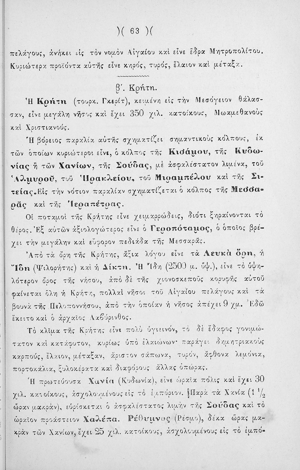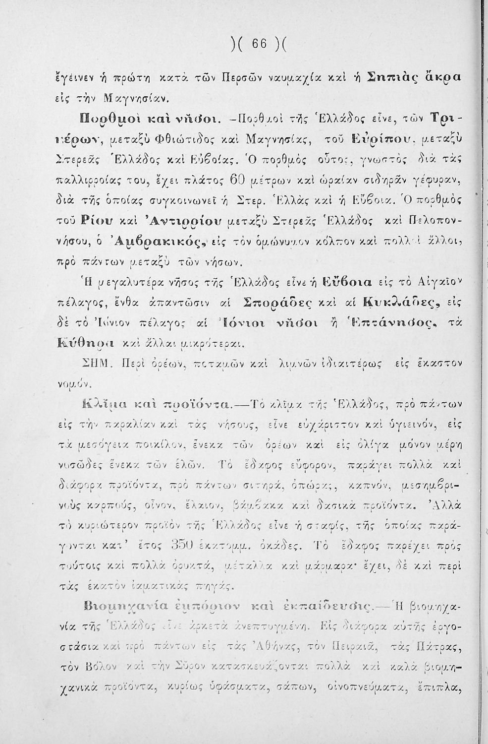 Σχολικό εγχειρίδιο Γεωγραφίας για τους μαθητές της Γ΄ τάξης των Ελληνικών Σχολείων και των Παρθεναγωγείων που περιέχει εισαγωγή στη μαθηματική, φυσική, φυσιογραφική και ανθρωπολογική γεωγραφία και παρουσιάζει ...