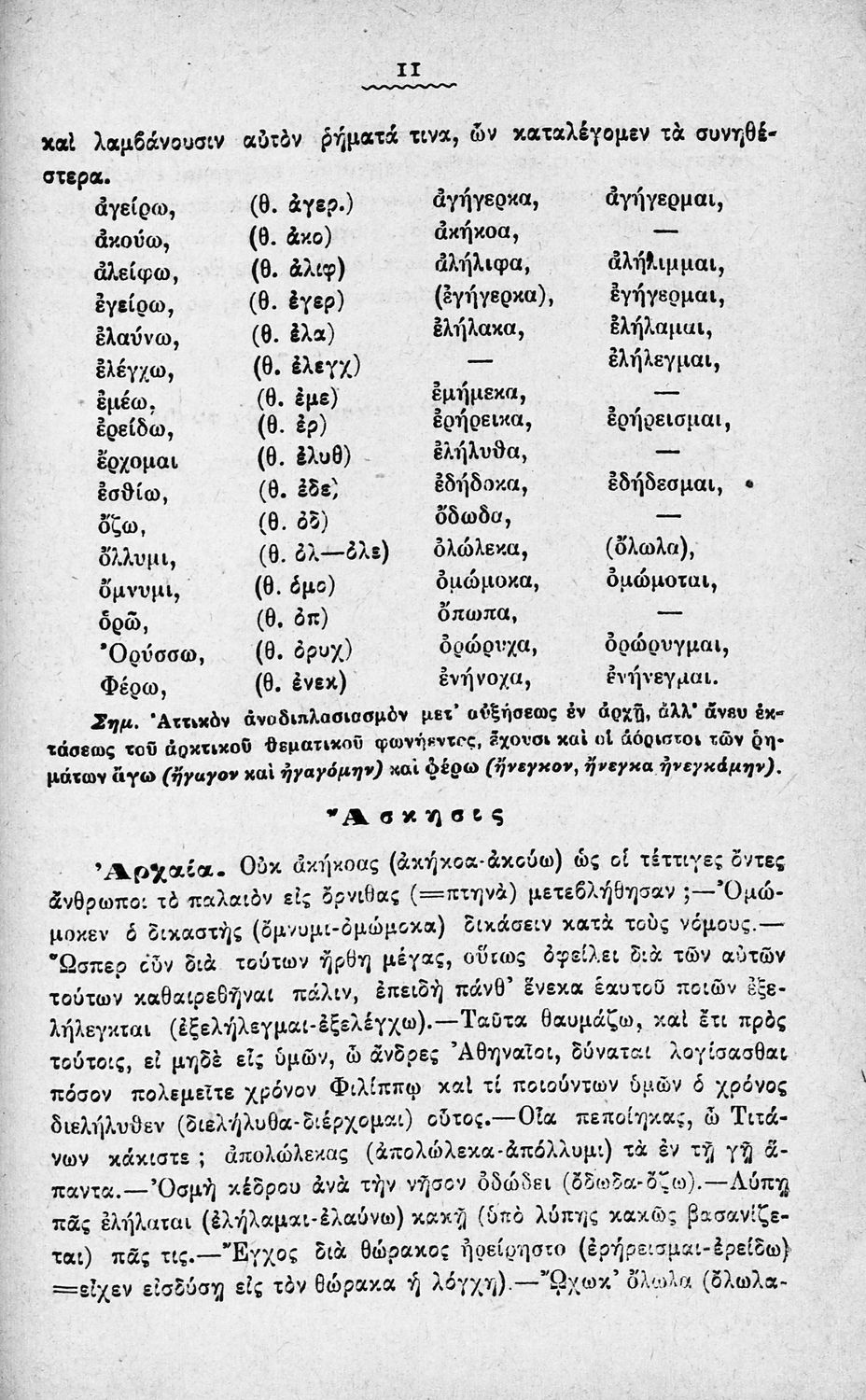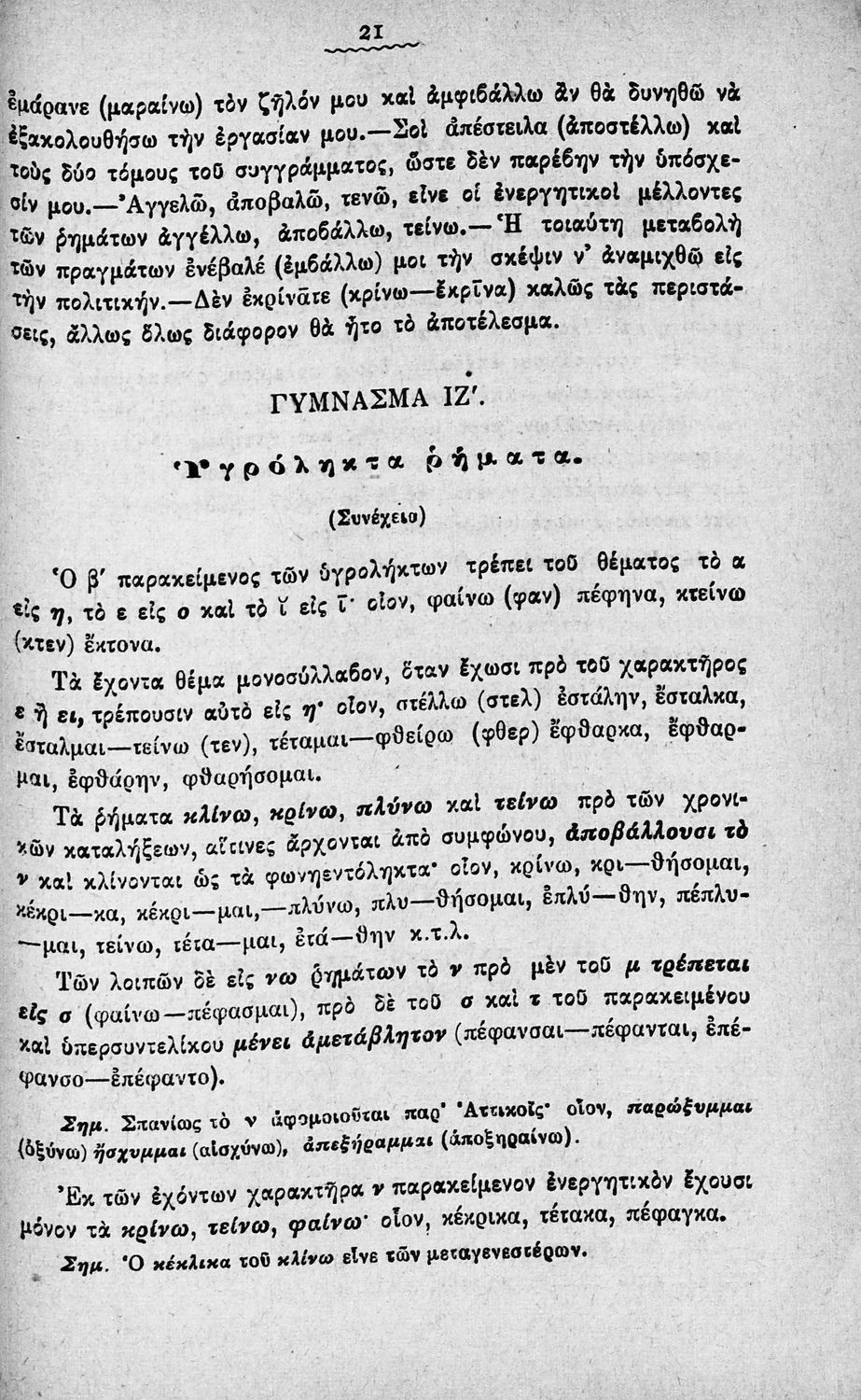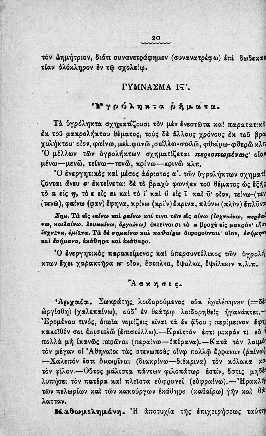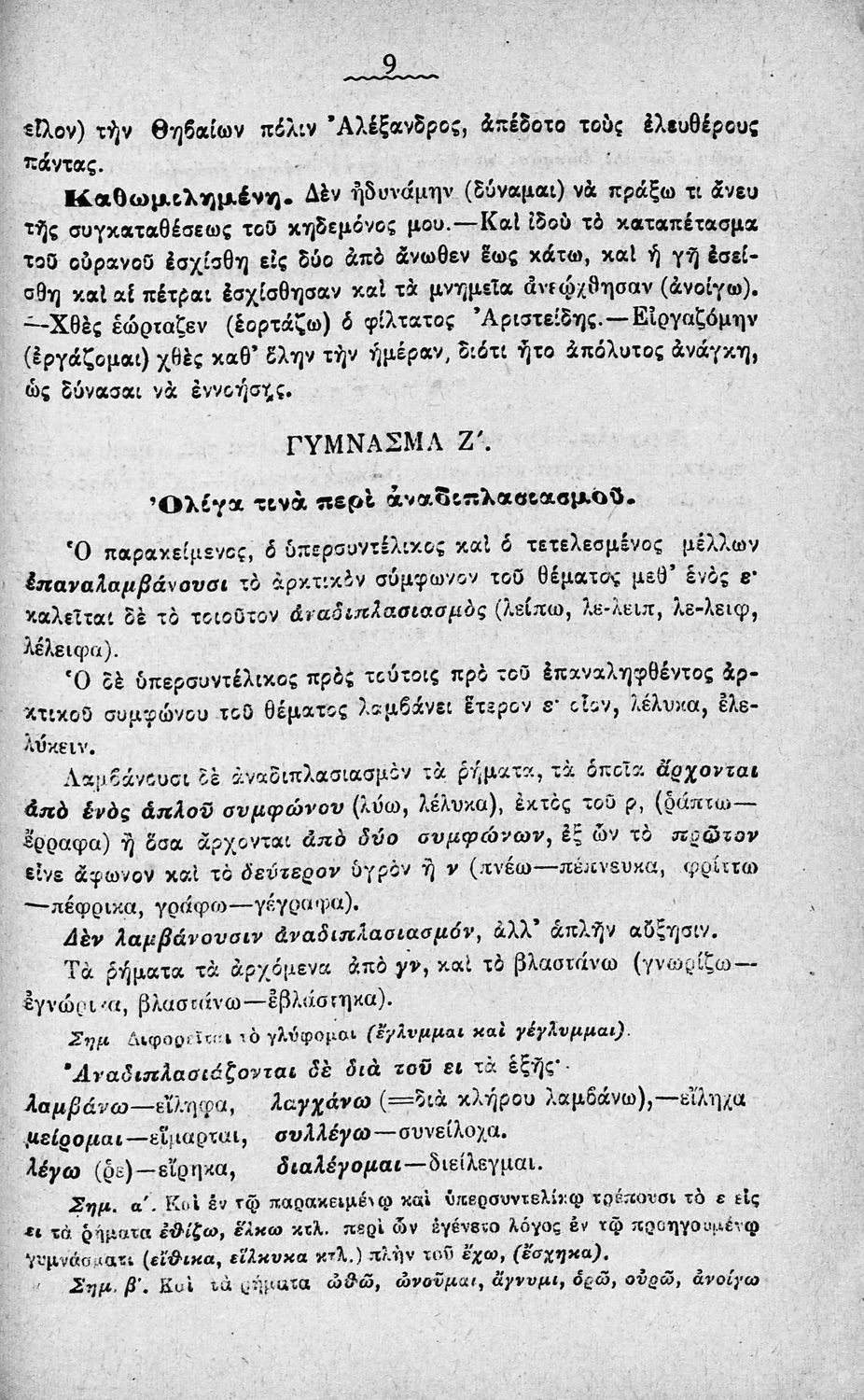 Σχολικό εγχειρίδιο Αρχαίων Ελληνικών Γυμνασίου που περιέχει τους κανόνες γραμματικής και είναι χωρισμένο σε φθογγολογικό, τυπολογικό και ετυμολογικό μέρος. Περιέχει και κατάλογο ανωμάλων ρημάτων.