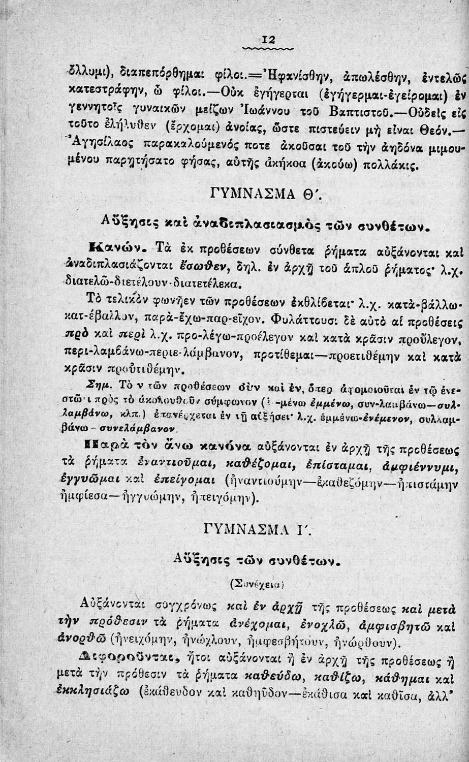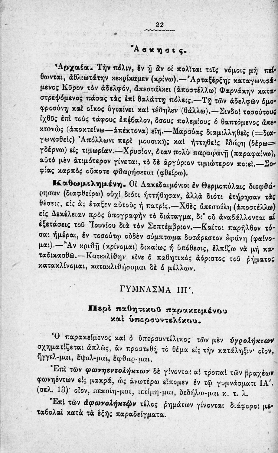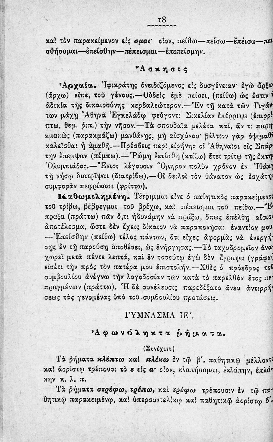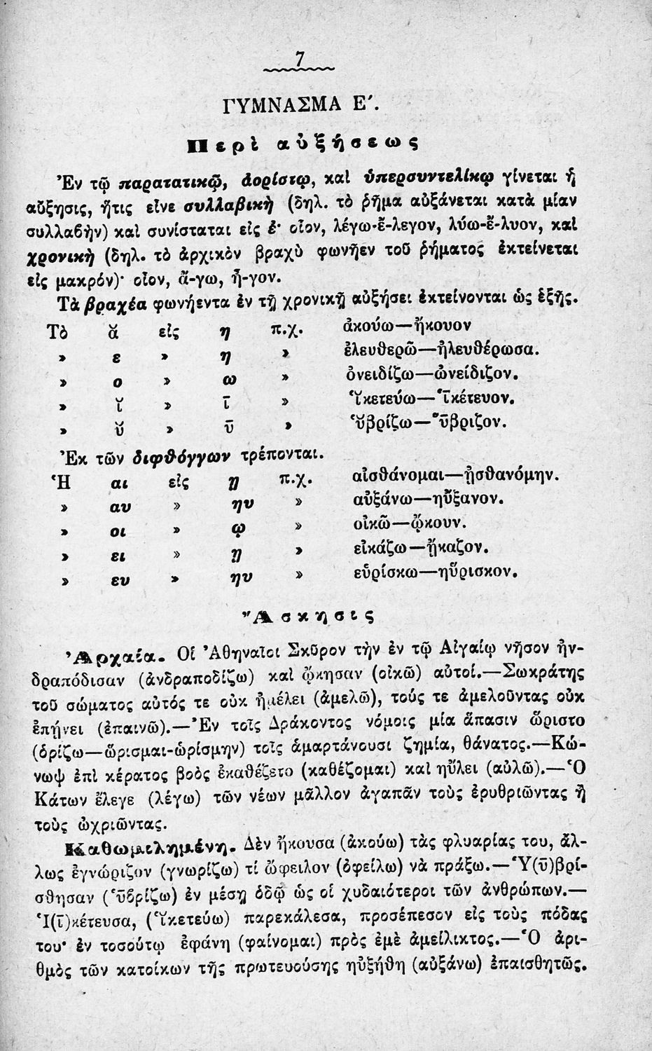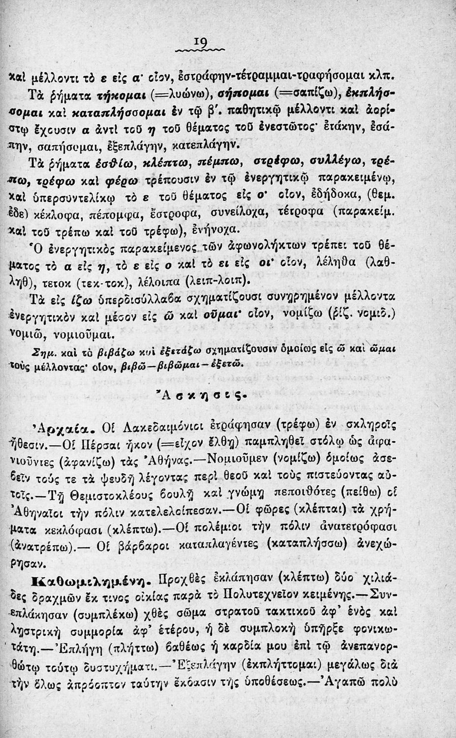 Σχολικό εγχειρίδιο Αρχαίων Ελληνικών Γυμνασίου που περιέχει τους κανόνες γραμματικής και είναι χωρισμένο σε φθογγολογικό, τυπολογικό και ετυμολογικό μέρος. Περιέχει και κατάλογο ανωμάλων ρημάτων.