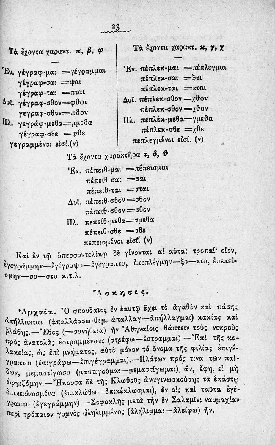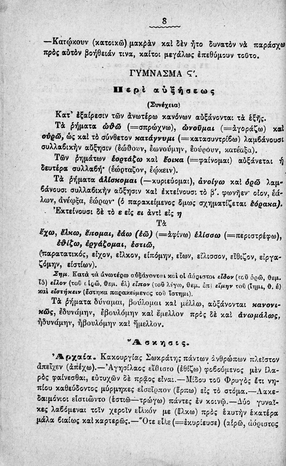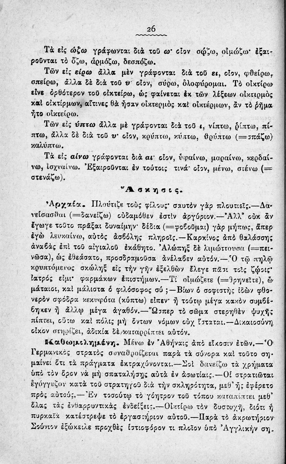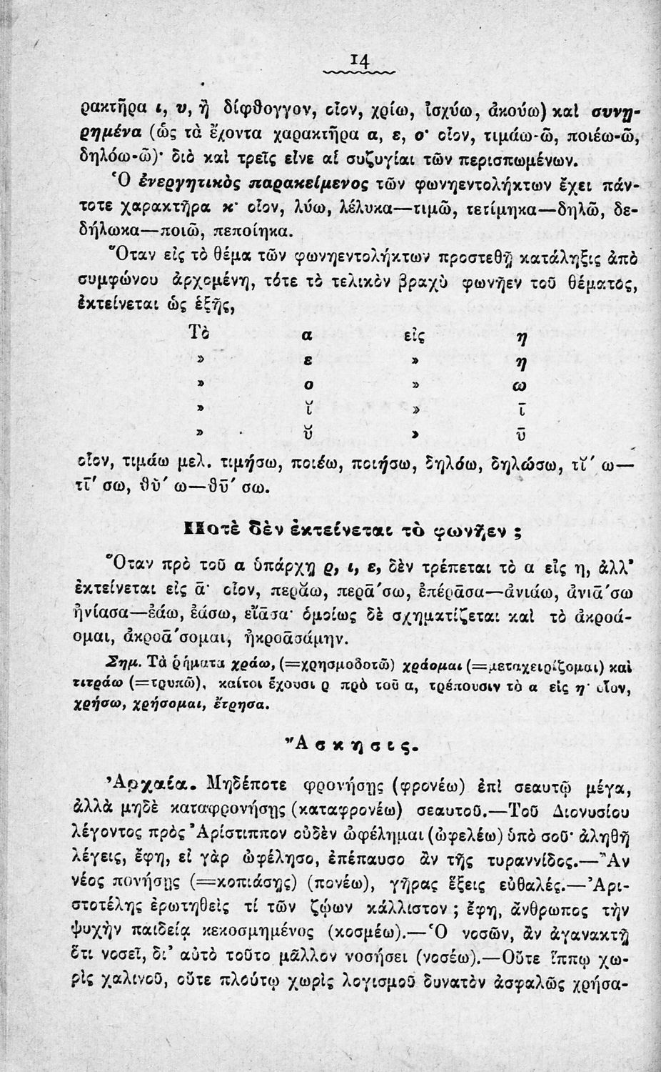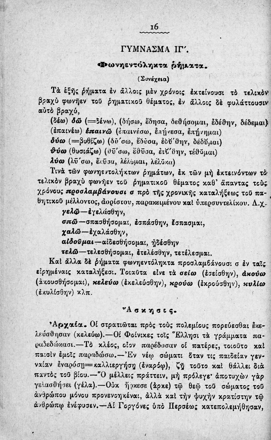 Σχολικό εγχειρίδιο Αρχαίων Ελληνικών Γυμνασίου που περιέχει τους κανόνες γραμματικής και είναι χωρισμένο σε φθογγολογικό, τυπολογικό και ετυμολογικό μέρος. Περιέχει και κατάλογο ανωμάλων ρημάτων.