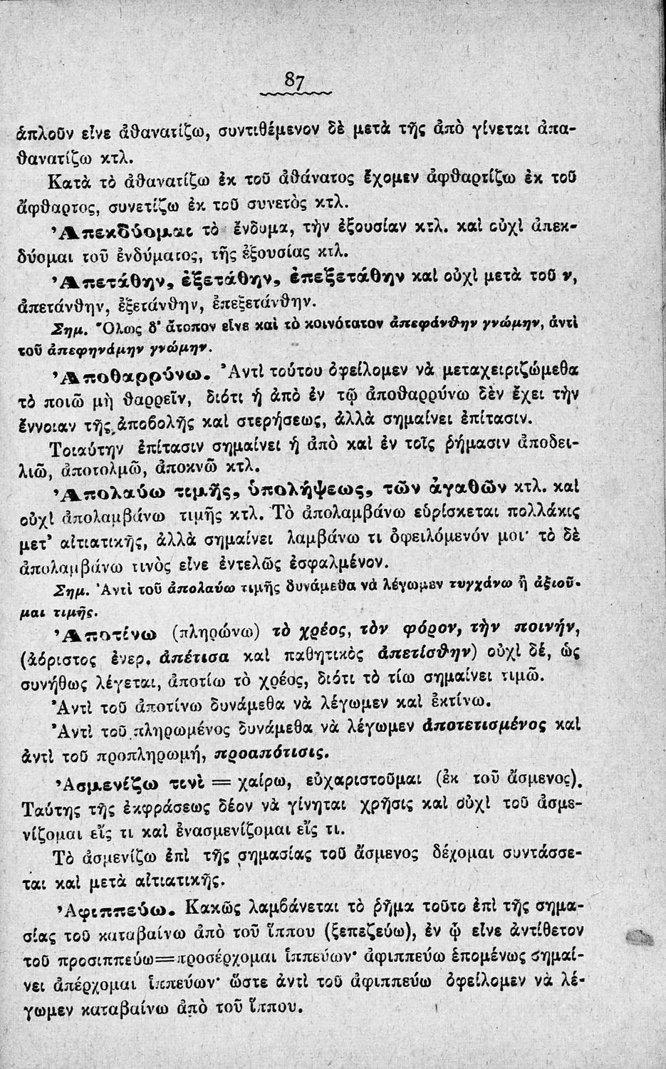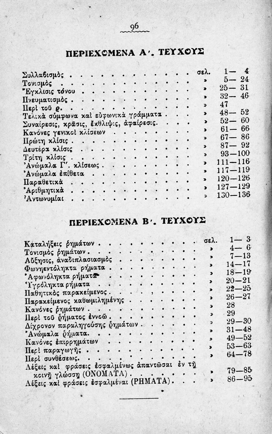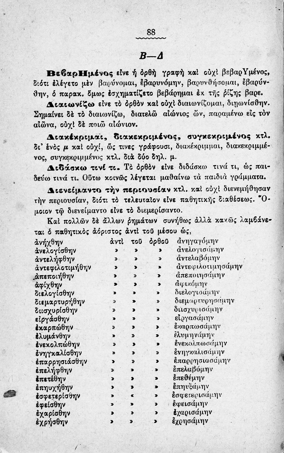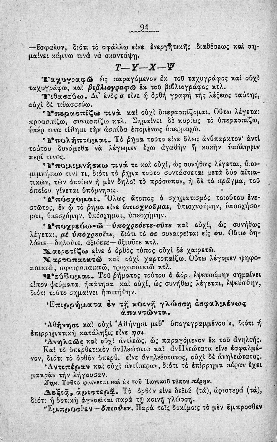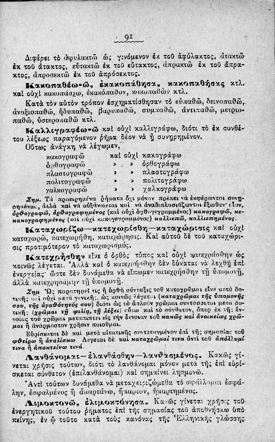Σχολικό εγχειρίδιο Αρχαίων Ελληνικών Γυμνασίου που περιέχει τους κανόνες γραμματικής και είναι χωρισμένο σε φθογγολογικό, τυπολογικό και ετυμολογικό μέρος. Περιέχει και κατάλογο ανωμάλων ρημάτων.