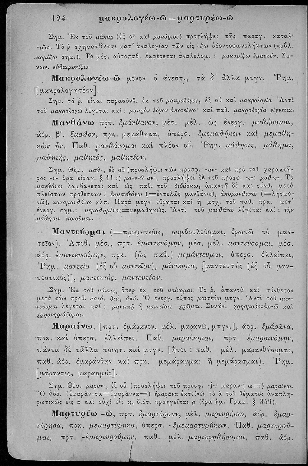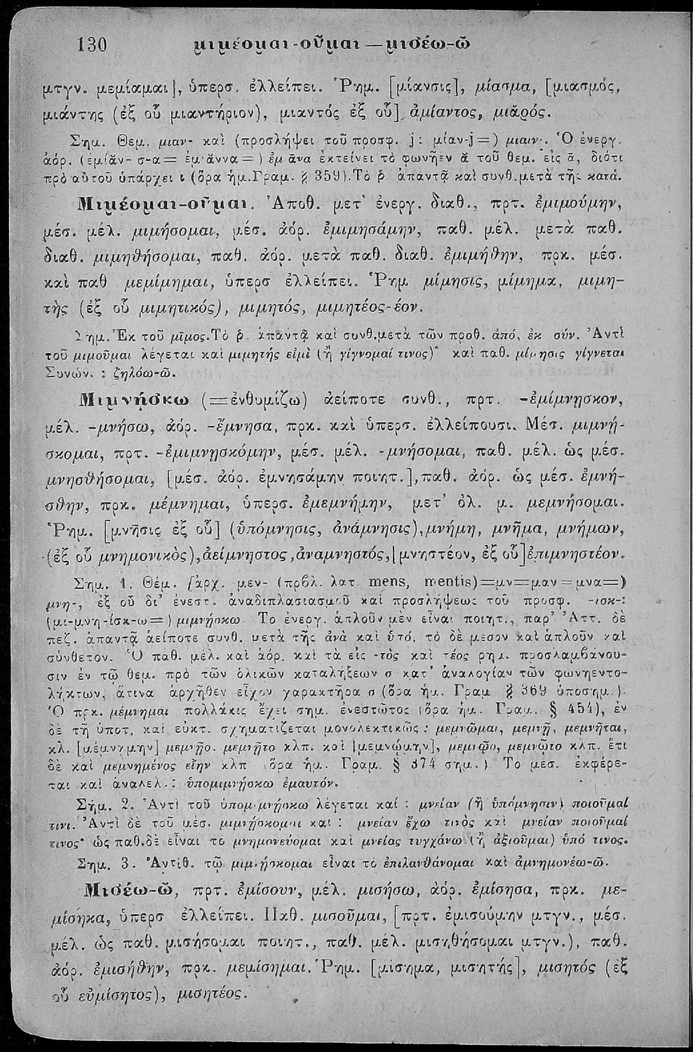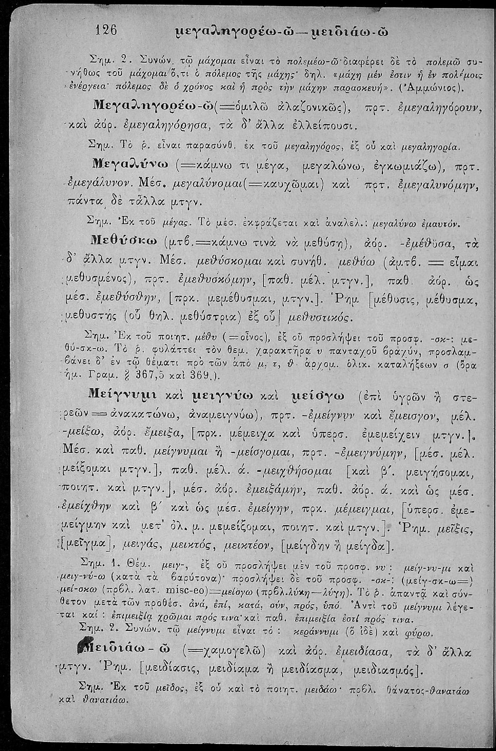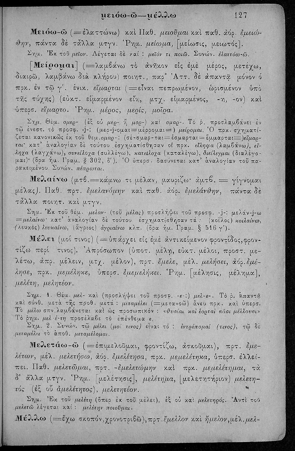 Μαθητικό βοήθημα Αρχαίων Ελληνικών για τα Ελληνικά Σχολεία, Παρθεναγωγεία και Γυμνάσια που περιλαμβάνει γραμματική της αρχαίας ελληνικής και κατάλογο ανωμάλων ρημάτων.