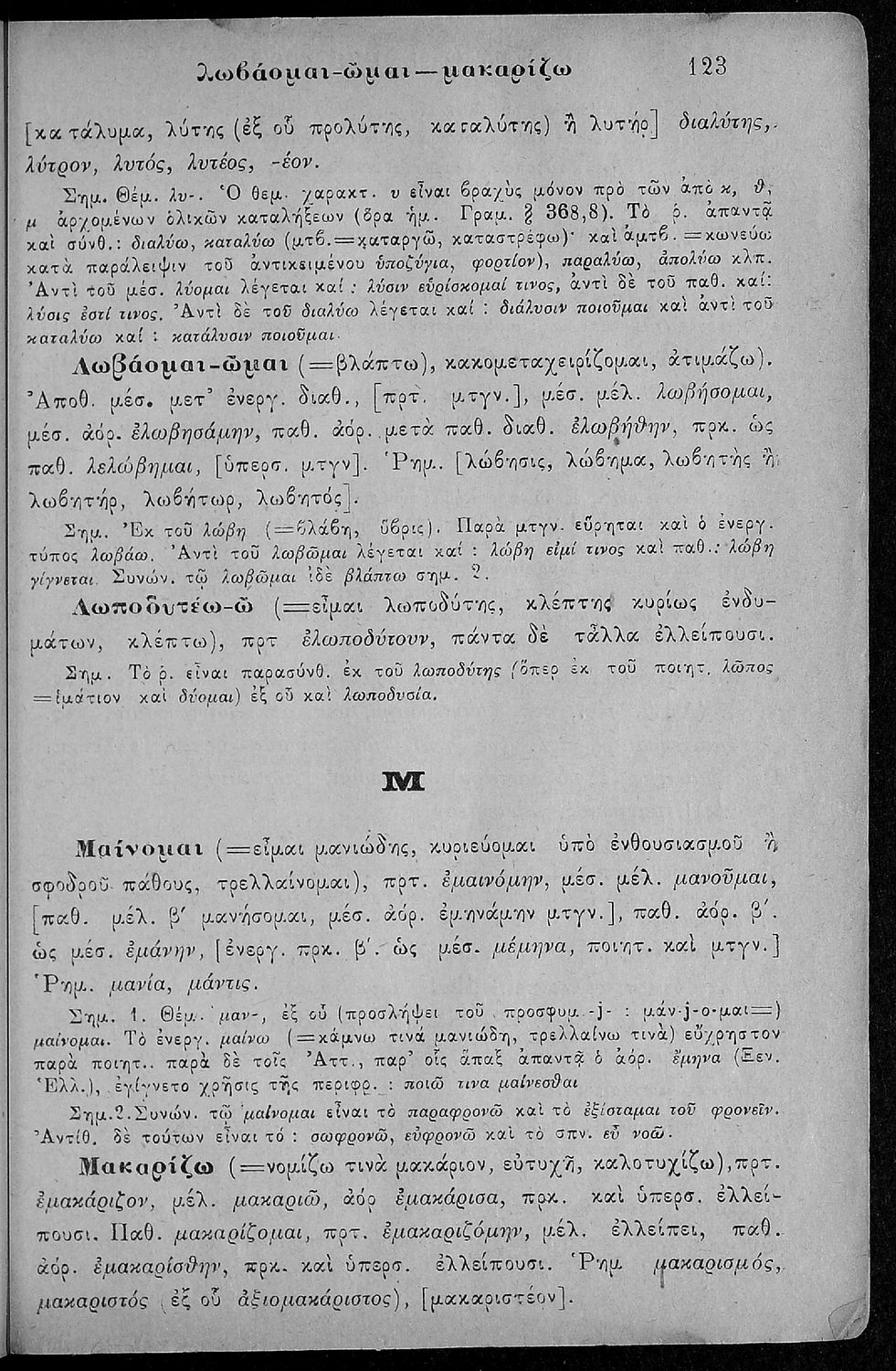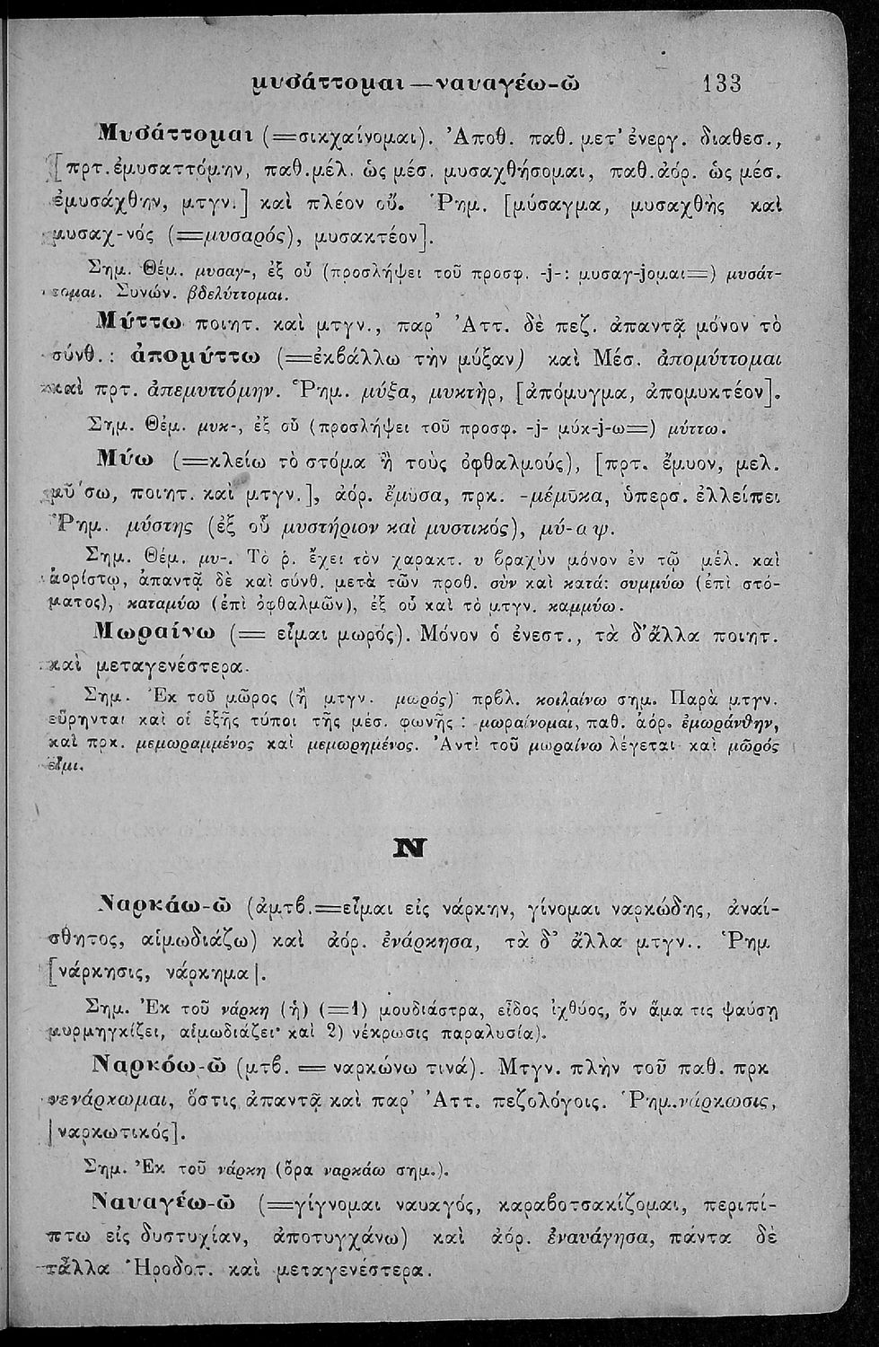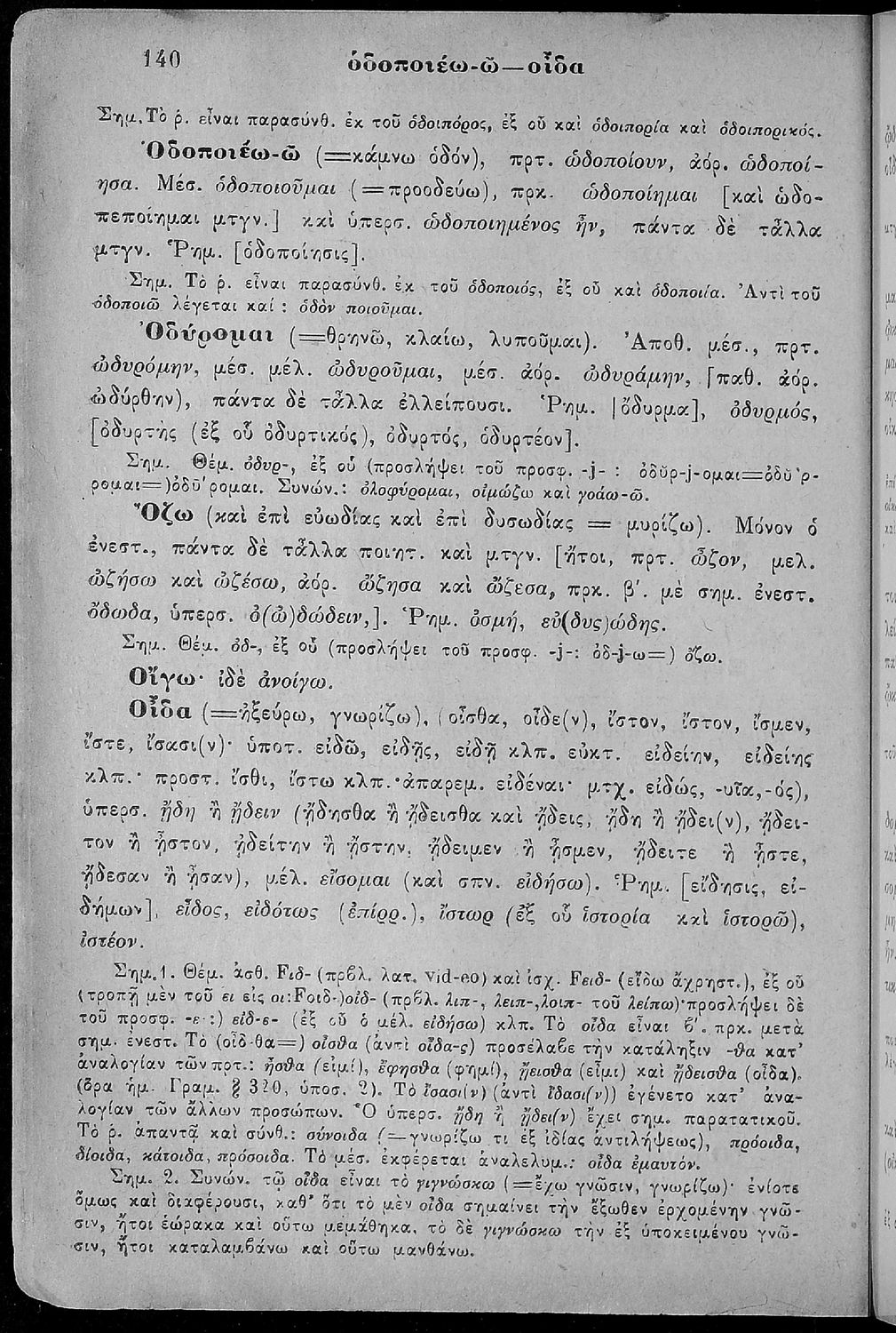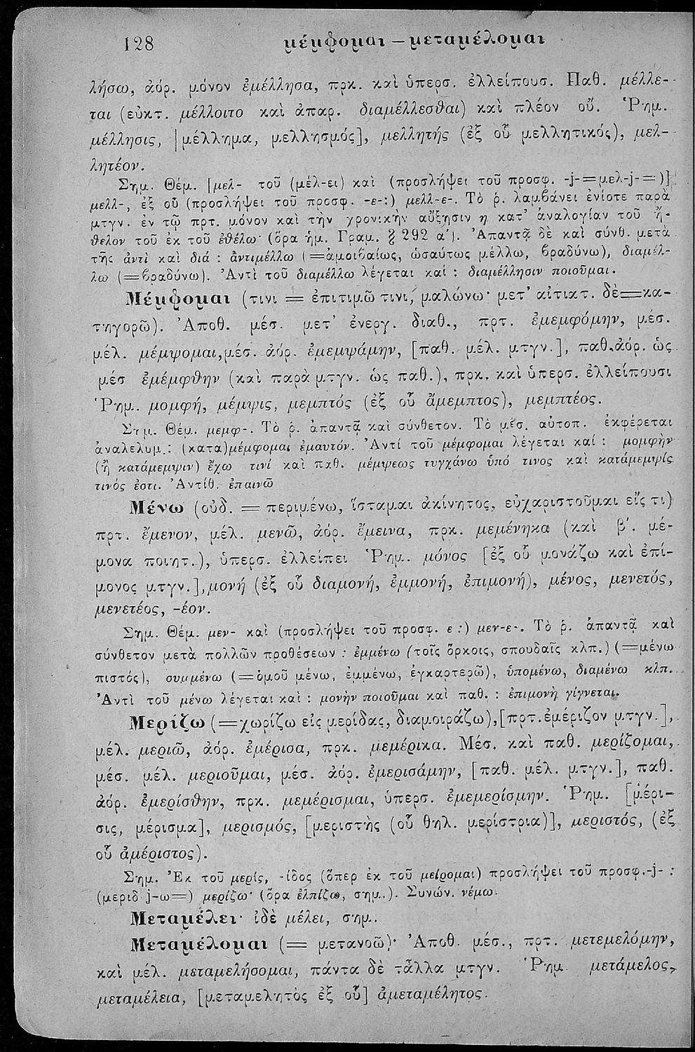 Μαθητικό βοήθημα Αρχαίων Ελληνικών για τα Ελληνικά Σχολεία, Παρθεναγωγεία και Γυμνάσια που περιλαμβάνει γραμματική της αρχαίας ελληνικής και κατάλογο ανωμάλων ρημάτων.