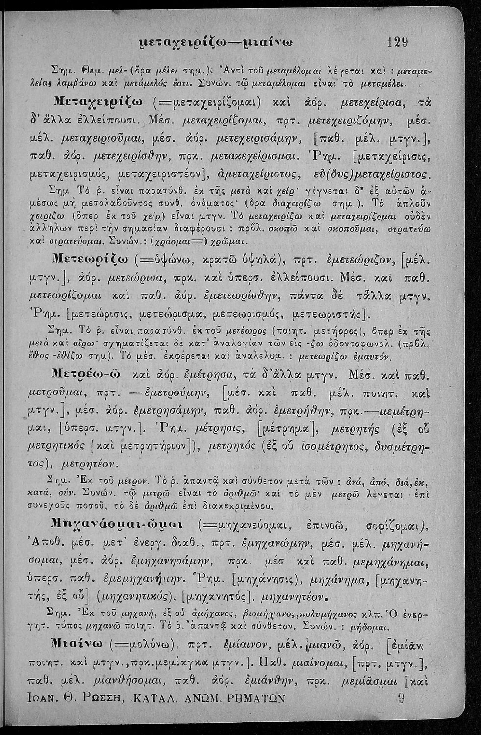 Κατάλογος ανωμάλων ρημάτων της αρχαίας ελληνικής γλώσσης. Μάλιστα δε της Αττικής Διαλέκτου μετά ποικίλων τεχνολογικών σημειώσεων προς χρήσιν των μαθητών των Ελλην. Σχολείων, Παρθεναγωγείων και Γυμνασίων