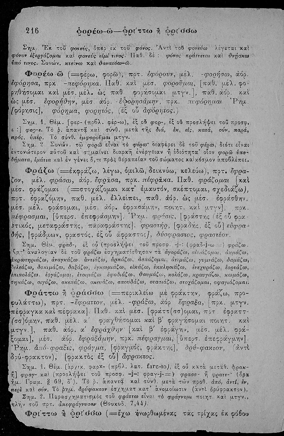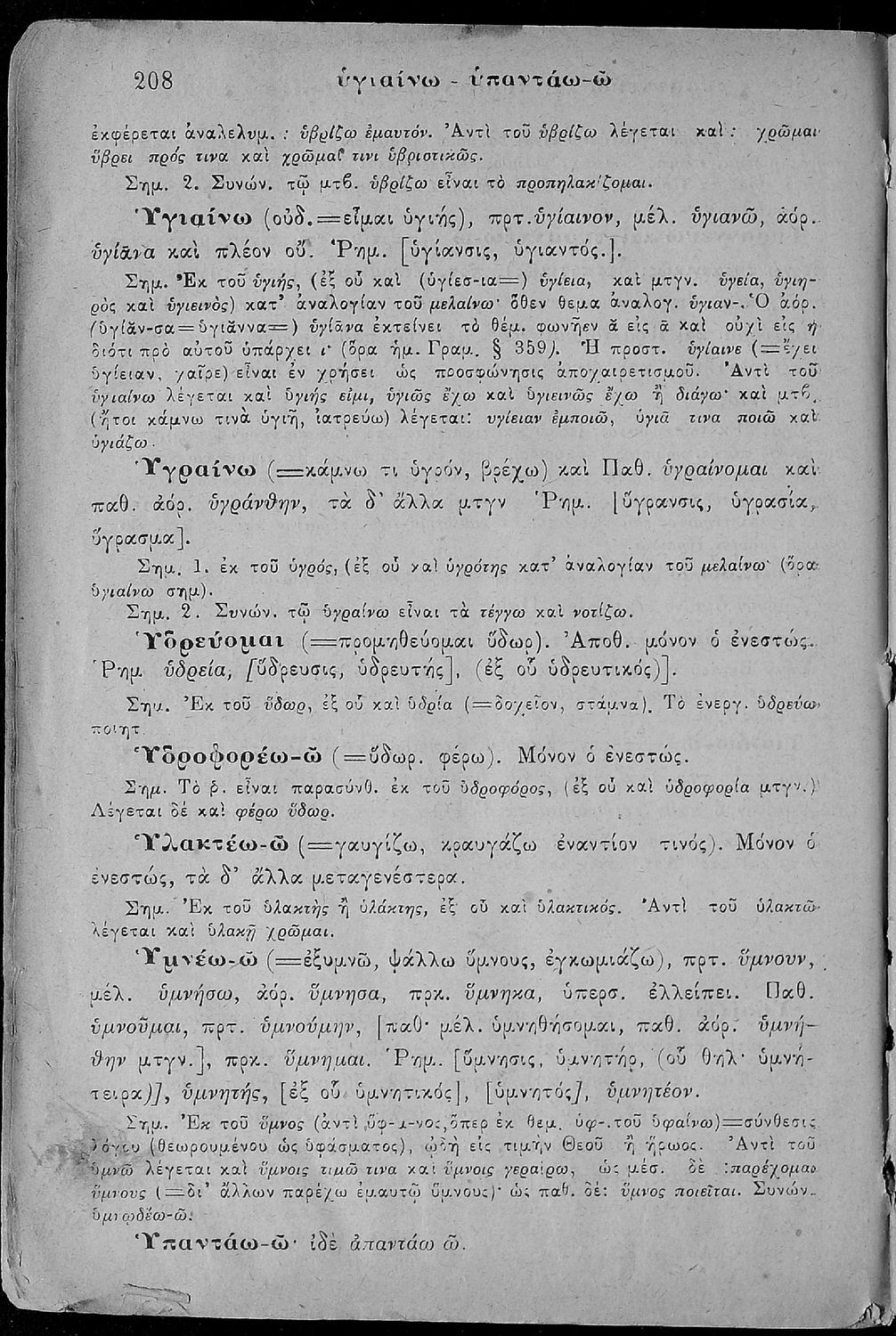 Σχολικό εγχειρίδιο Αρχαίων Ελληνικών για τα Ελληνικά Σχολεία, Παρθεναγωγεία και Γυμνάσια που περιέχει τους κανόνες γραμματικής και είναι χωρισμένο σε φθογγολογικό, τυπολογικό και ετυμολογικό μέρος.