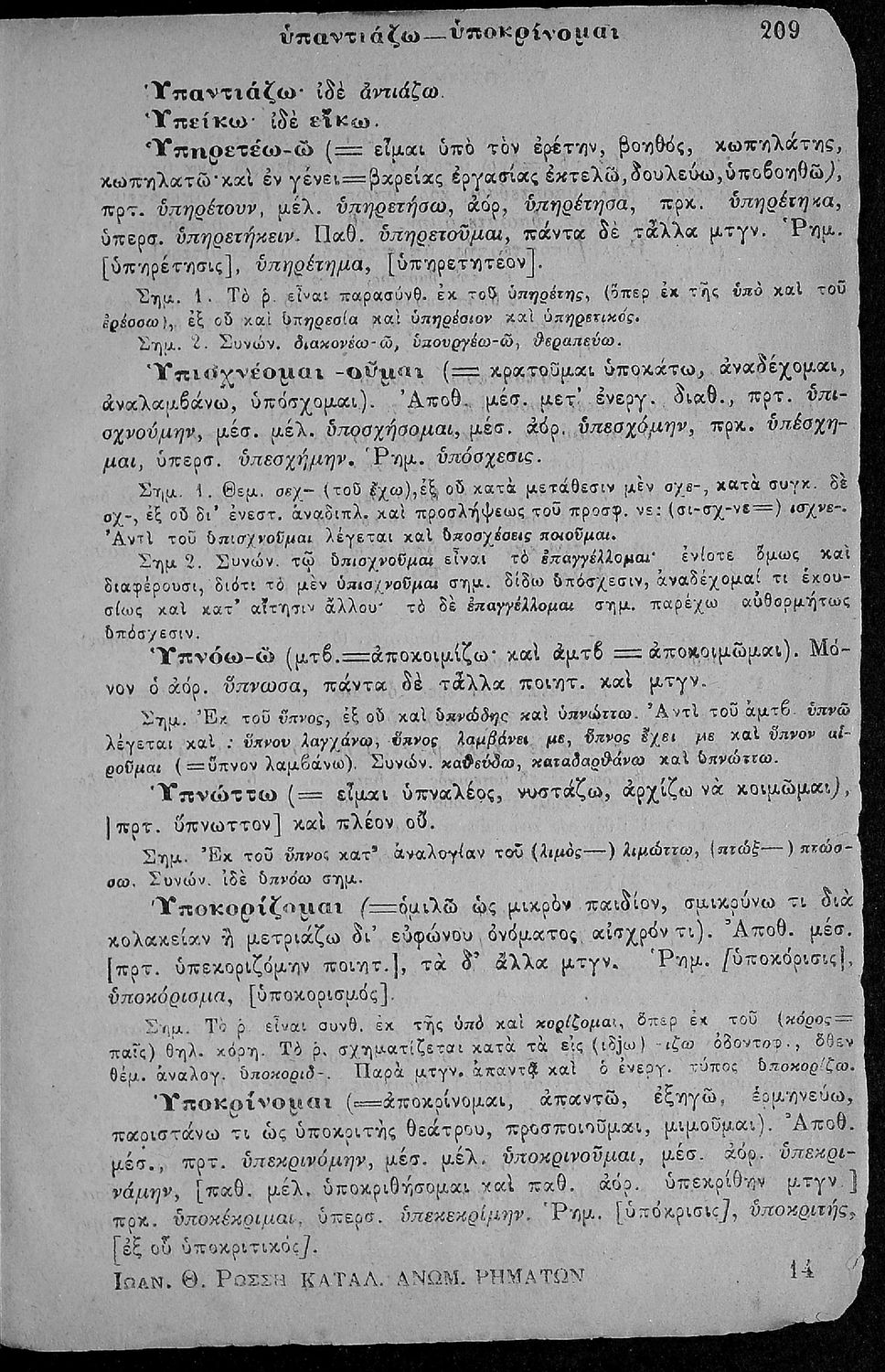 Κατάλογος ανωμάλων ρημάτων της αρχαίας ελληνικής γλώσσης. Μάλιστα δε της Αττικής Διαλέκτου μετά ποικίλων τεχνολογικών σημειώσεων προς χρήσιν των μαθητών των Ελλην. Σχολείων, Παρθεναγωγείων και Γυμνασίων