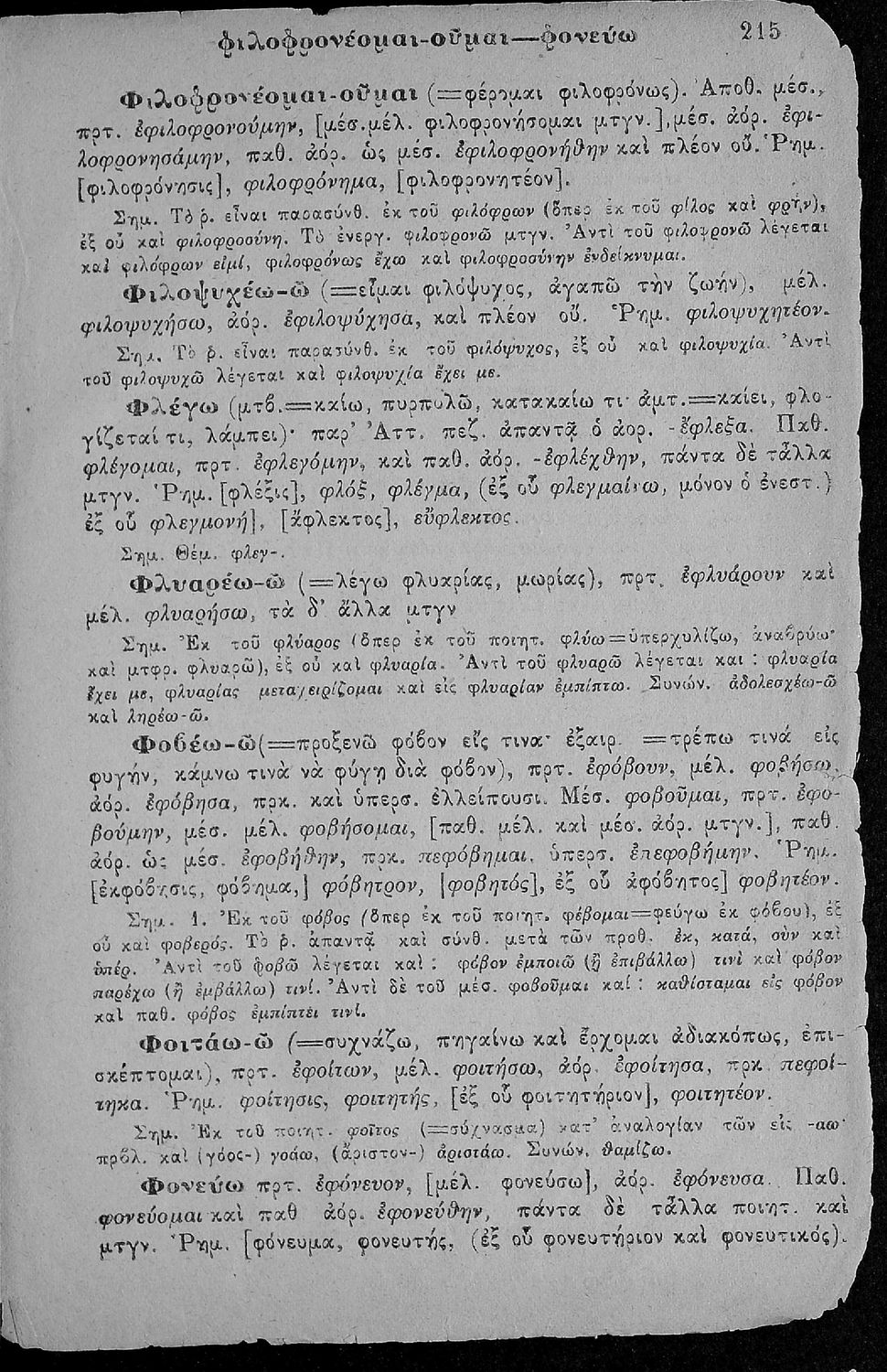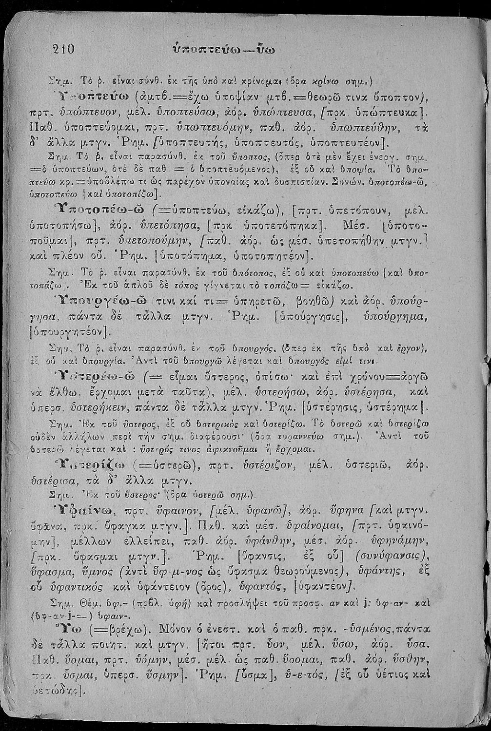 Μαθητικό βοήθημα Αρχαίων Ελληνικών για τα Ελληνικά Σχολεία, Παρθεναγωγεία και Γυμνάσια που περιλαμβάνει γραμματική της αρχαίας ελληνικής και κατάλογο ανωμάλων ρημάτων.