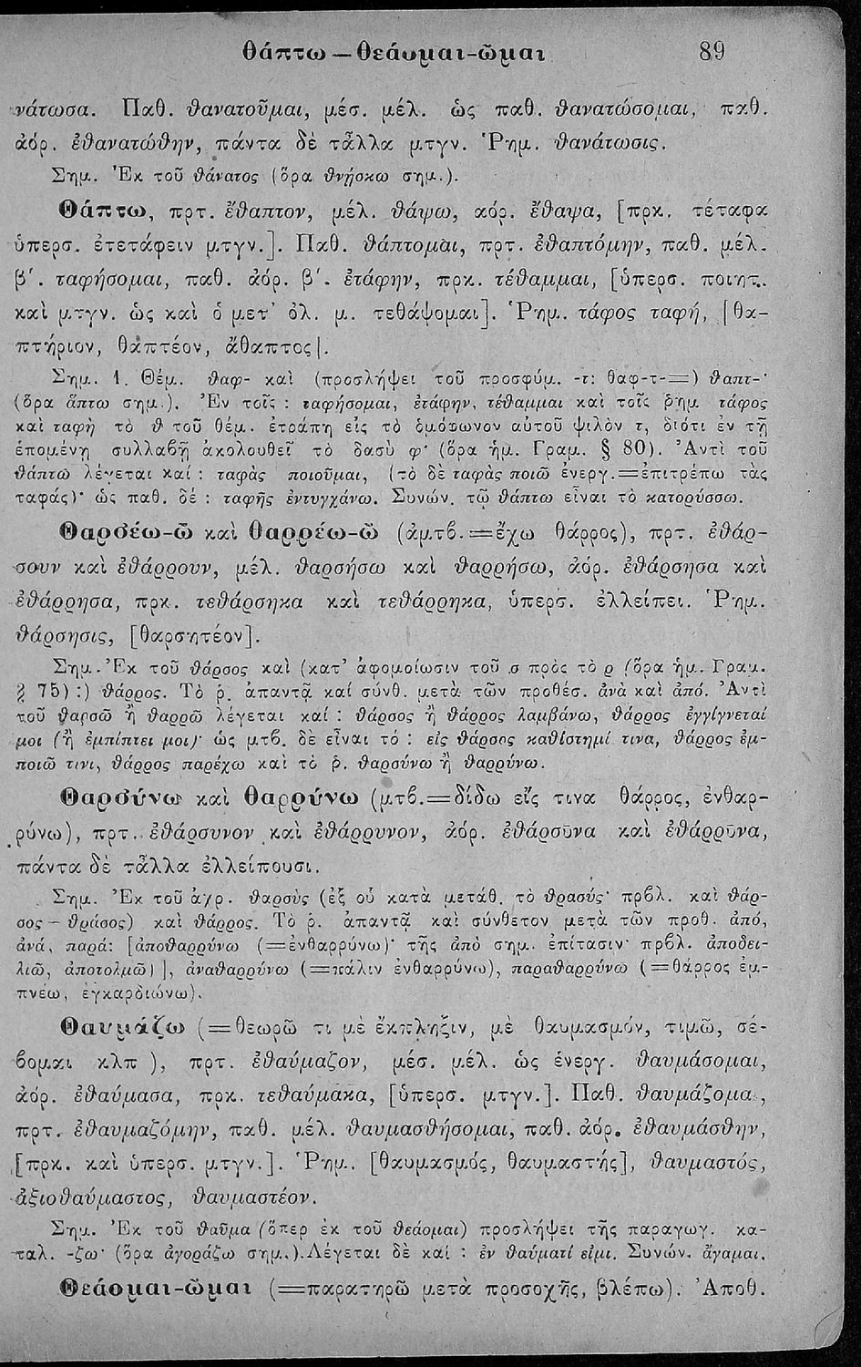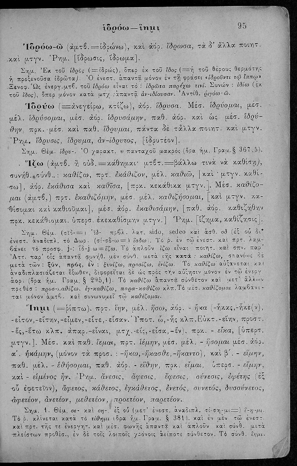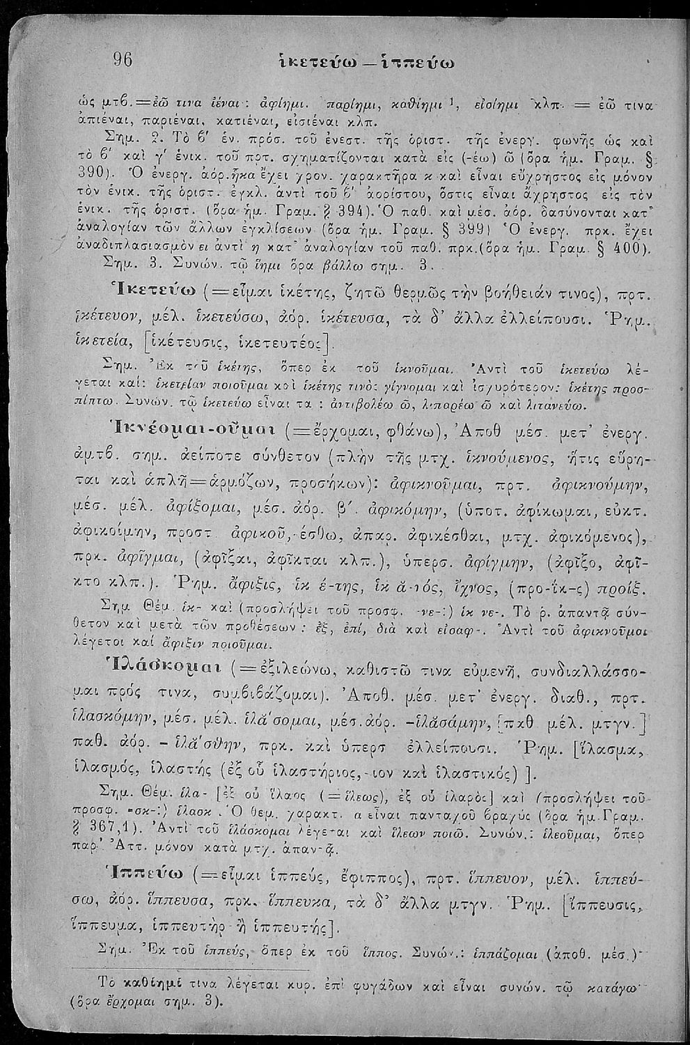 Μαθητικό βοήθημα Αρχαίων Ελληνικών για τα Ελληνικά Σχολεία, Παρθεναγωγεία και Γυμνάσια που περιλαμβάνει γραμματική της αρχαίας ελληνικής και κατάλογο ανωμάλων ρημάτων.