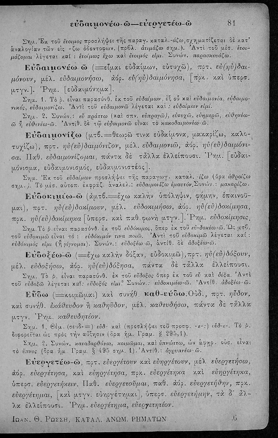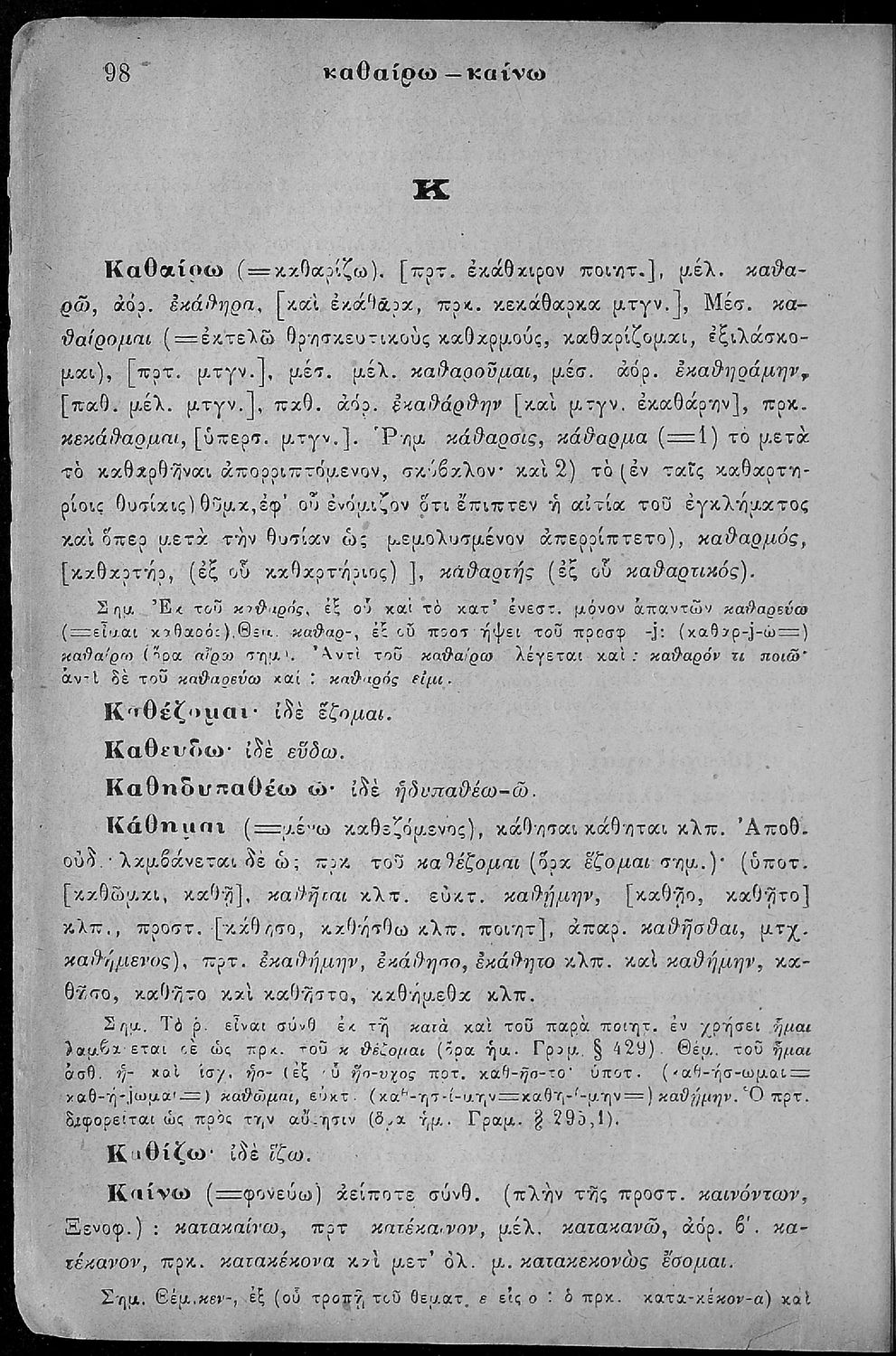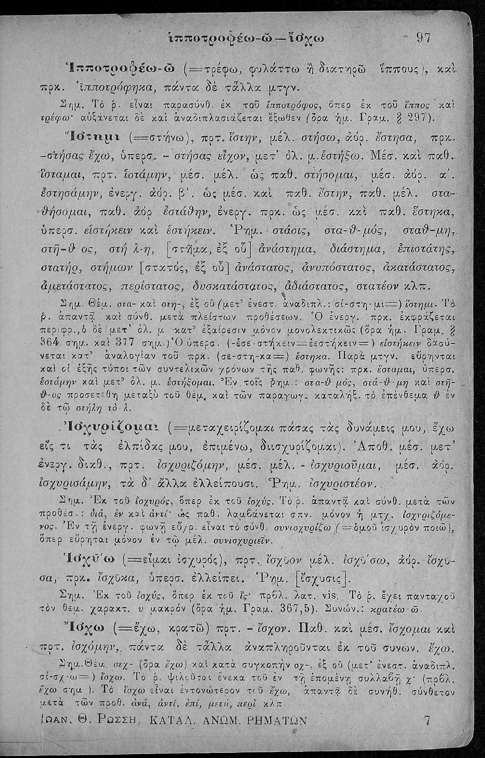 Κατάλογος ανωμάλων ρημάτων της αρχαίας ελληνικής γλώσσης. Μάλιστα δε της Αττικής Διαλέκτου μετά ποικίλων τεχνολογικών σημειώσεων προς χρήσιν των μαθητών των Ελλην. Σχολείων, Παρθεναγωγείων και Γυμνασίων
