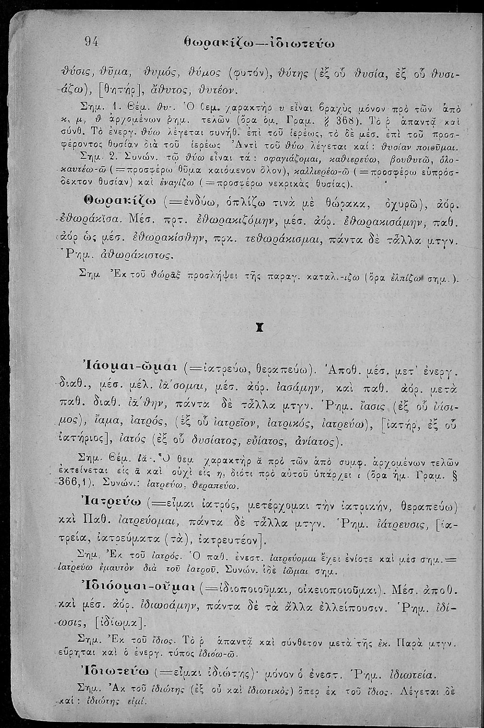 Σχολικό εγχειρίδιο Αρχαίων Ελληνικών για τα Ελληνικά Σχολεία, Παρθεναγωγεία και Γυμνάσια που περιέχει τους κανόνες γραμματικής και είναι χωρισμένο σε φθογγολογικό, τυπολογικό και ετυμολογικό μέρος.