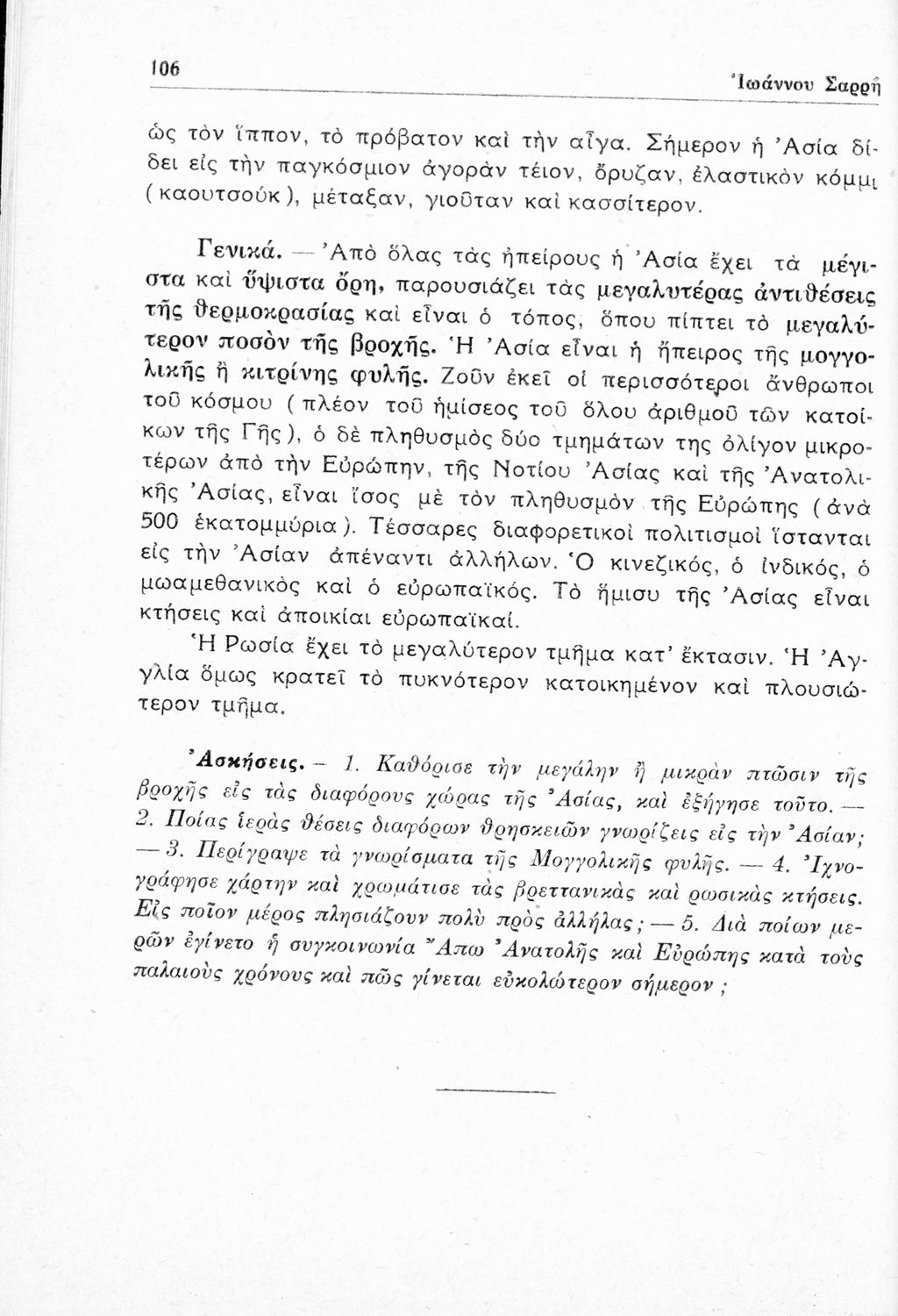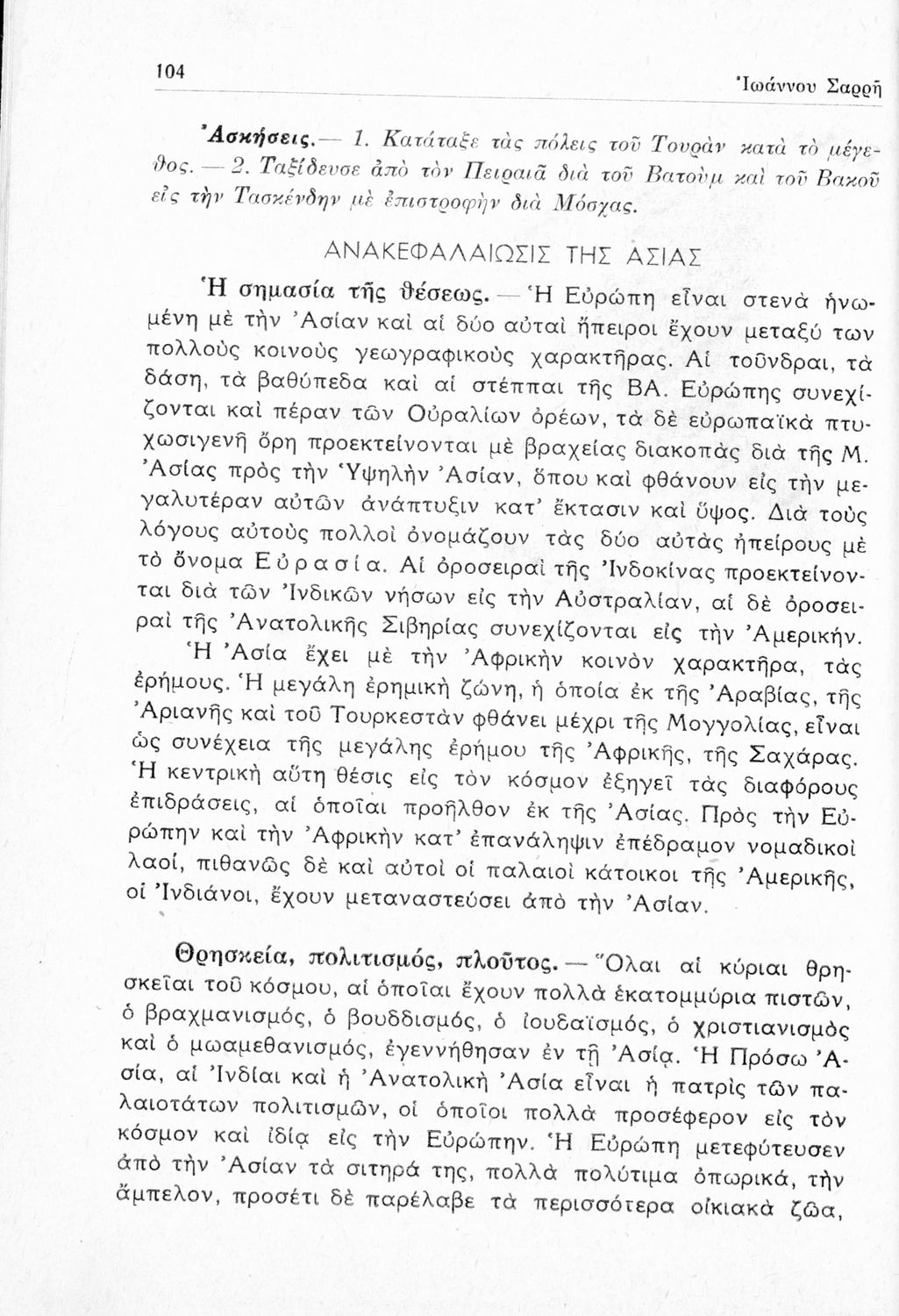 Γεωγραφία, Ο κόσμος εκτός της Ευρώπης, δια την Γ΄ τάξιν των Γυμνασίων