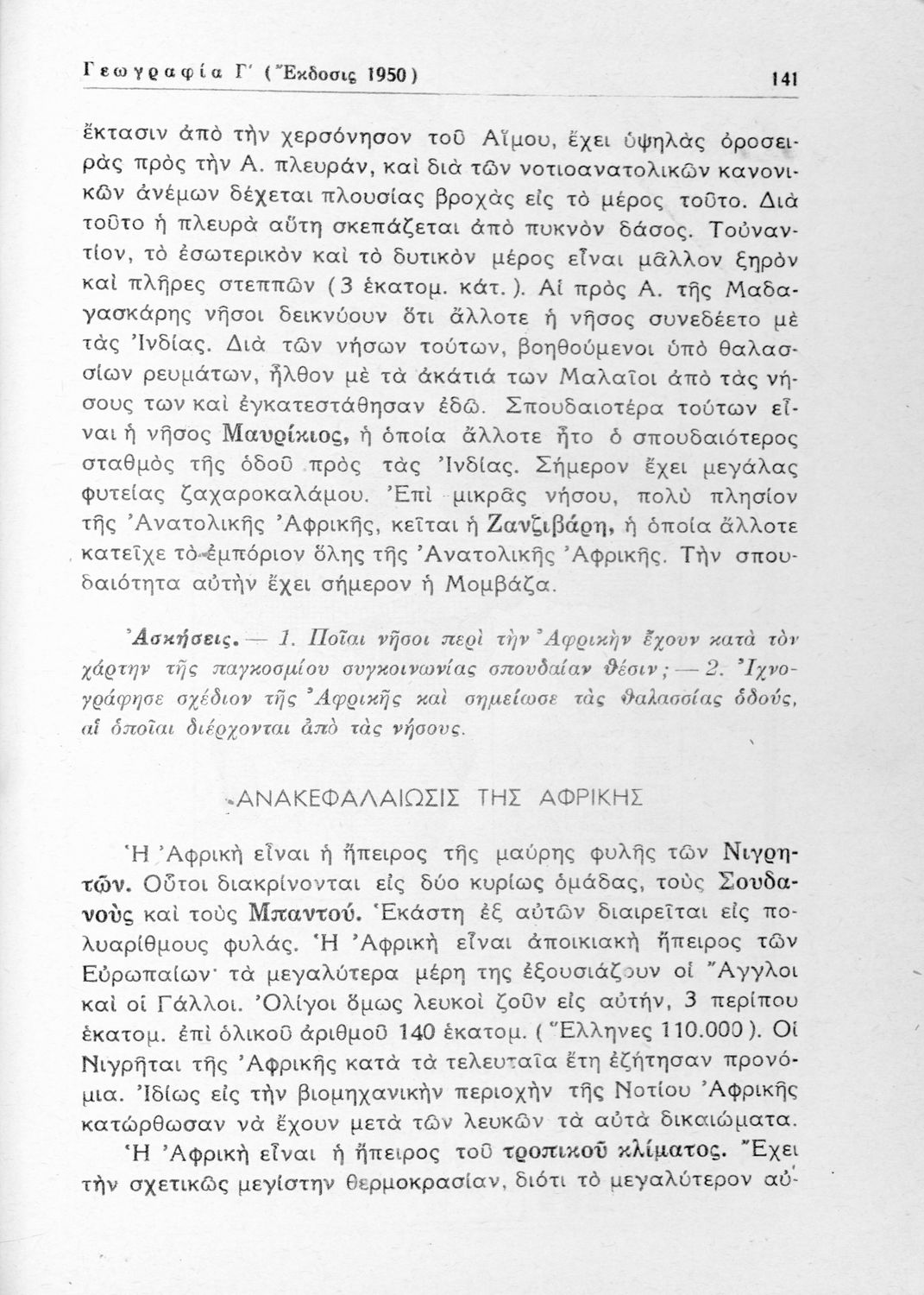 Γεωγραφία, Ο κόσμος εκτός της Ευρώπης, δια την Γ΄ τάξιν των Γυμνασίων