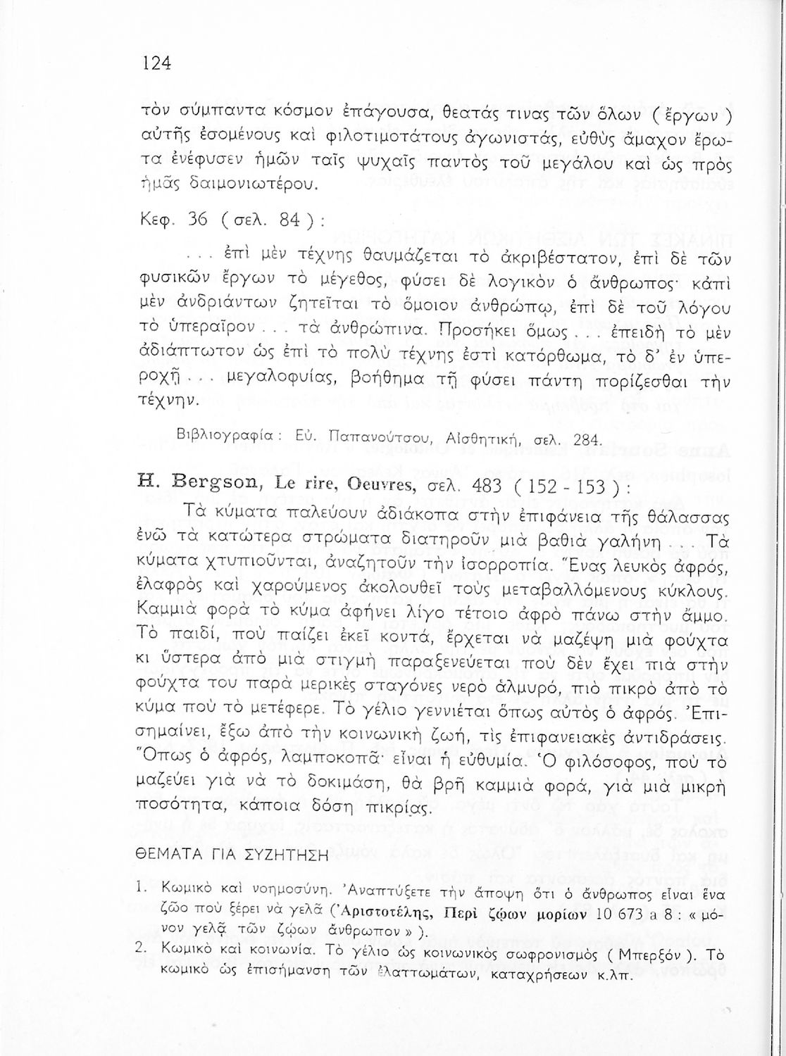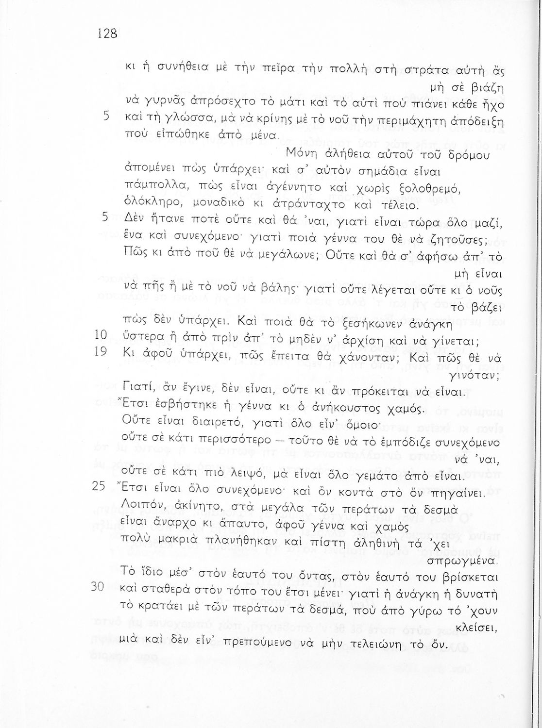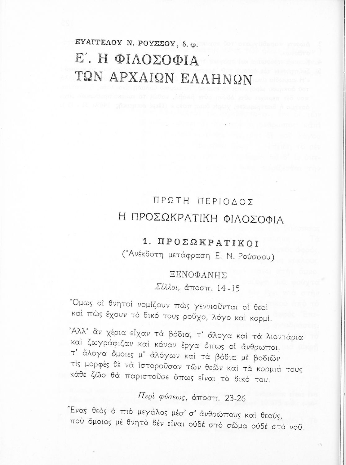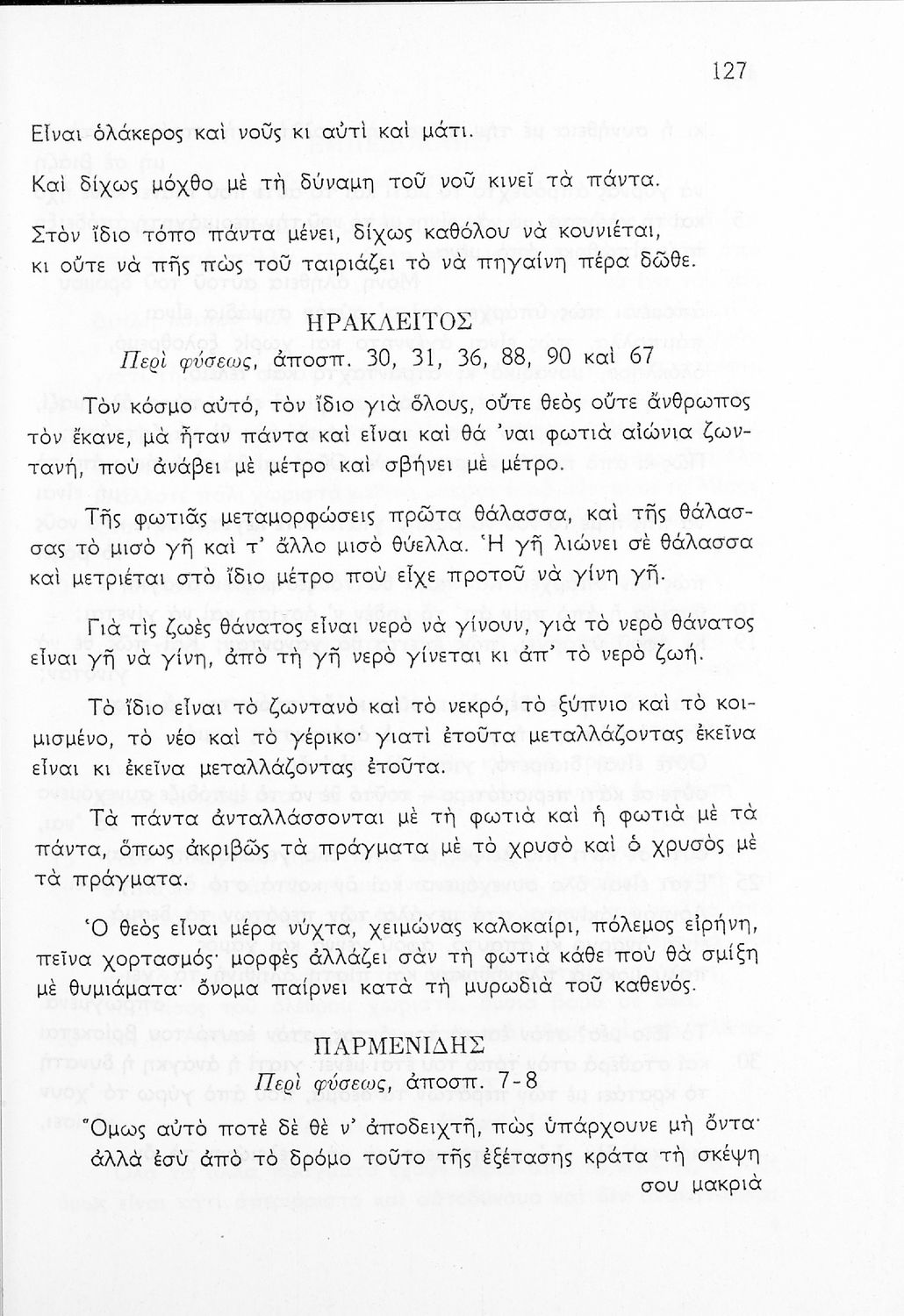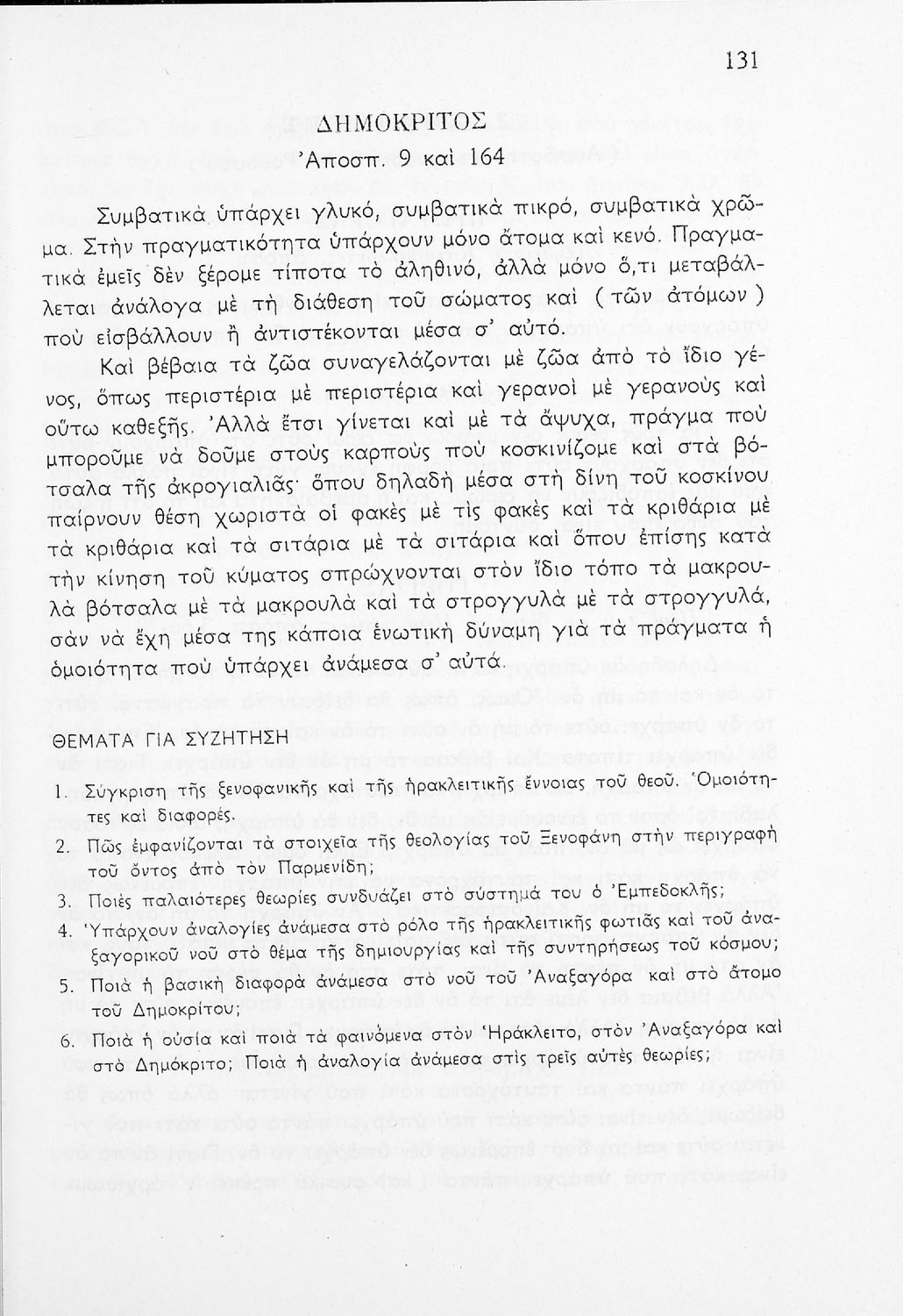 Σχολικό εγχειρίδιο Φιλοσοφίας για την ΣΤ΄ Γυμνασίου που περιέχει αποσπάσματα από διάσημα φιλοσοφικά κείμενα τόσο της ελληνικής αρχαιότητας όσο και της σύγχρονης ευρωπαϊκής σκέψης και θέματα προς συζήτηση. Περιλαμβάνει και λεξιλόγιο φιλοσοφικών όρων και ειδικό κεφάλαιο για τους προσωκρατικούς.