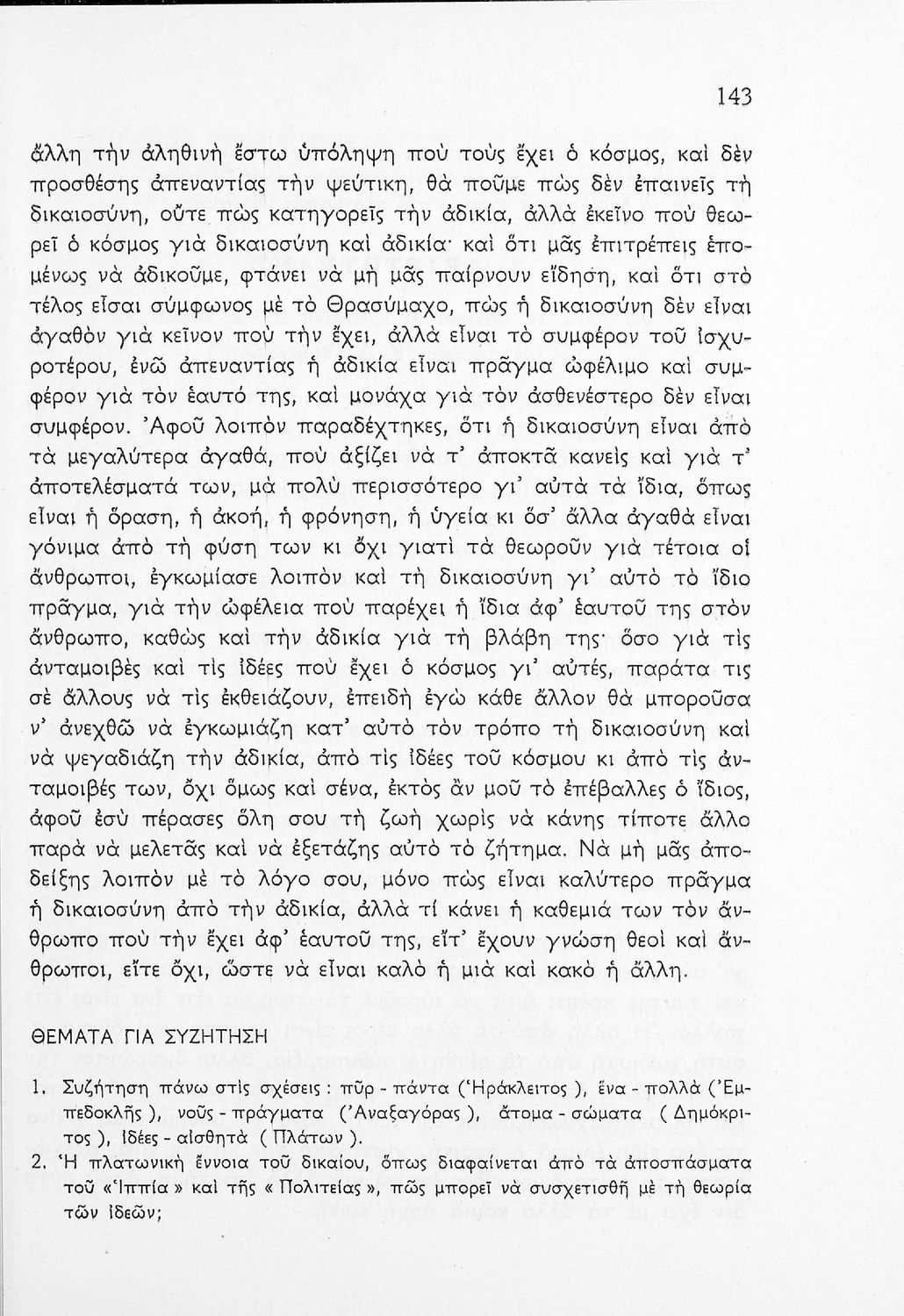 Σχολικό εγχειρίδιο Φιλοσοφίας για την ΣΤ΄ Γυμνασίου που περιέχει αποσπάσματα από διάσημα φιλοσοφικά κείμενα τόσο της ελληνικής αρχαιότητας όσο και της σύγχρονης ευρωπαϊκής σκέψης και θέματα προς συζήτηση. ...
